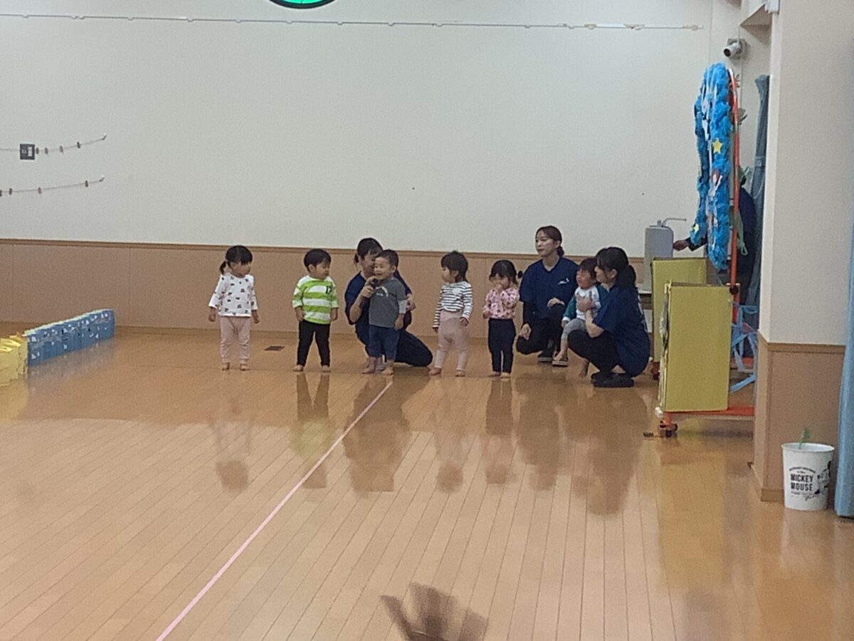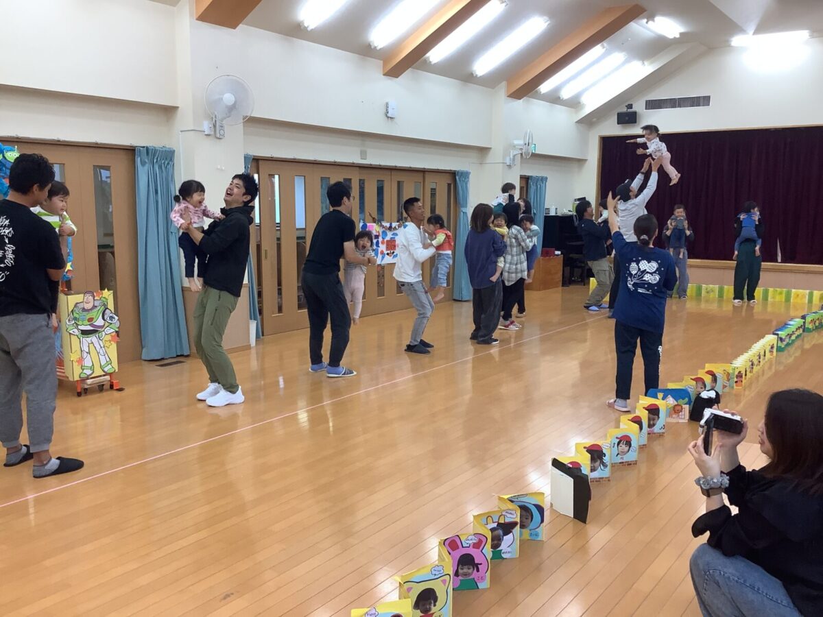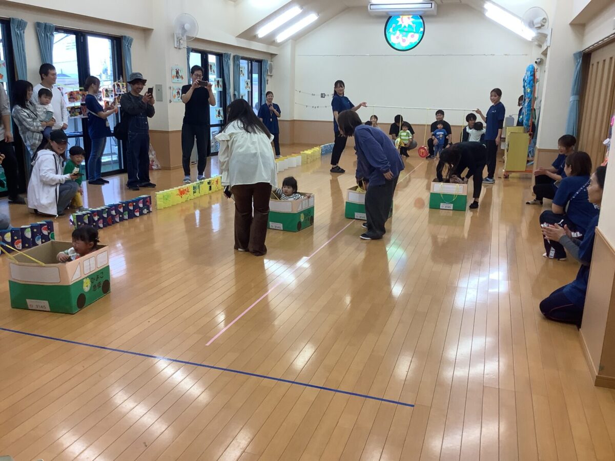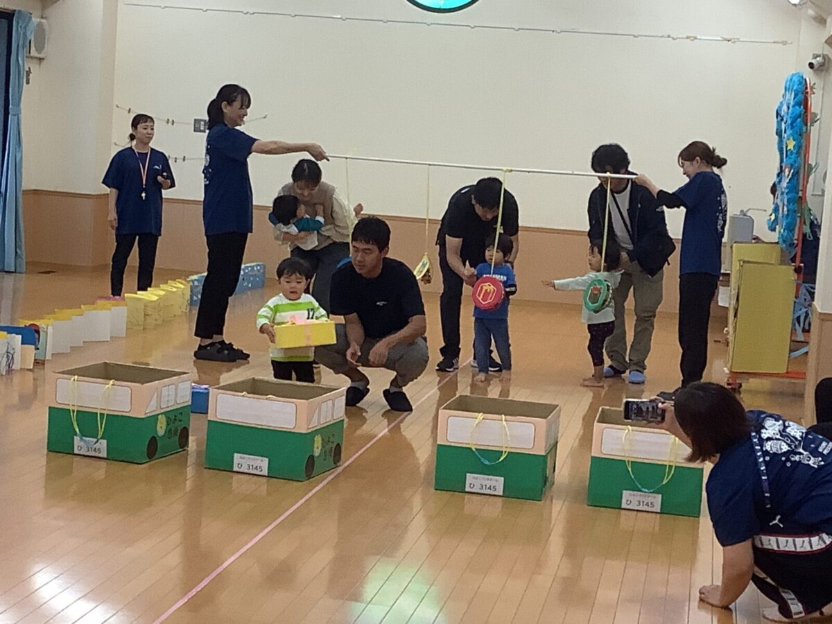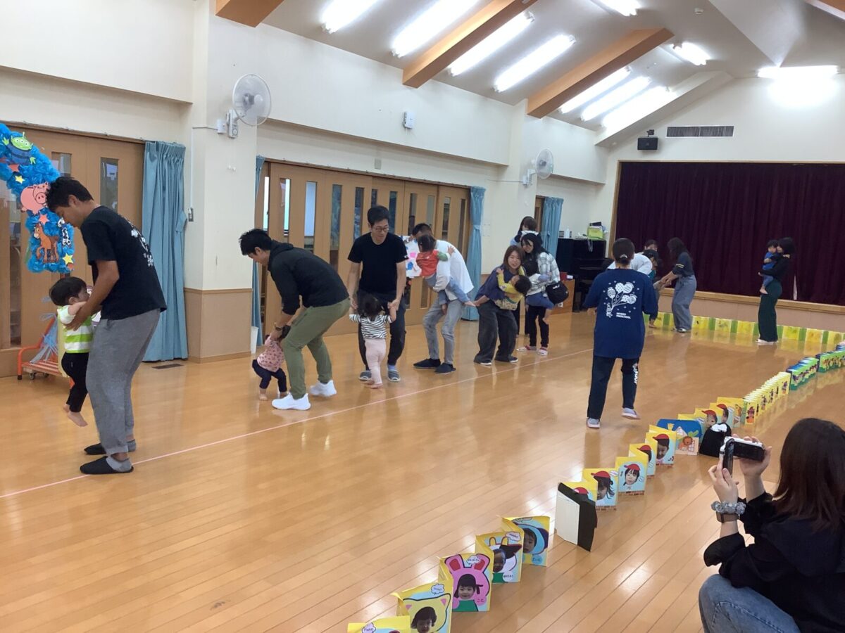 お遊戯では可愛らしい衣装を身につけニコニコ笑顔の子どもたち。かけっこでは元気なお返事と一生懸命最後まで走りきるかっこいい姿を見せてくれました!