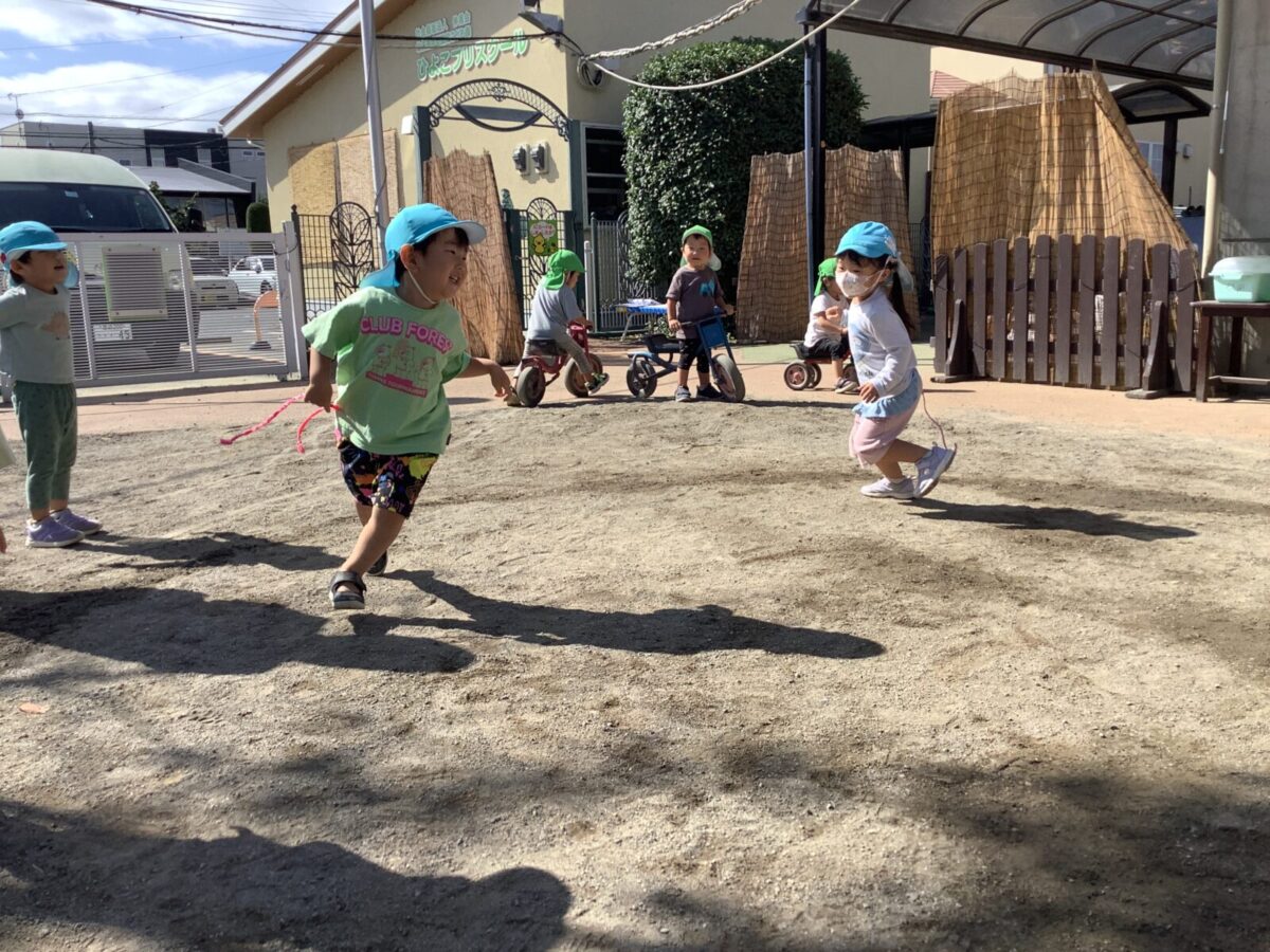 つき組、たいよう組、にじ組、そら組はたくさん体を動かしてそれぞれの好きな遊びを園庭で楽しんでいます♪