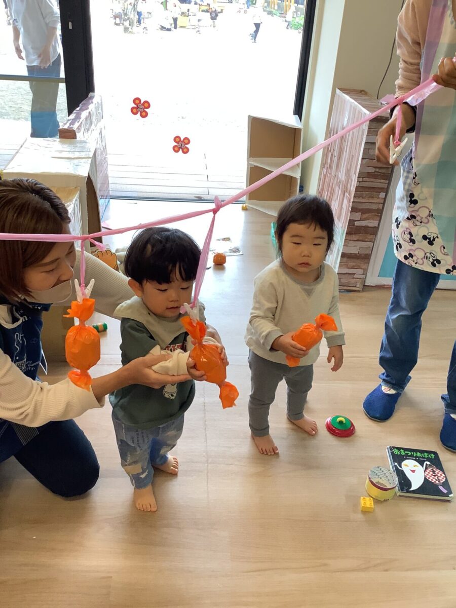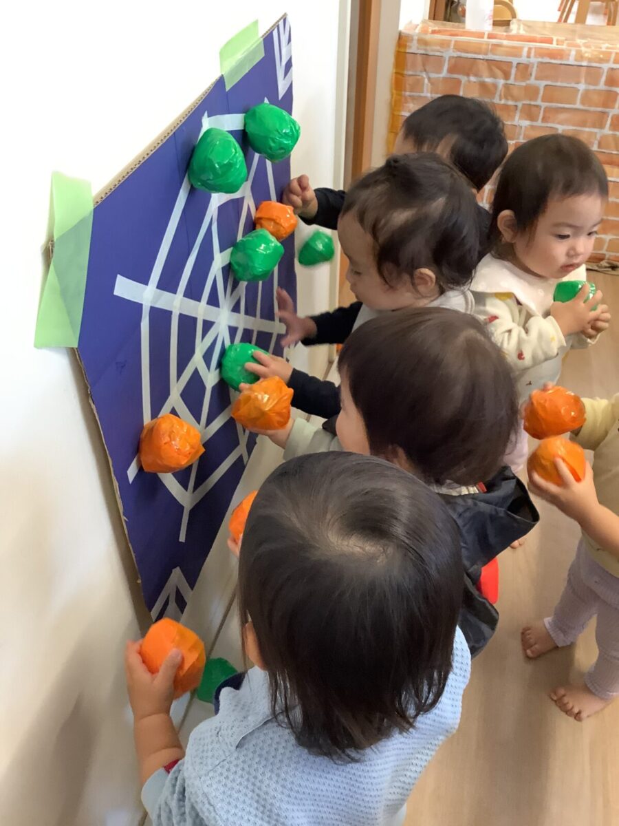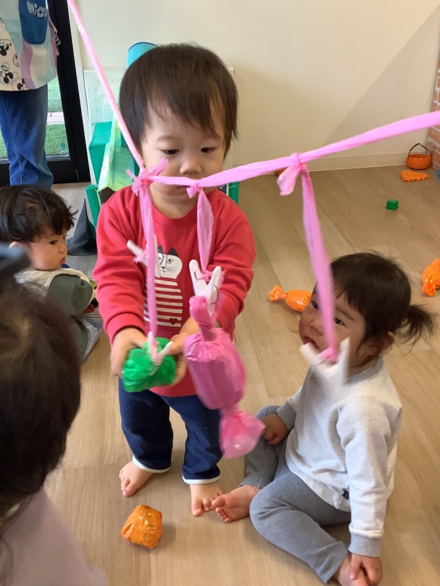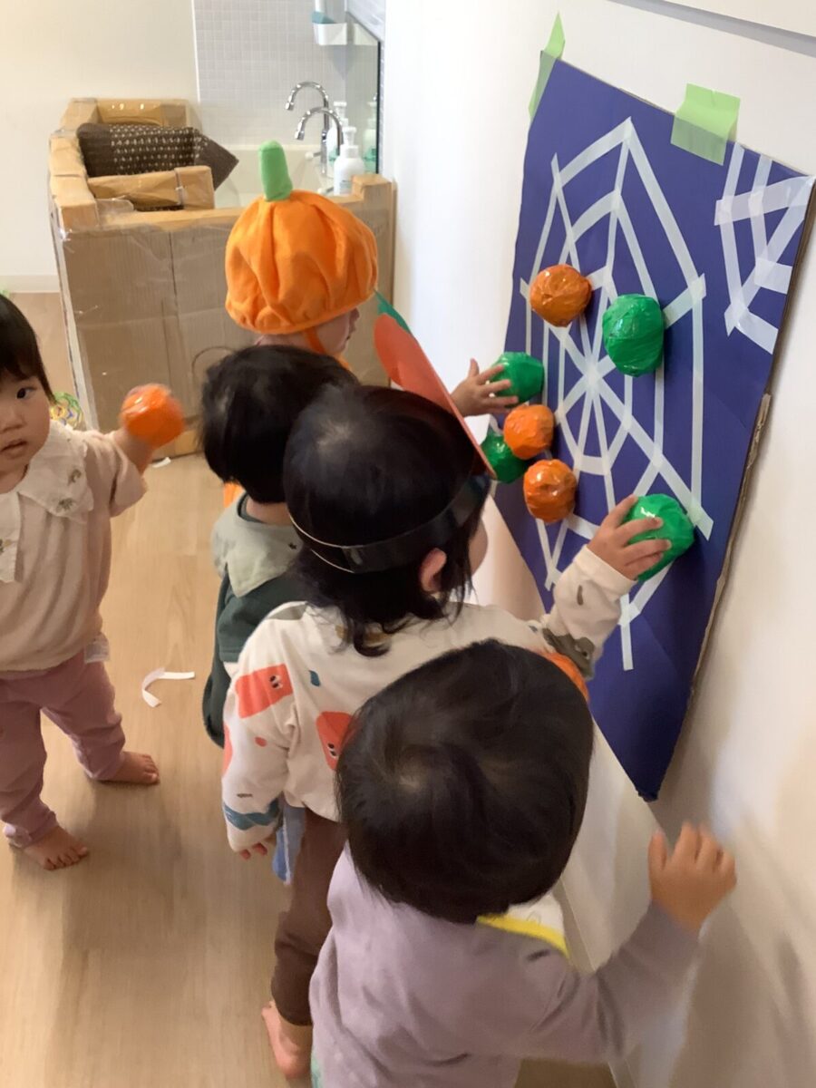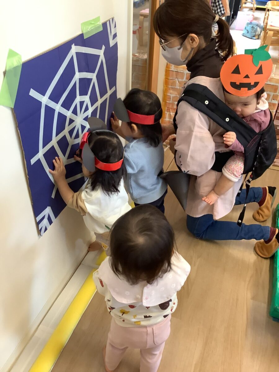 〈ハロウィン遊び〉手作りのお面をつけてキャンディー狩りや蜘蛛の巣の的当てを楽しみました!