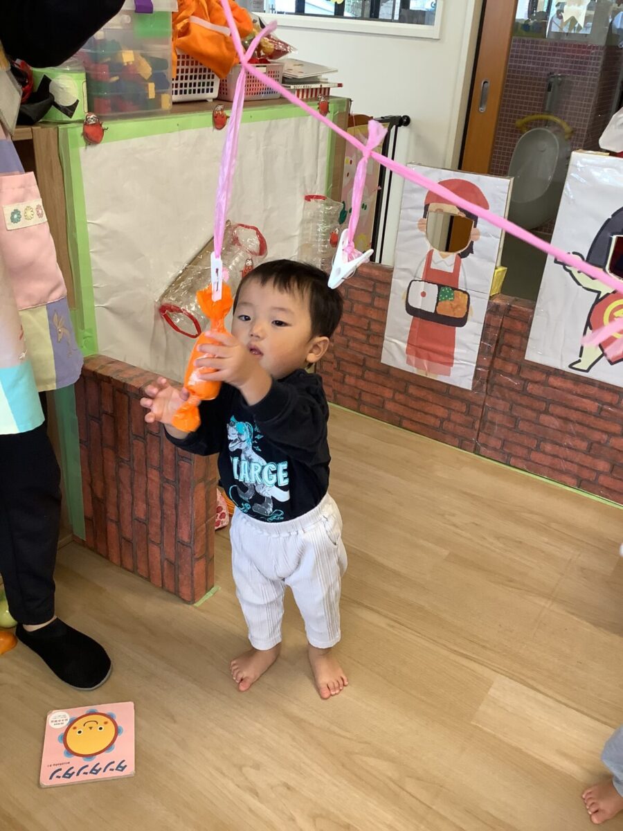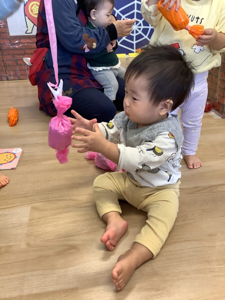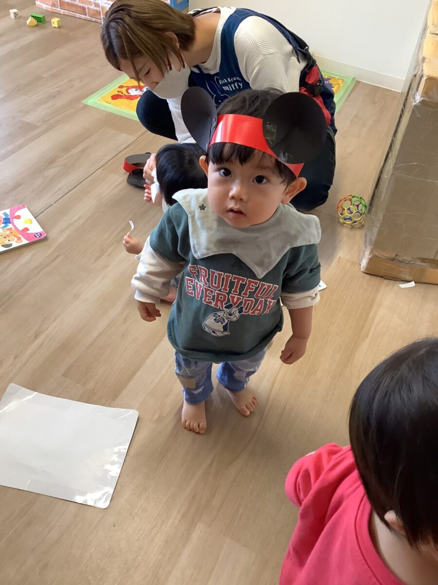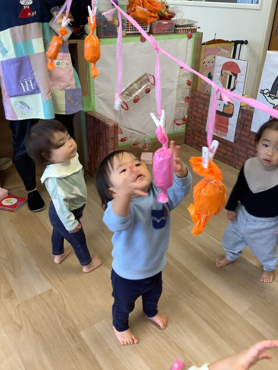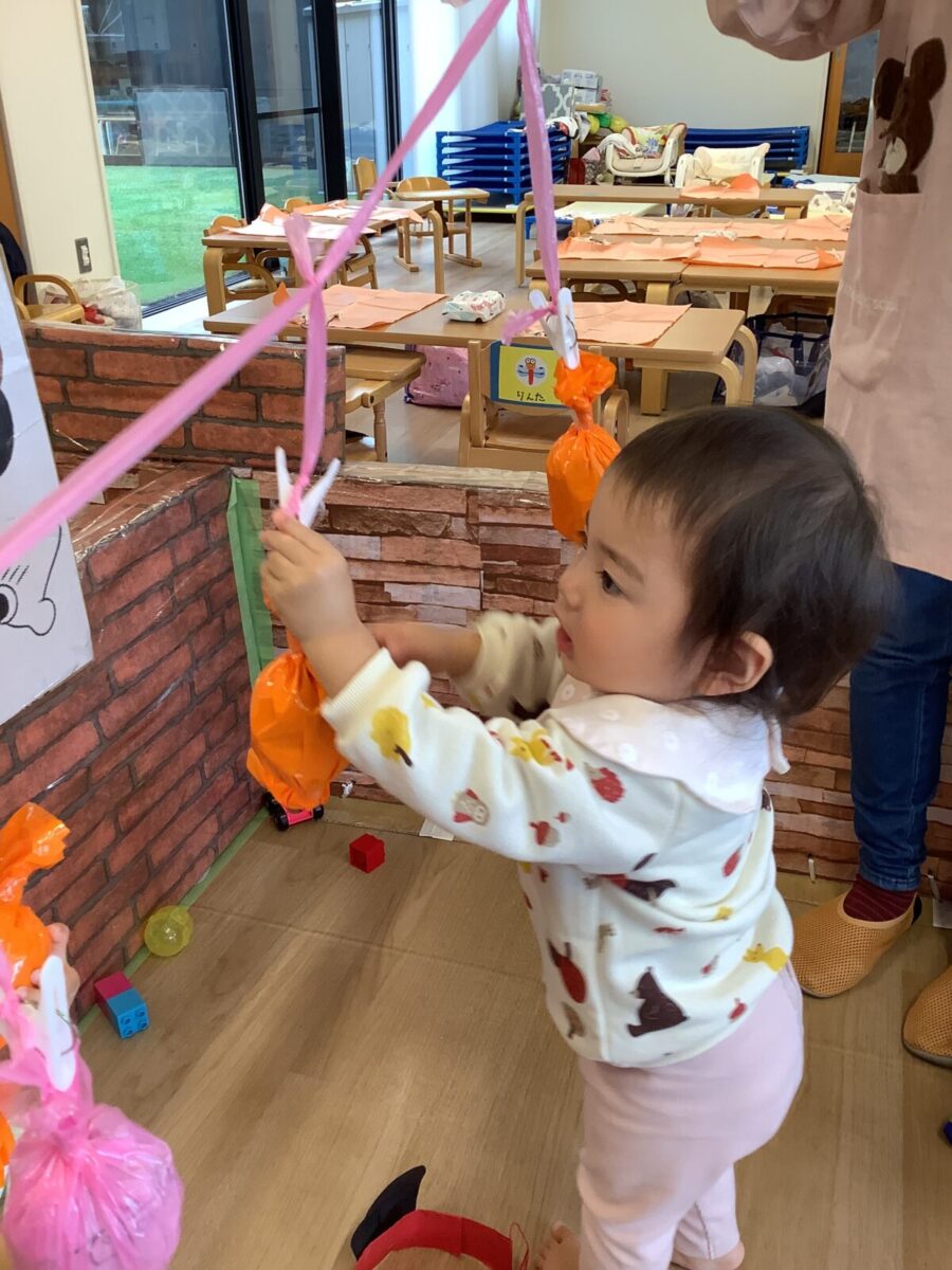 〈ハロウィン遊び〉手作りのお面をつけてキャンディー狩りや蜘蛛の巣の的当てを楽しみました!