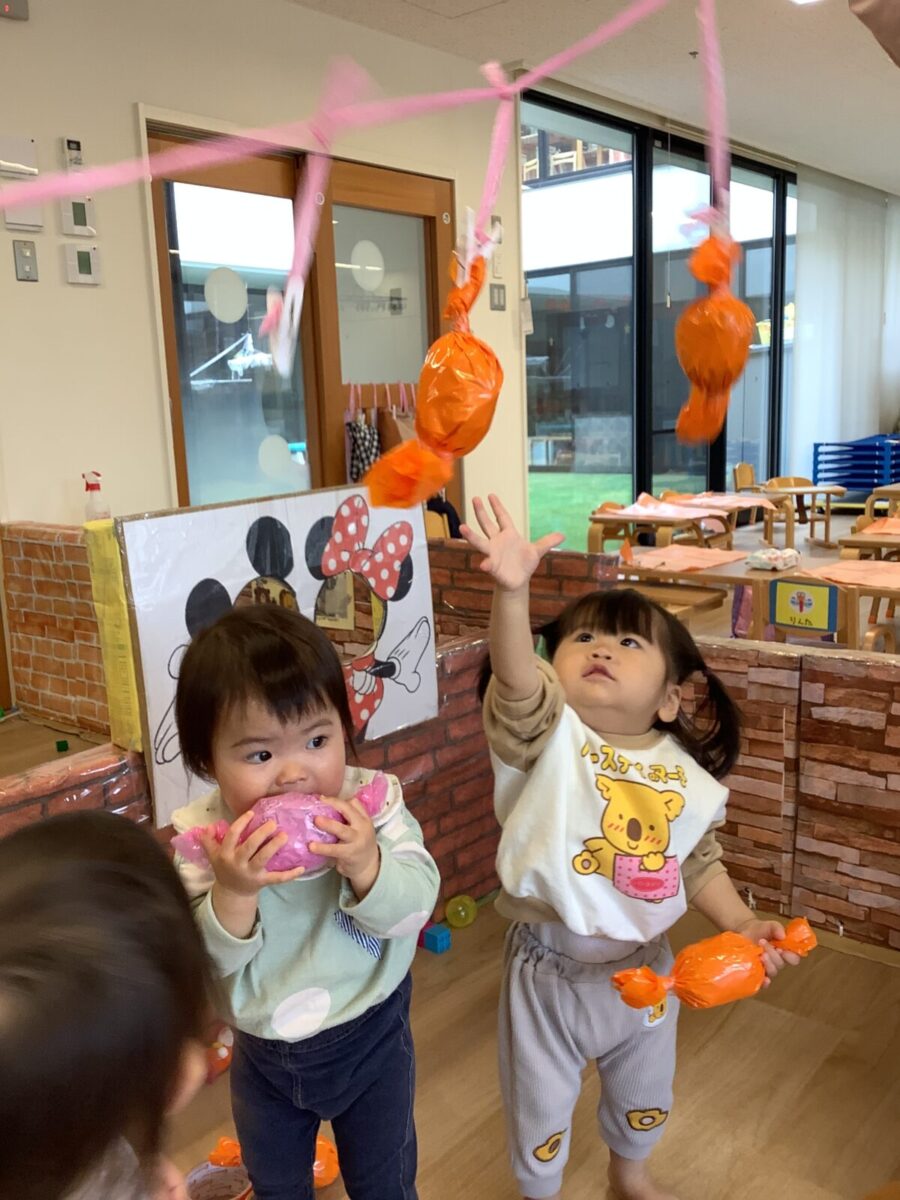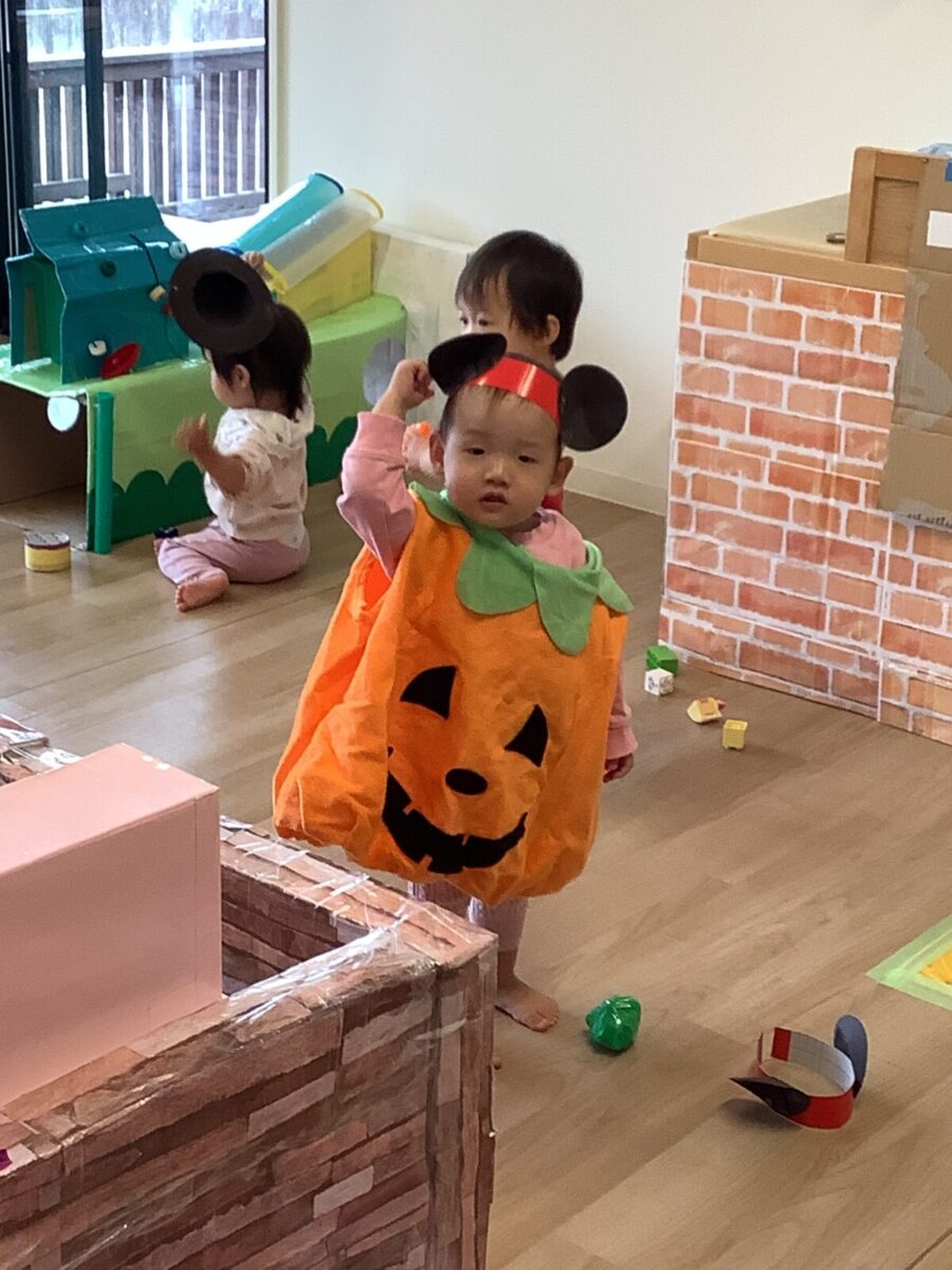 寒い日も多くなってきましたが、子どもたちは元気いっぱい遊んでいます。今回は、先月行ったハロウィン遊びや食事、午睡の様子をお届けします。