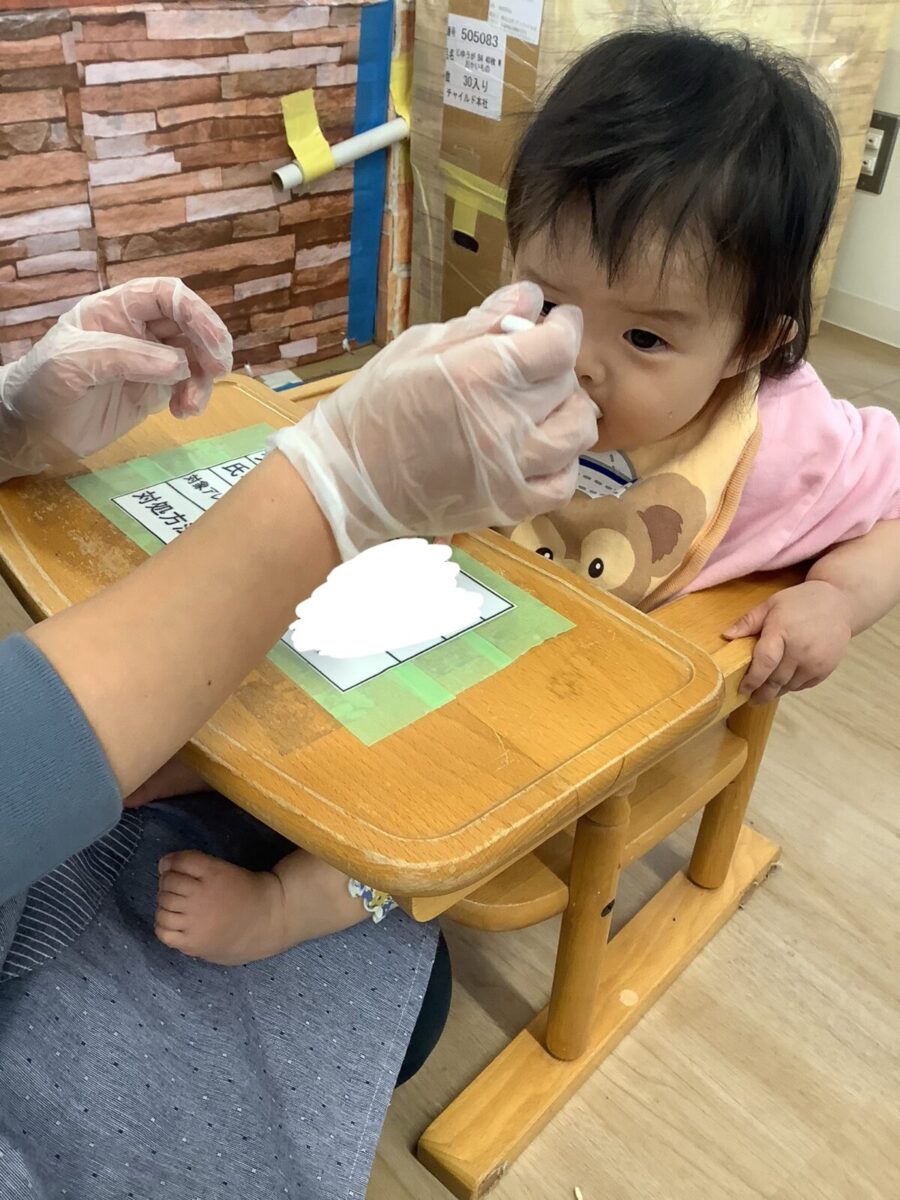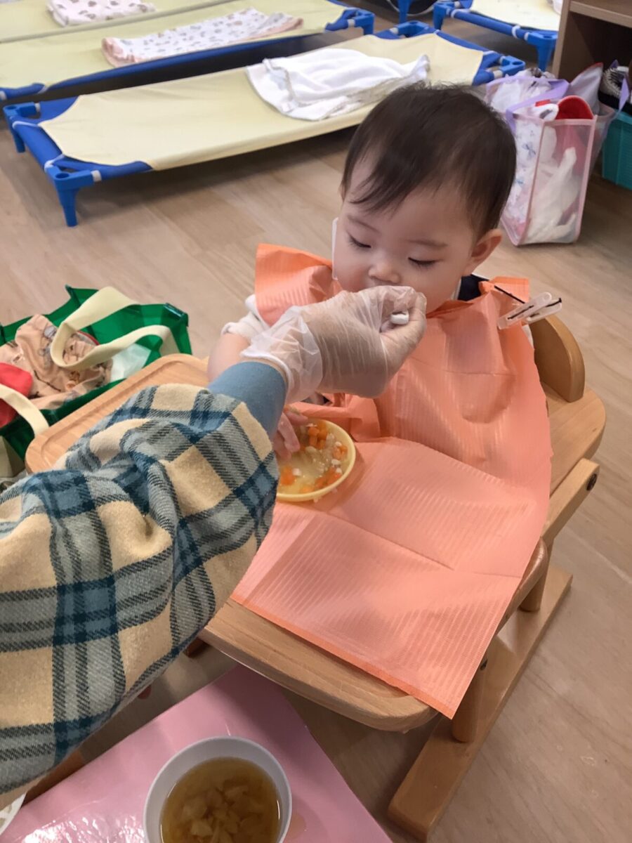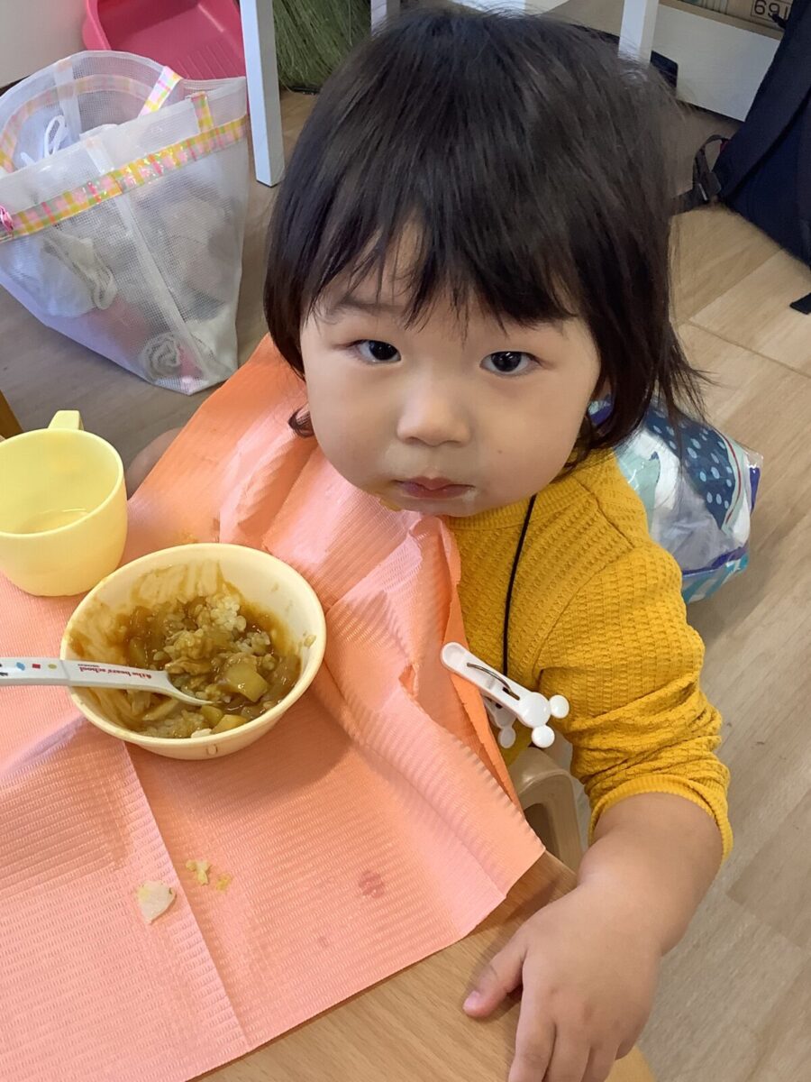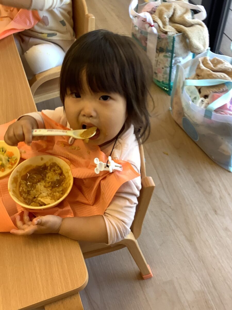 〈食事〉自分でスプーンを持って食べられるようになってきましたよ!