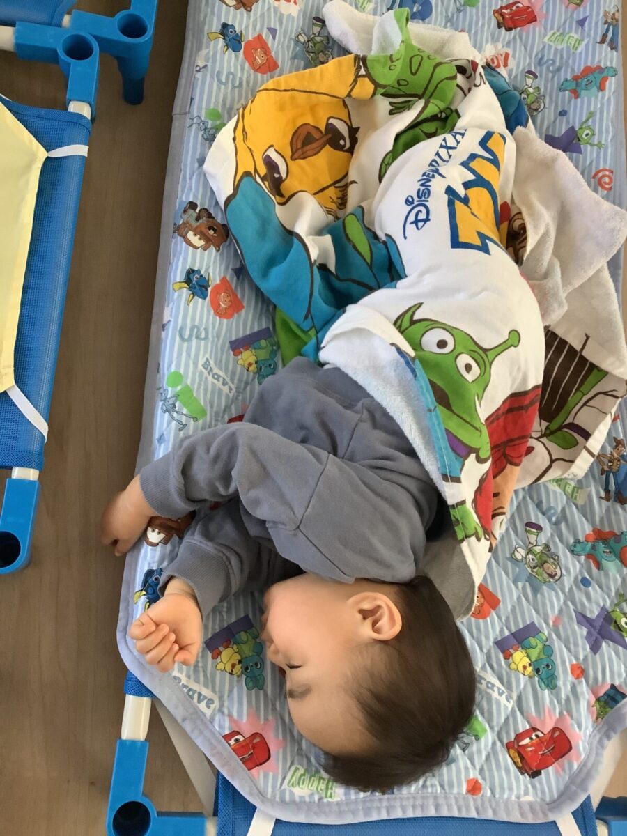 〈午睡〉たくさん遊んで、ぐっすり眠っていますね!