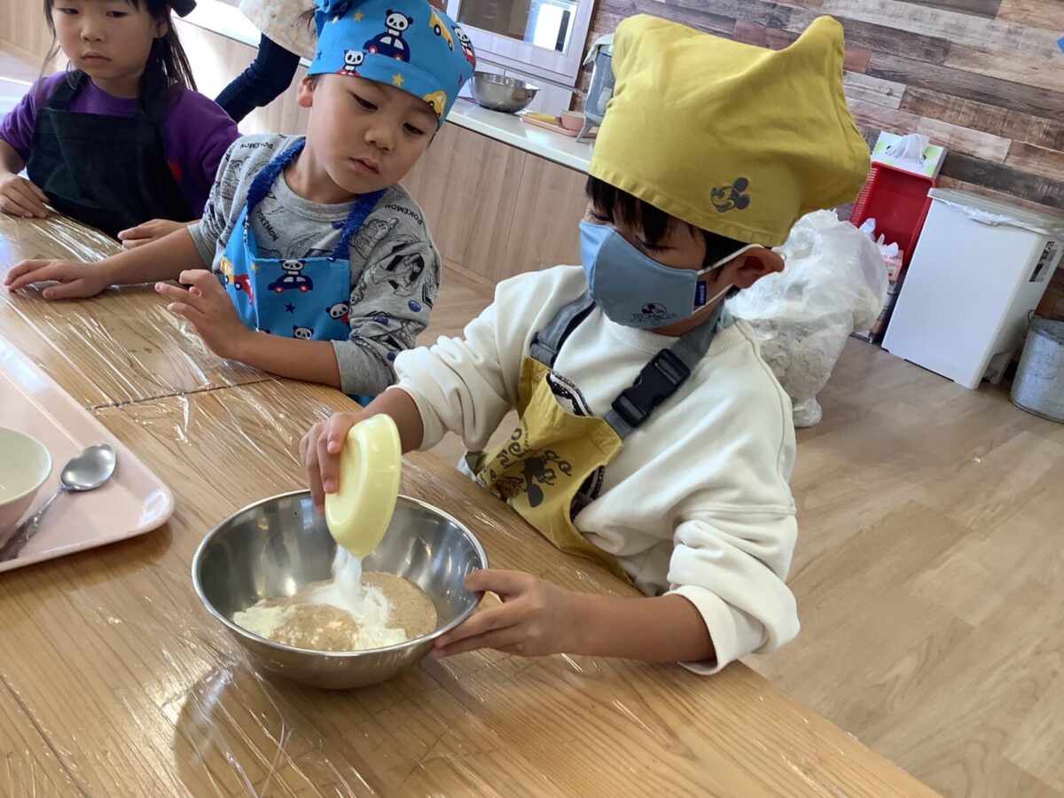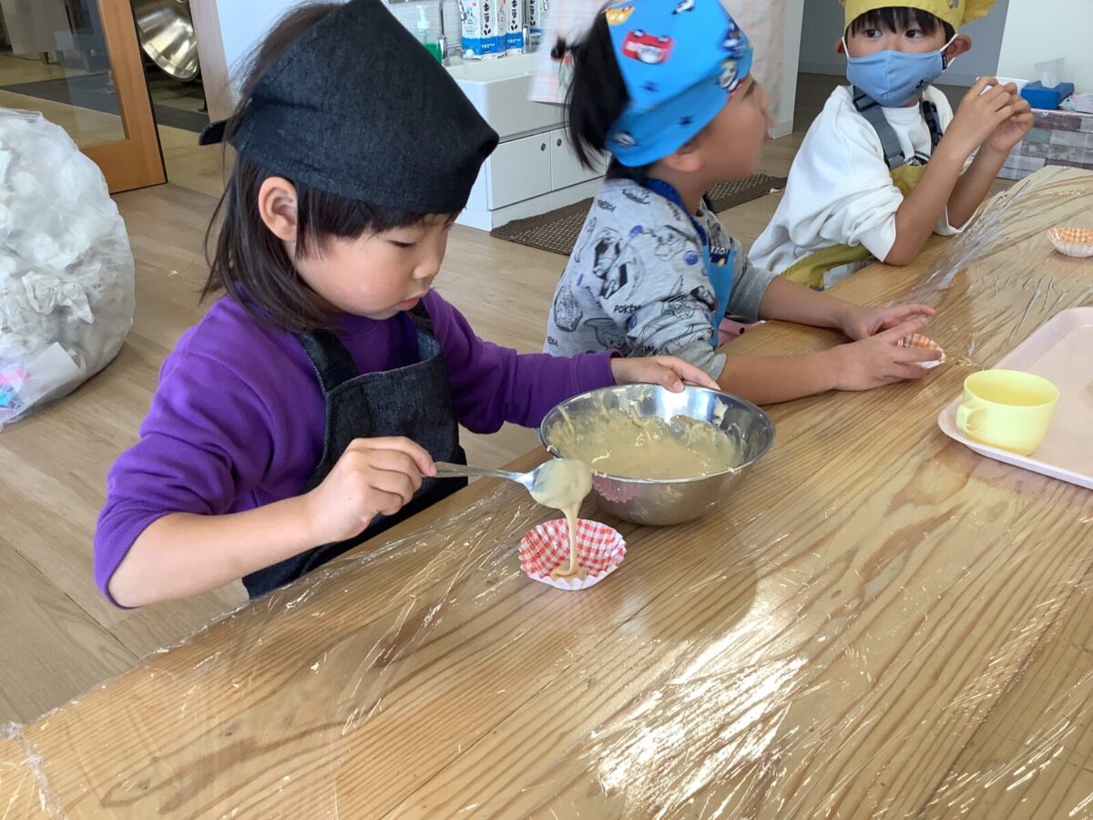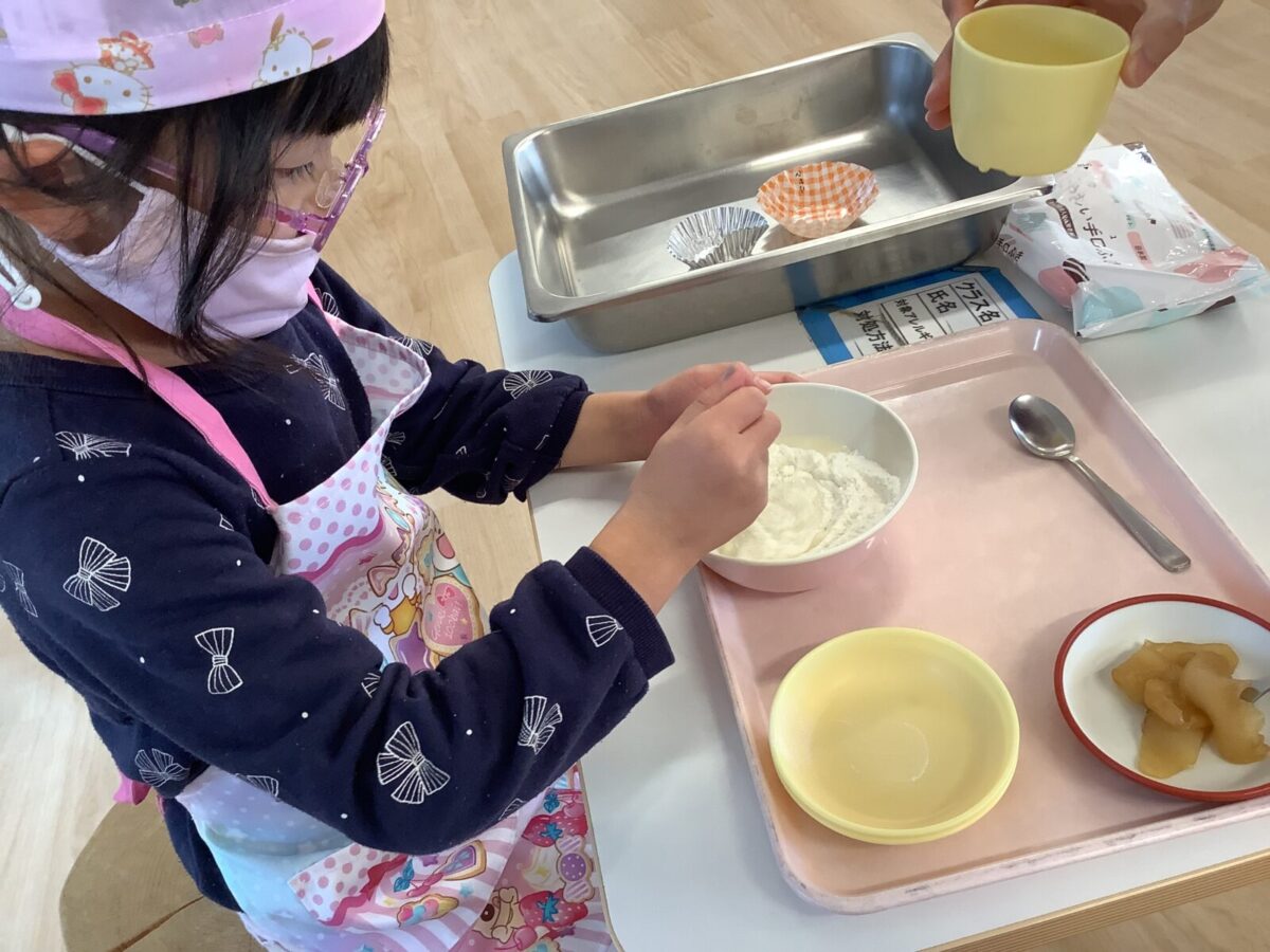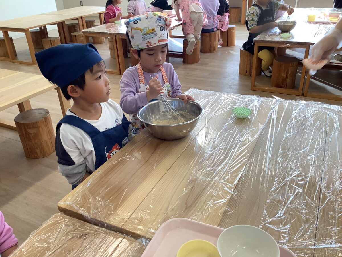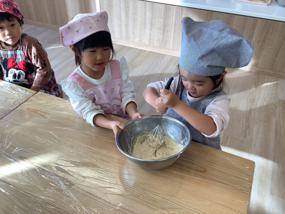 先月ではありますが、食育でりんご蒸しパン作りをしました。自分で作ったおやつはとっても美味しくて、「毎日これがいい!!」という子もいましたよ!