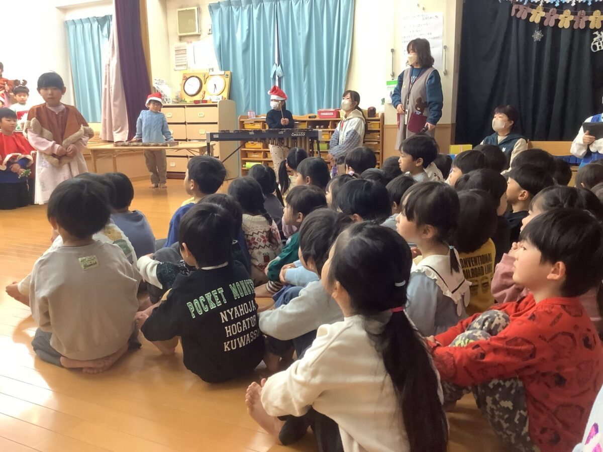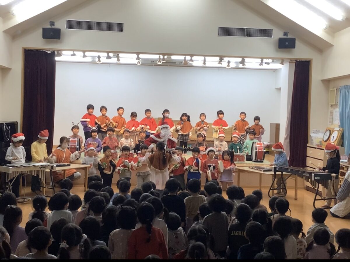年長のそら組さんは、サンタさんと一緒に「あわてんぼうのサンタクロース」の合奏を披露してくれました♪