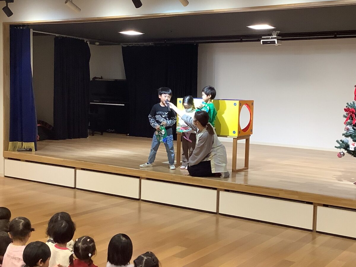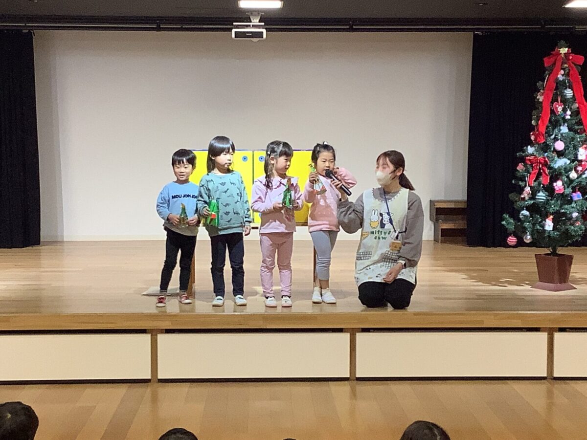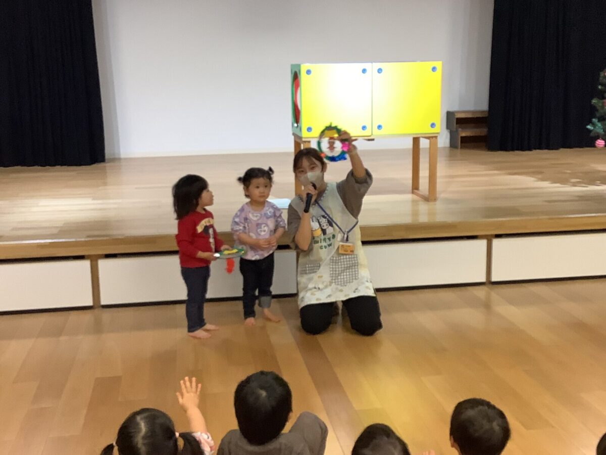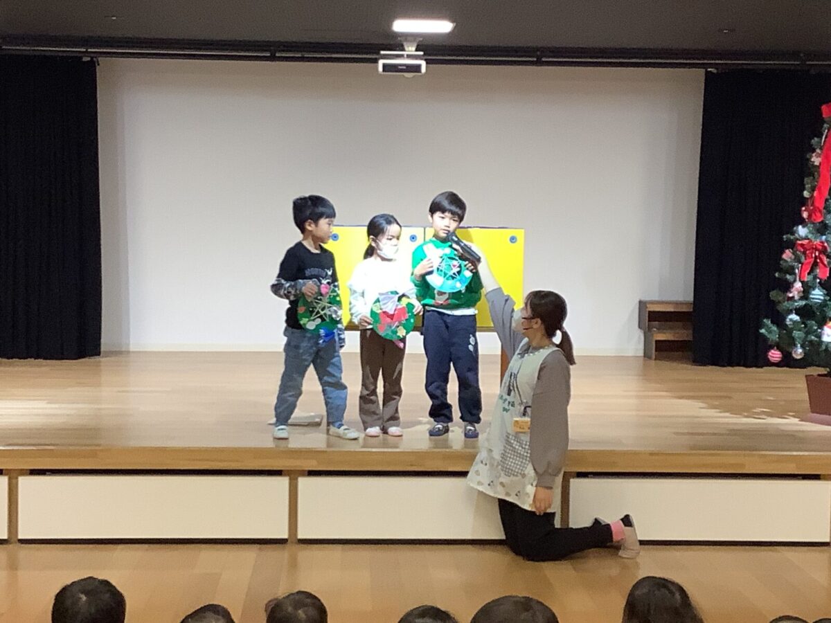 子ども達が楽しみにしていたクリスマス会をしました♪クリスマス会までに各クラスで製作をし、サンタさんがくるのを毎日楽しみにしていました。当日はホールに集まり歌を歌ったり、先生達の出し物を見たりサンタさんが登場するのを今か今かと待っていましたよ♪
