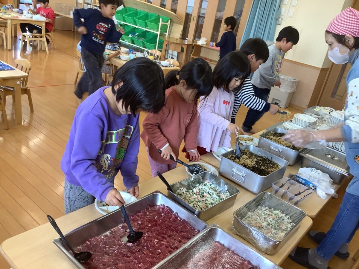 また、給食の時間もいつもとは異なり、11時から自分のペースで好きな時間にゆったり食事を楽しむことができる環境を作りました。