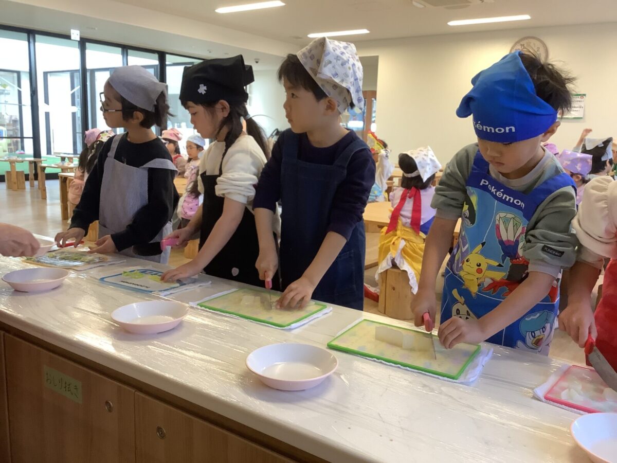 ぶどう組で作った味噌を使って味噌汁作りの食育を行いました。