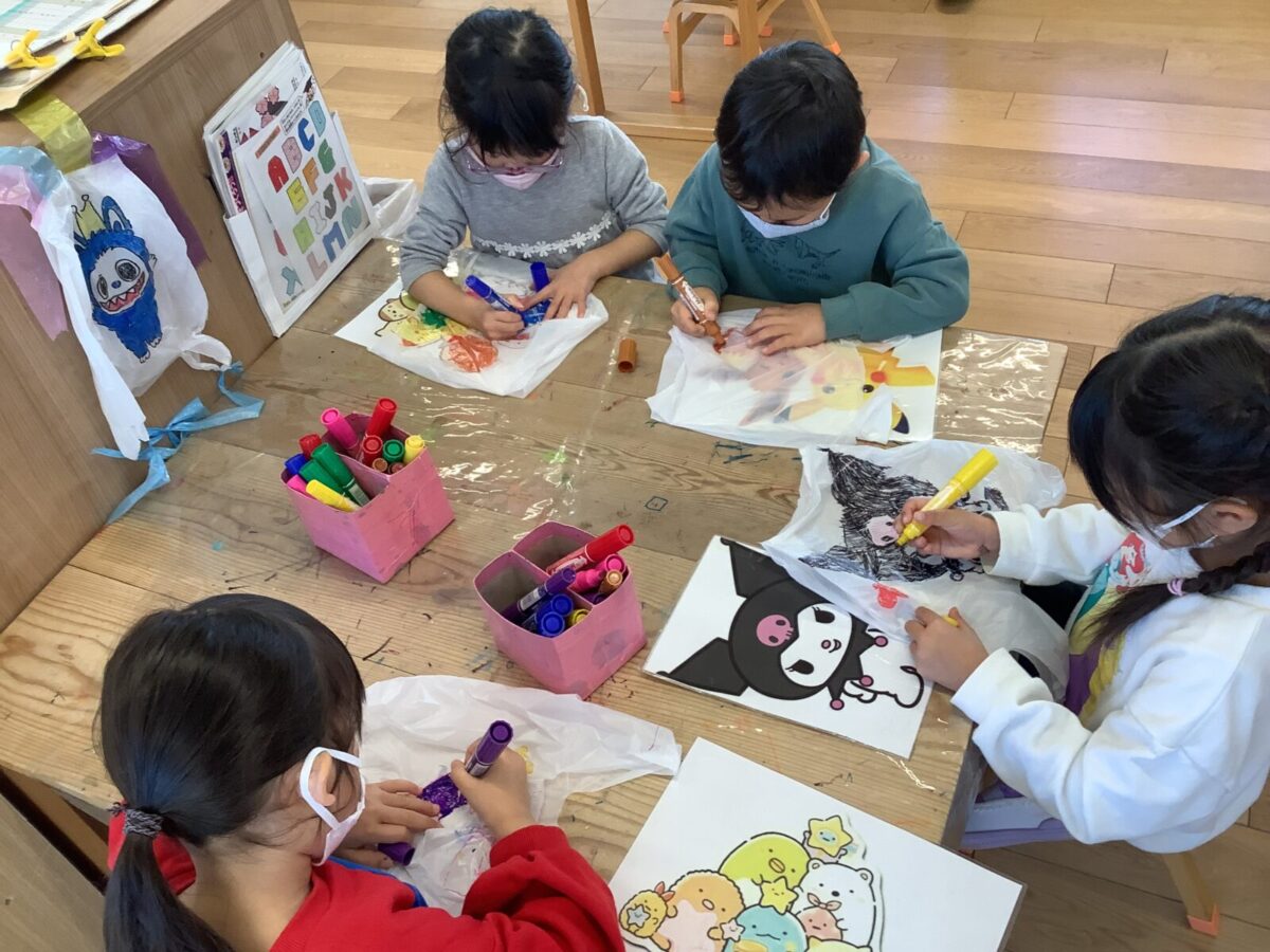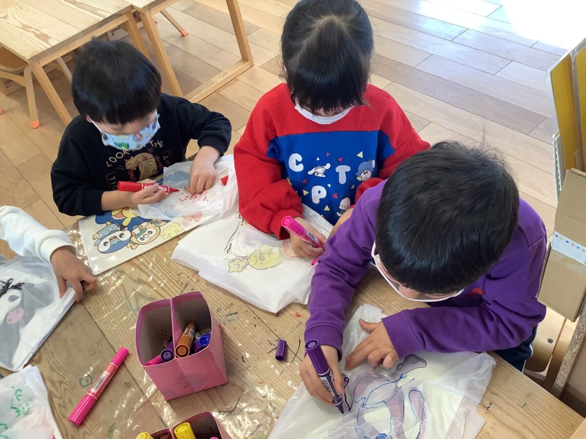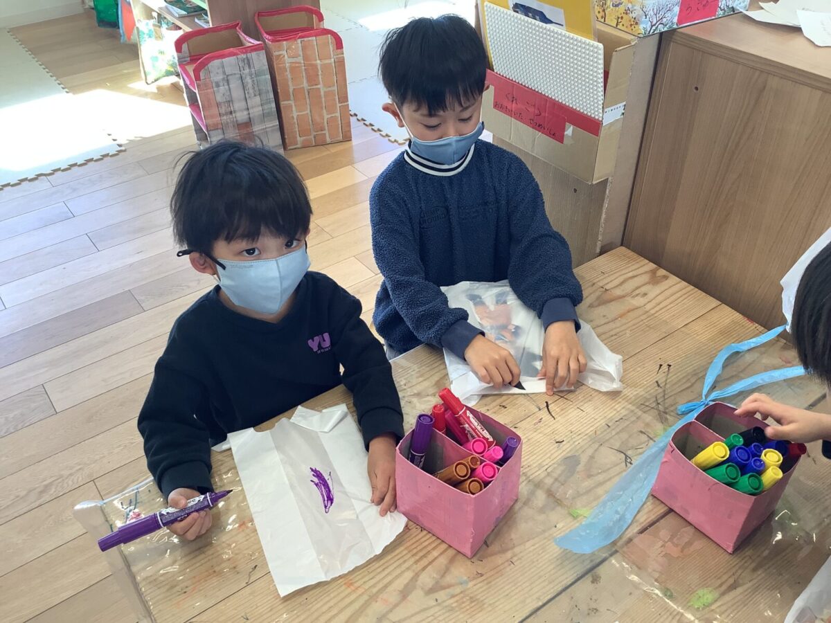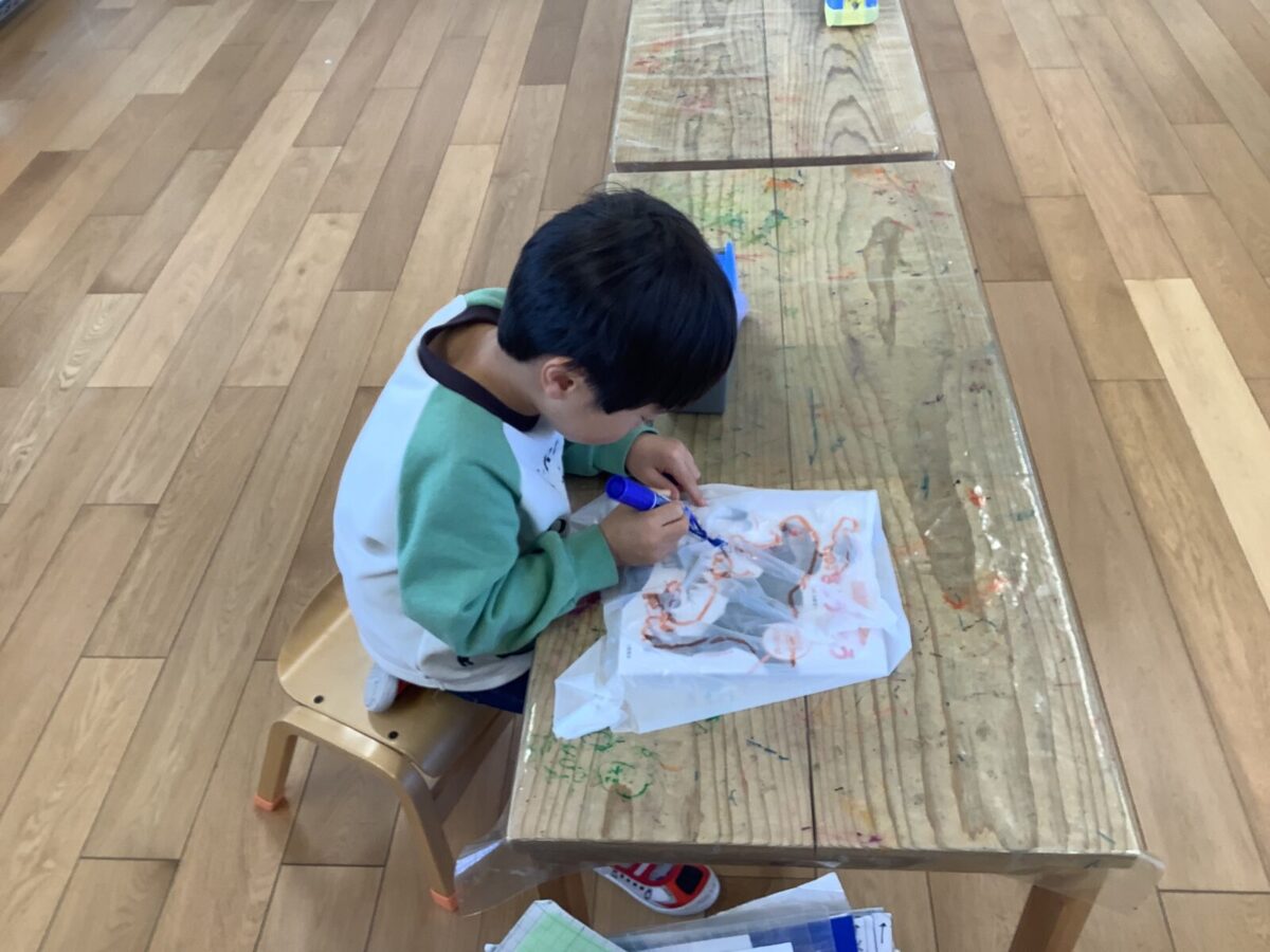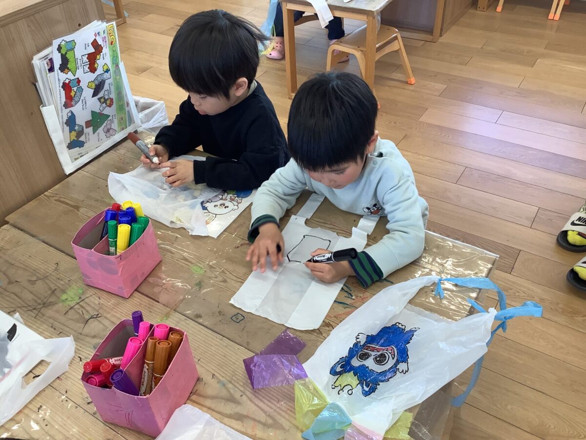 今月は一人のお友達が廃材製作で凧を作ったことをきっかけにみんなで凧揚げをすることにしました。