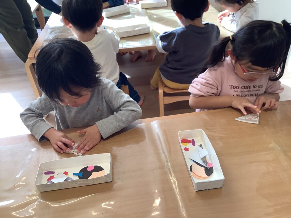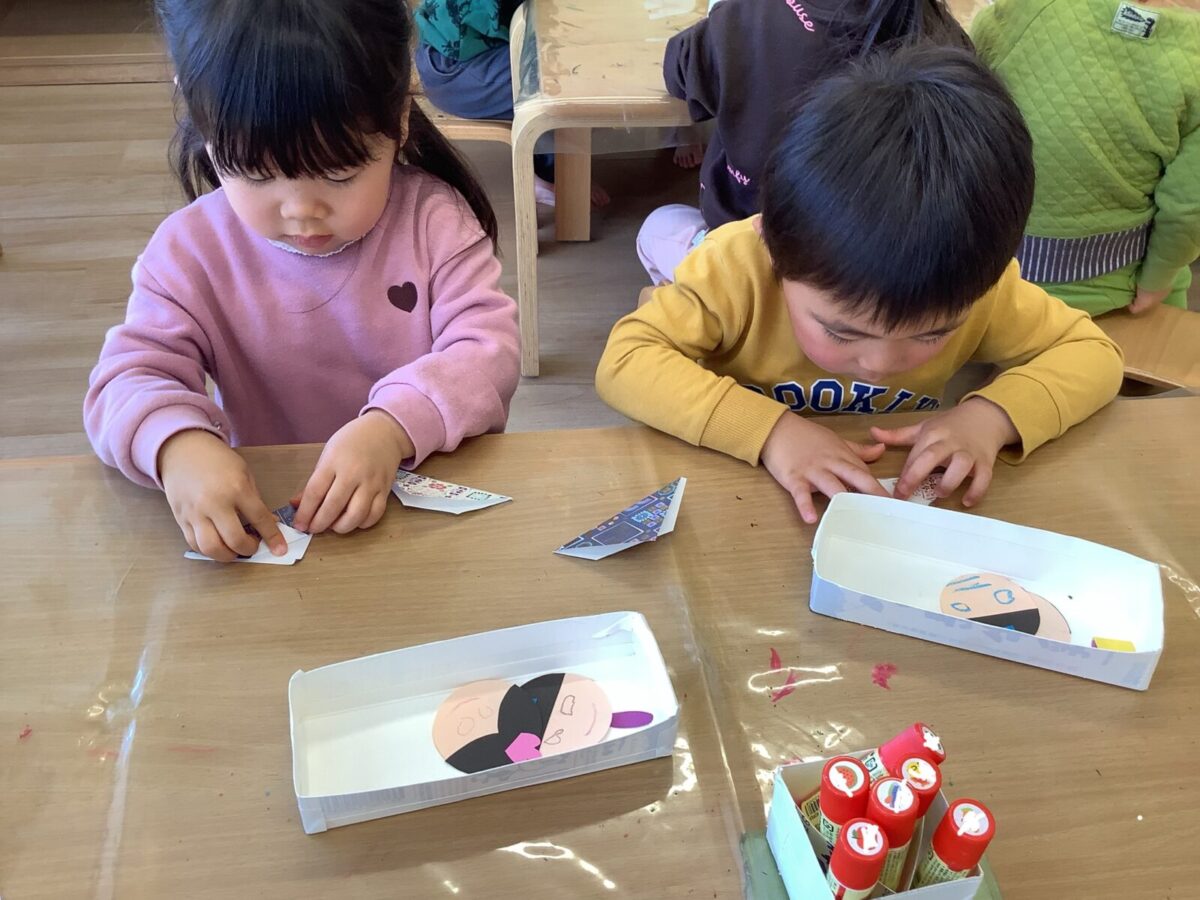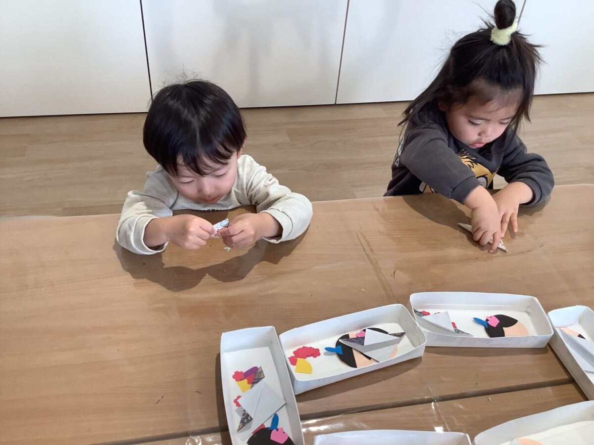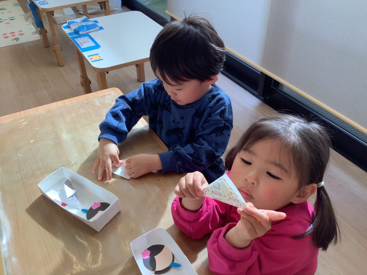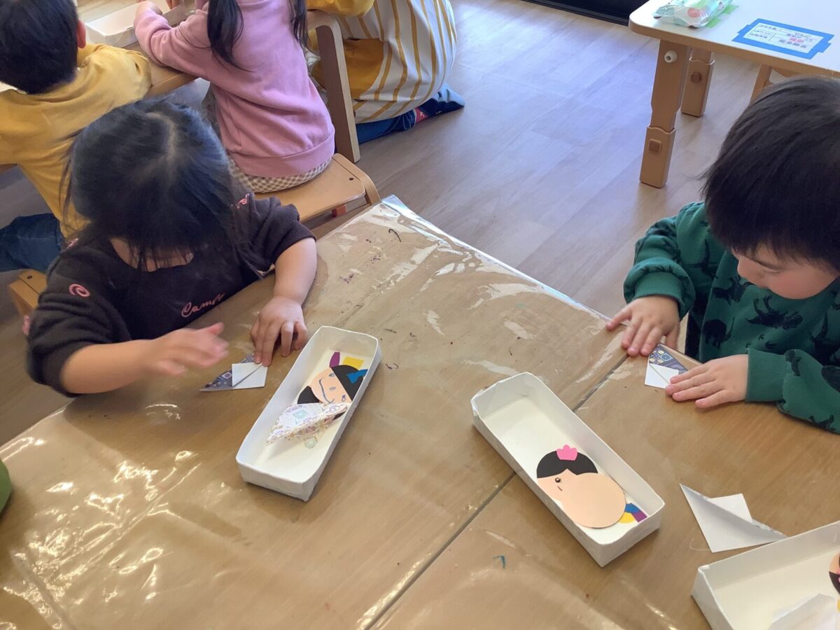 【ひな祭り製作】お雛様とお内裏様の着物は折り紙に挑戦しました!
