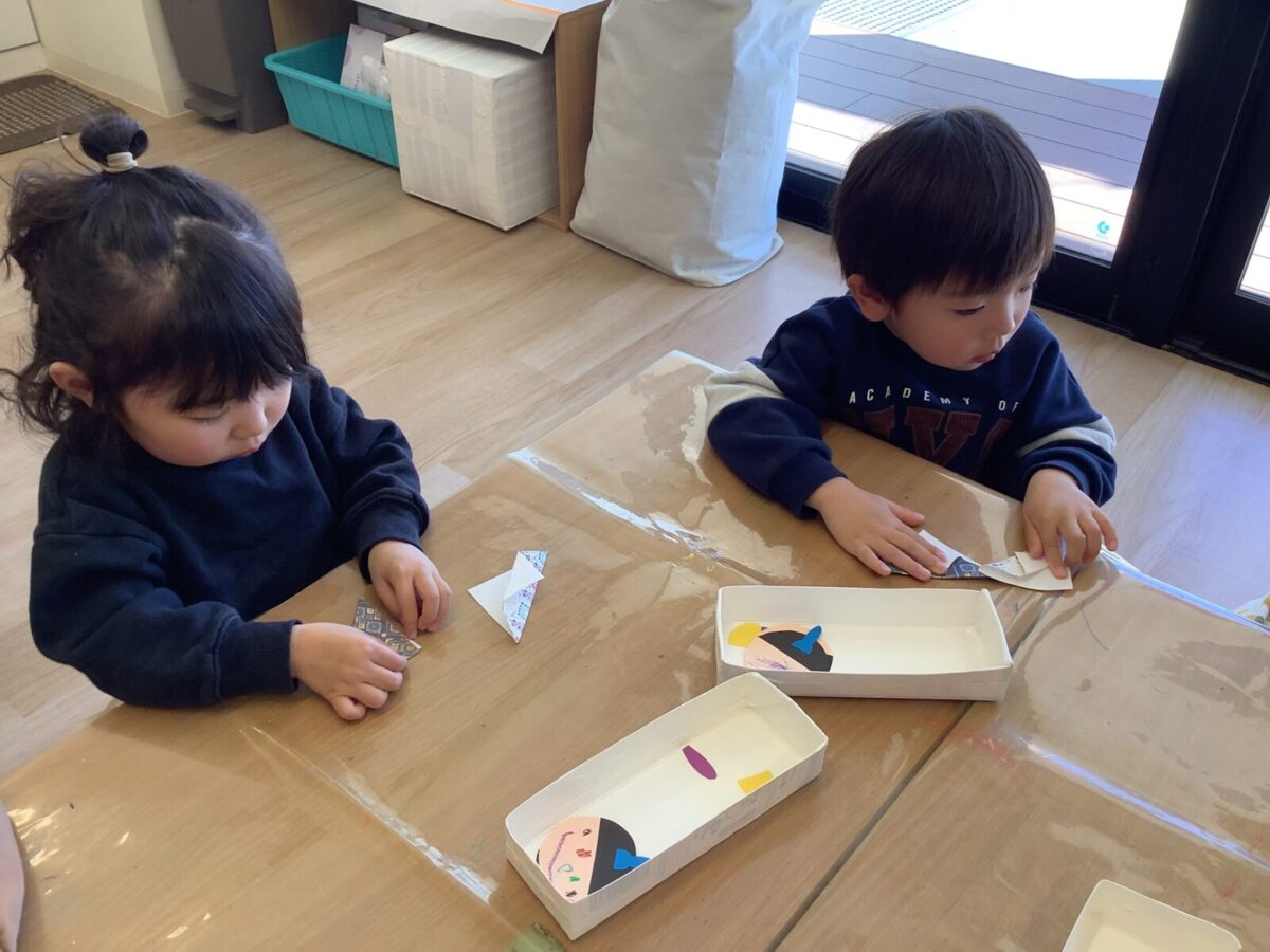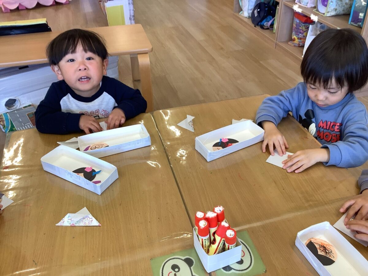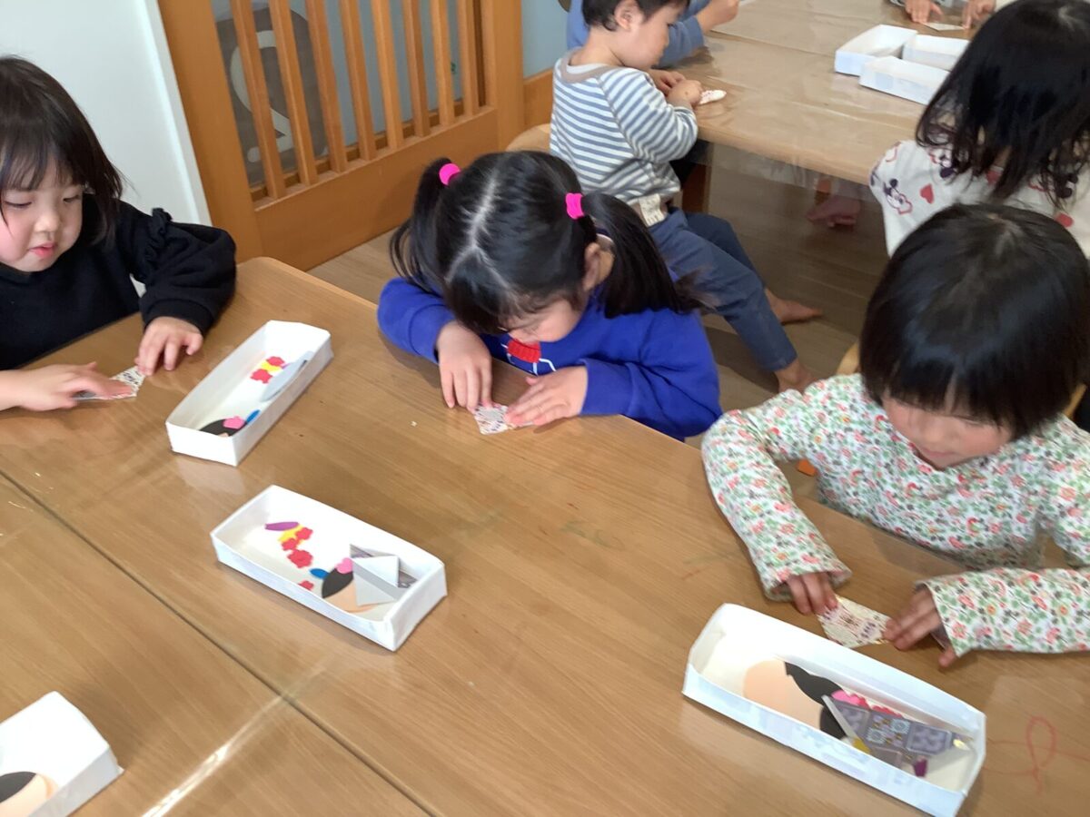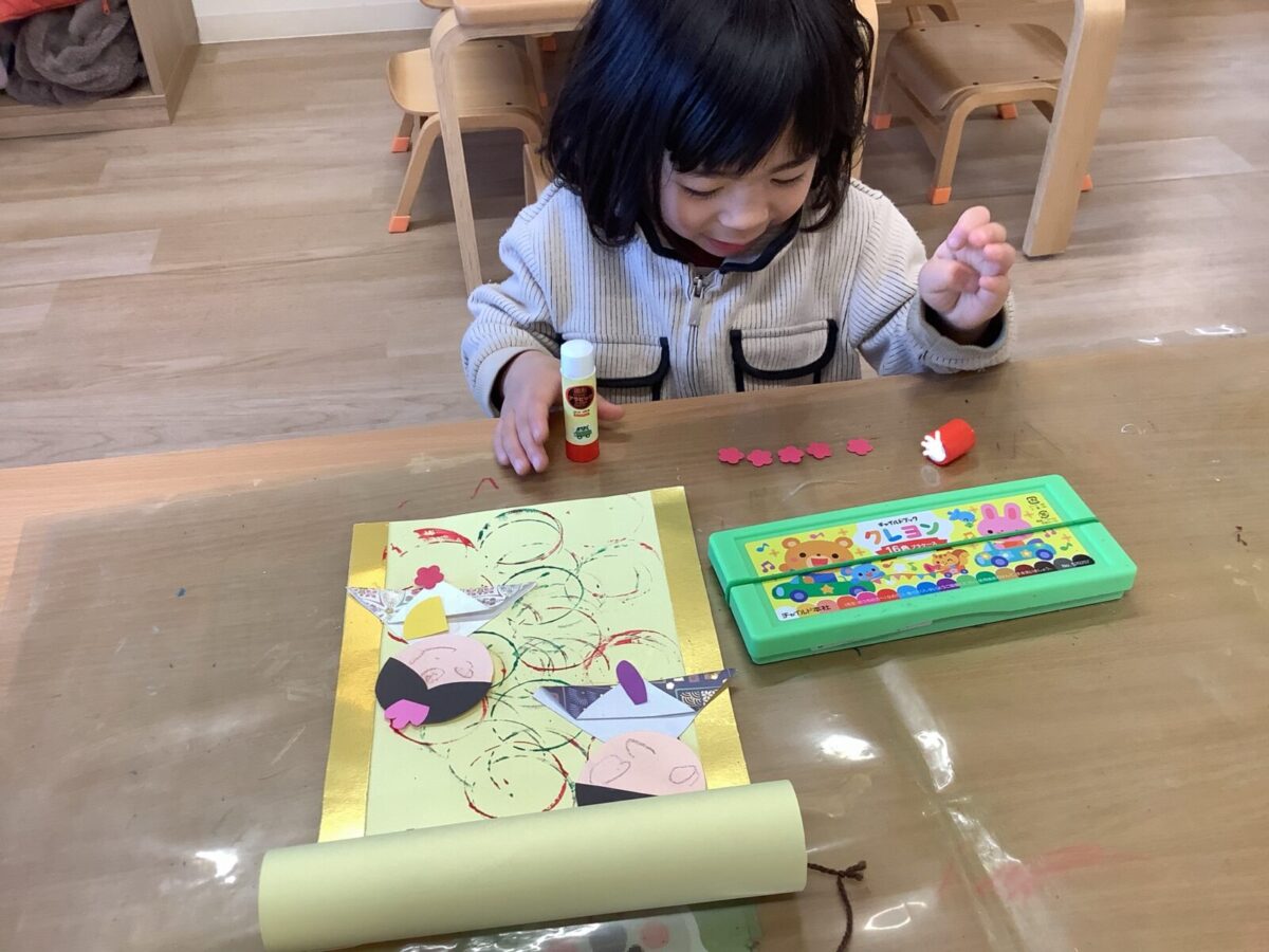 【ひな祭り製作】お雛様とお内裏様の着物は折り紙に挑戦しました!