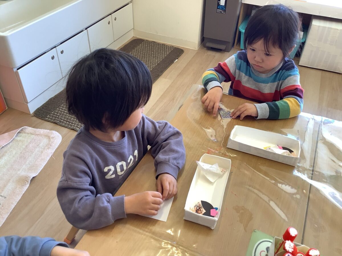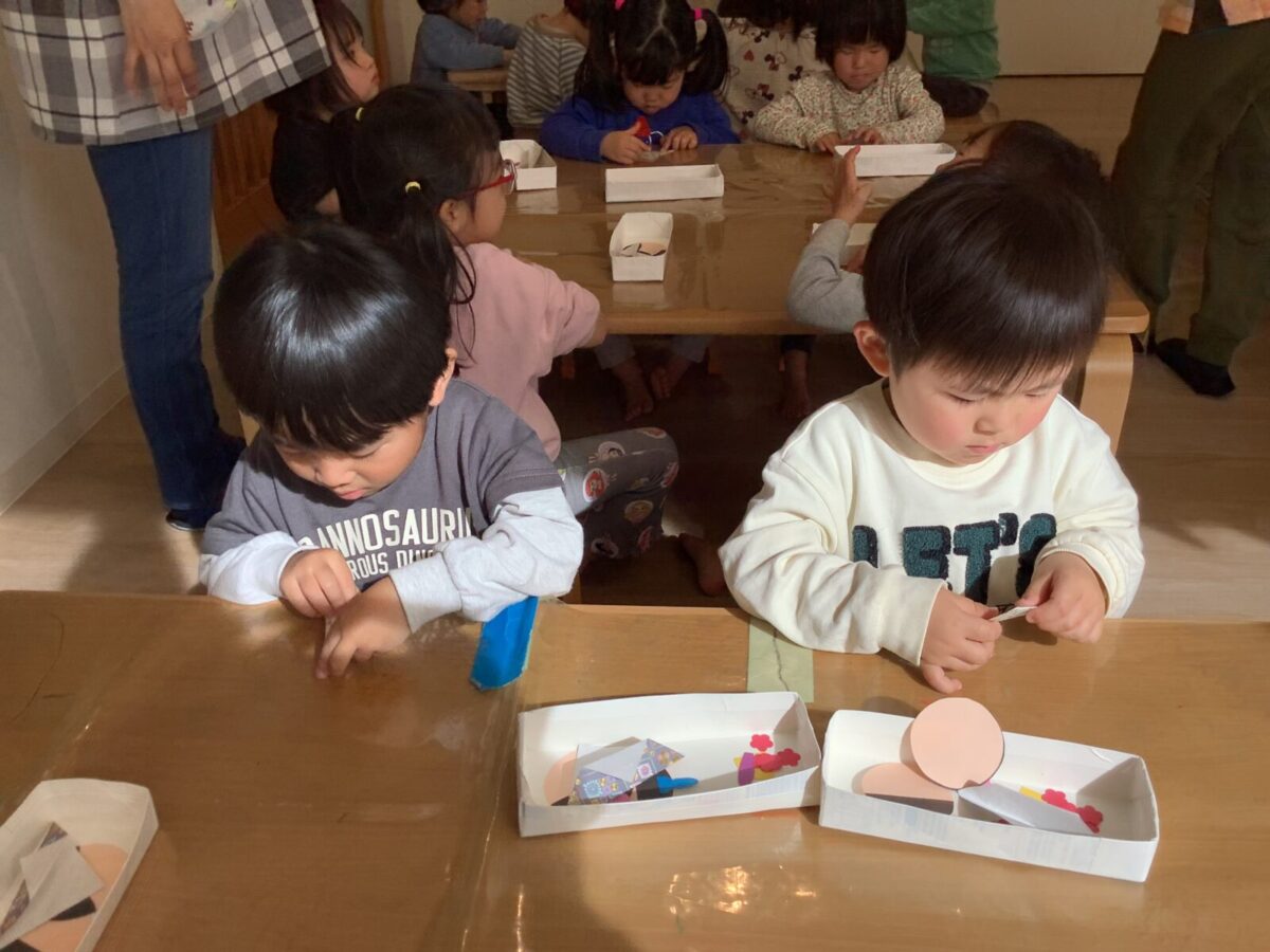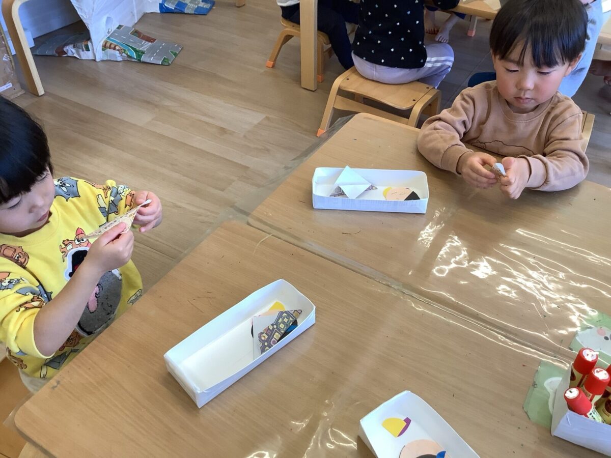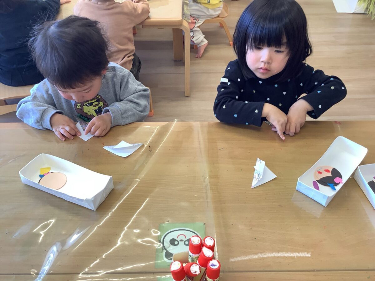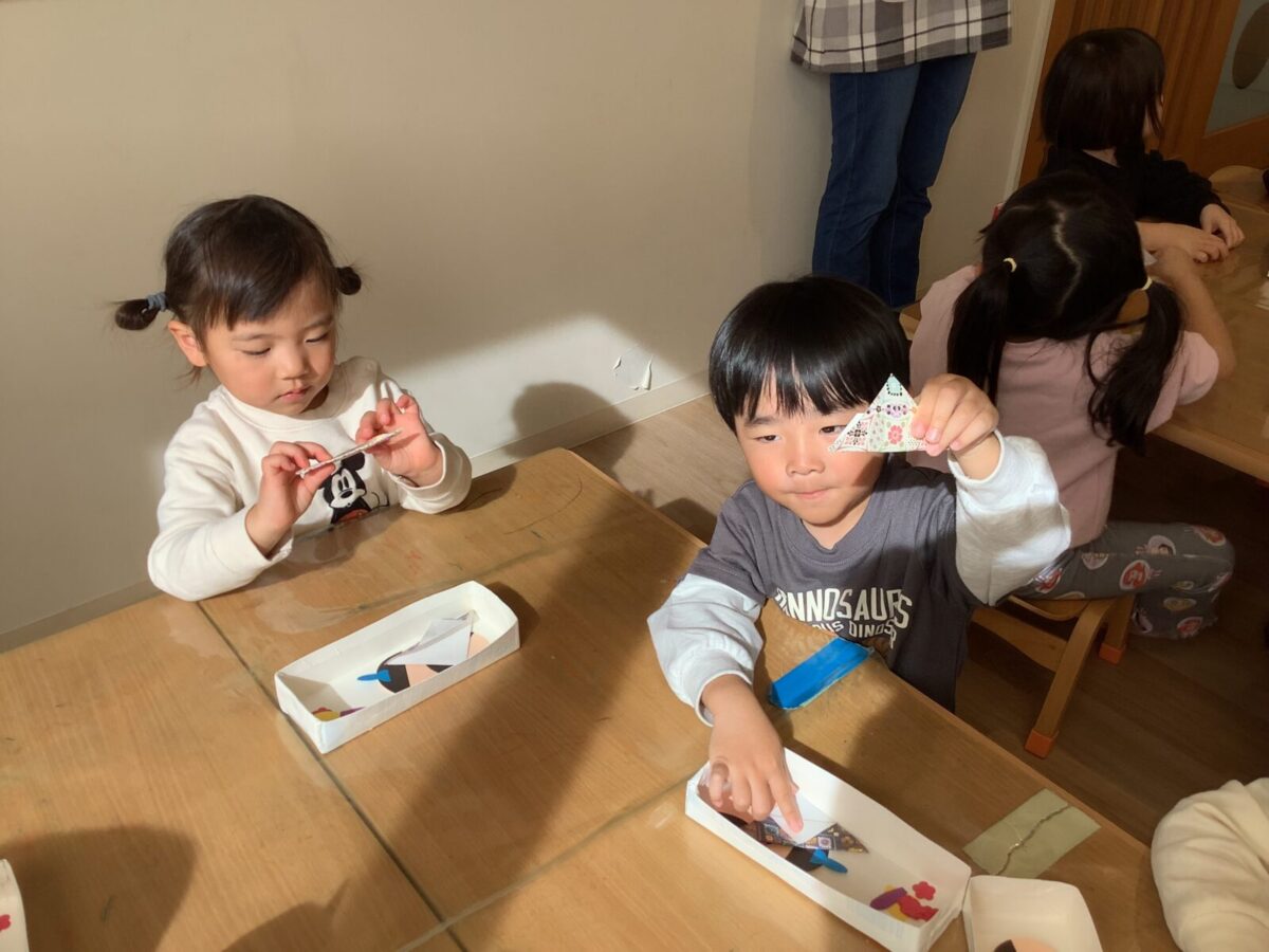 【ひな祭り製作】お雛様とお内裏様の着物は折り紙に挑戦しました!