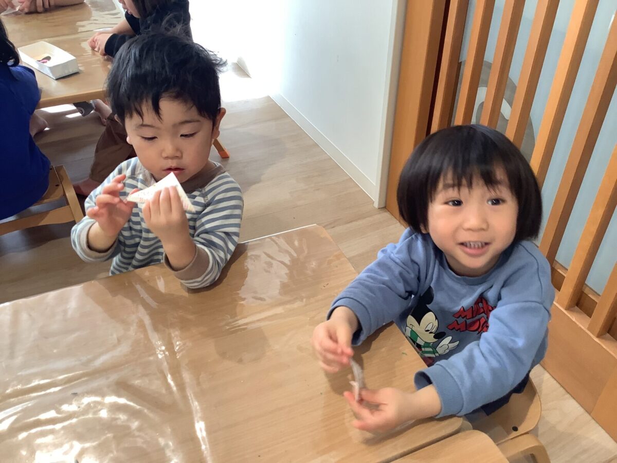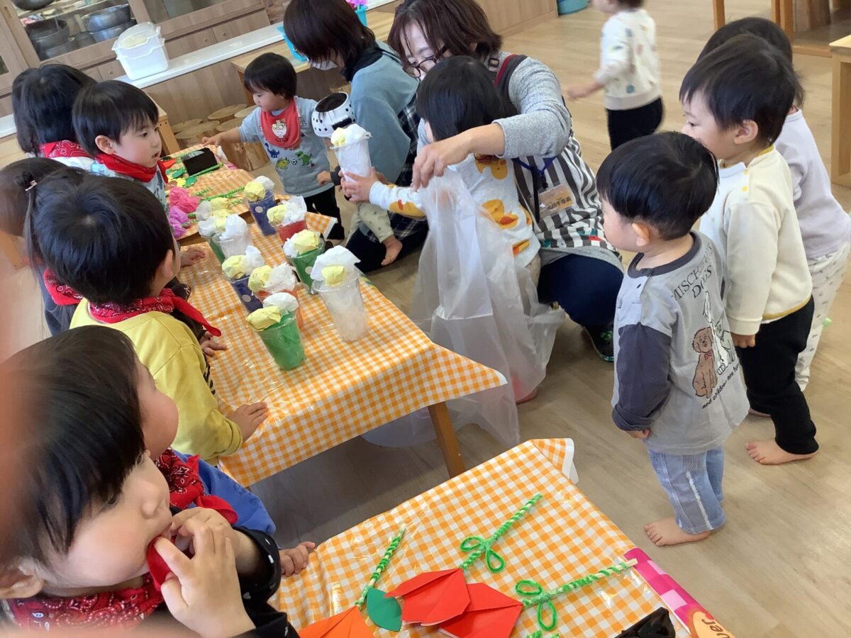 寒さの中にも暖かい日差しが感じられる今日この頃、自分でできることがたくさん増えた子ども達。「もうすぐめろん組さんになる!」と少しずつ進級を意識しながら、元気いっぱい過ごしています!