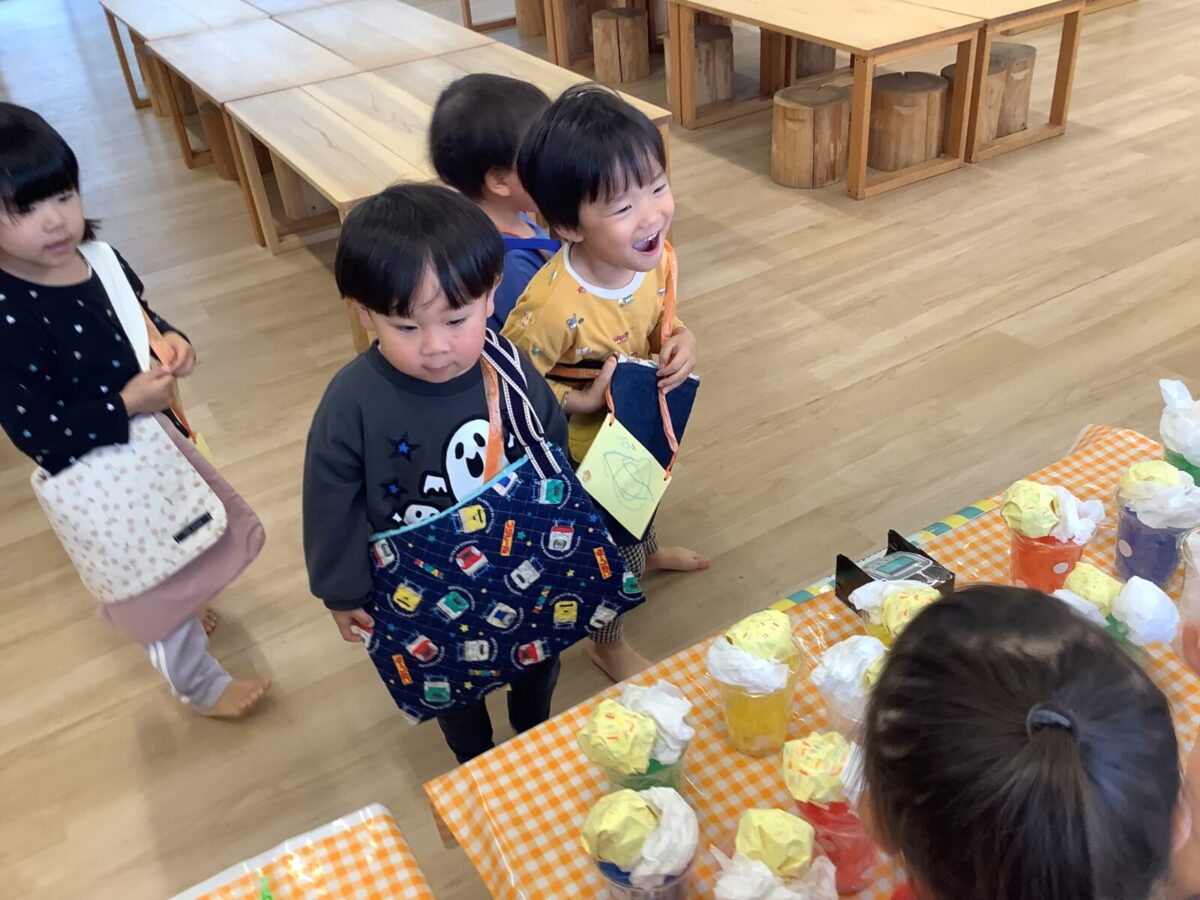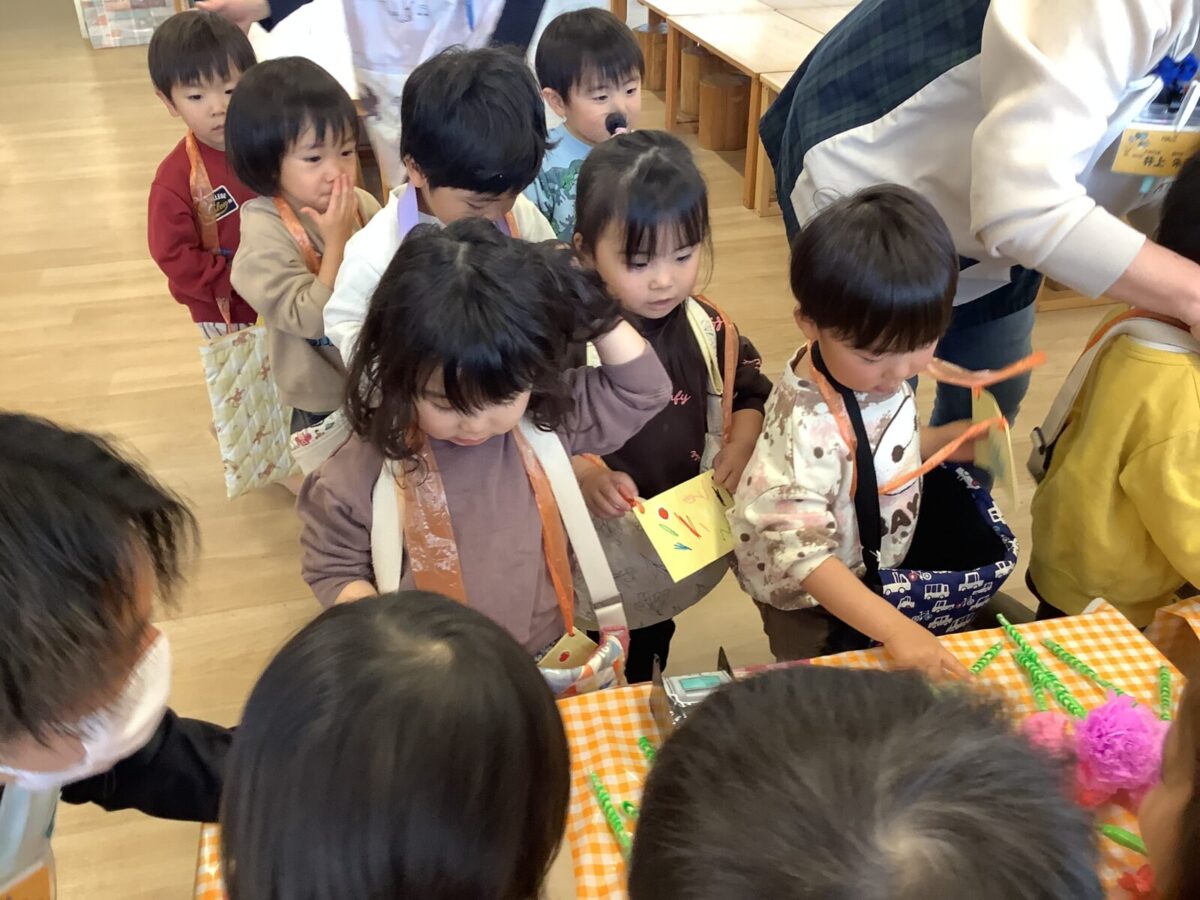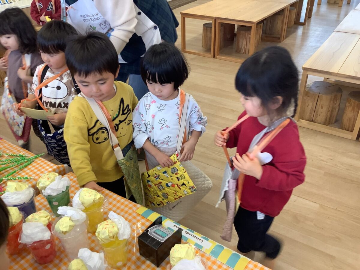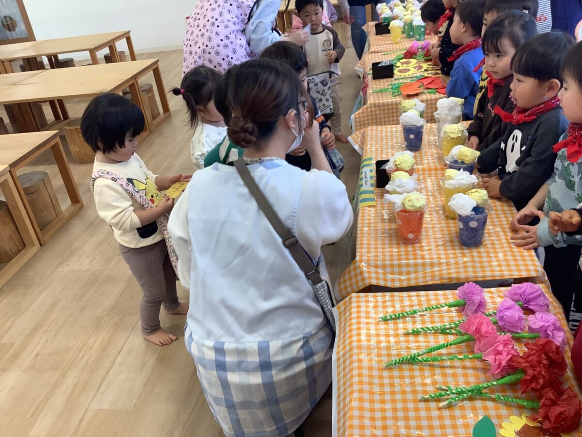 【お店屋さんごっこ】お花屋さんとジュース屋さんのかわいい店員さんたち!お客さんは自分でお絵描きしたお財布を持ってお買い物♪支払いはカードで!