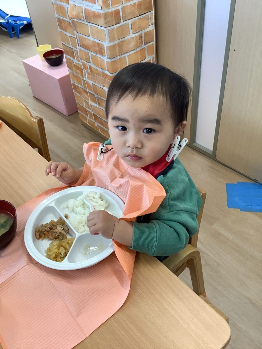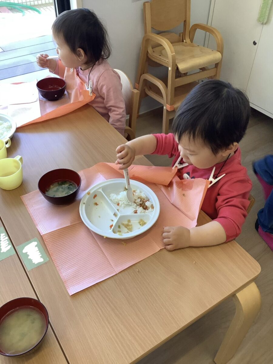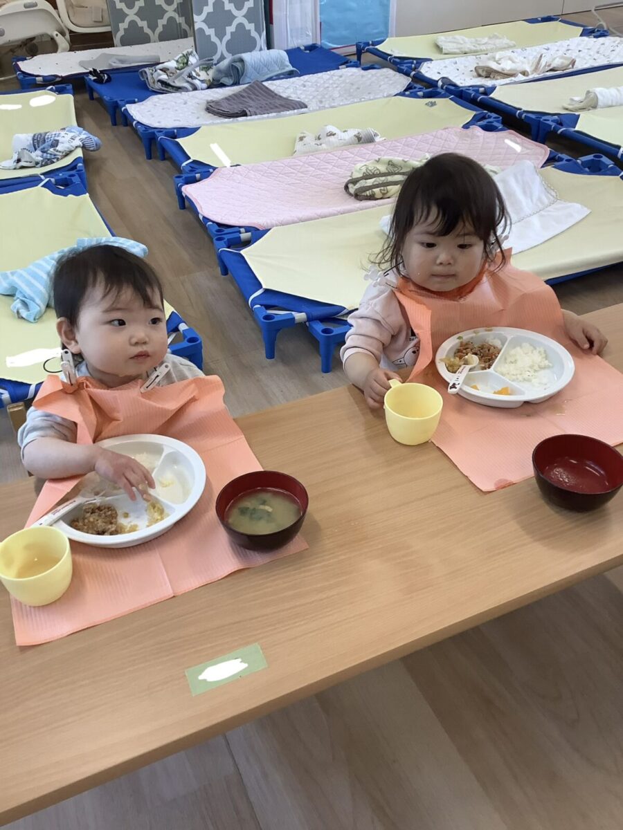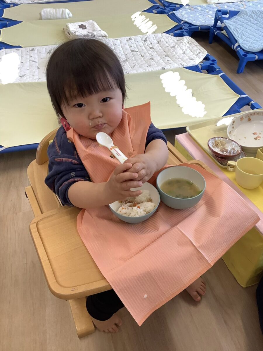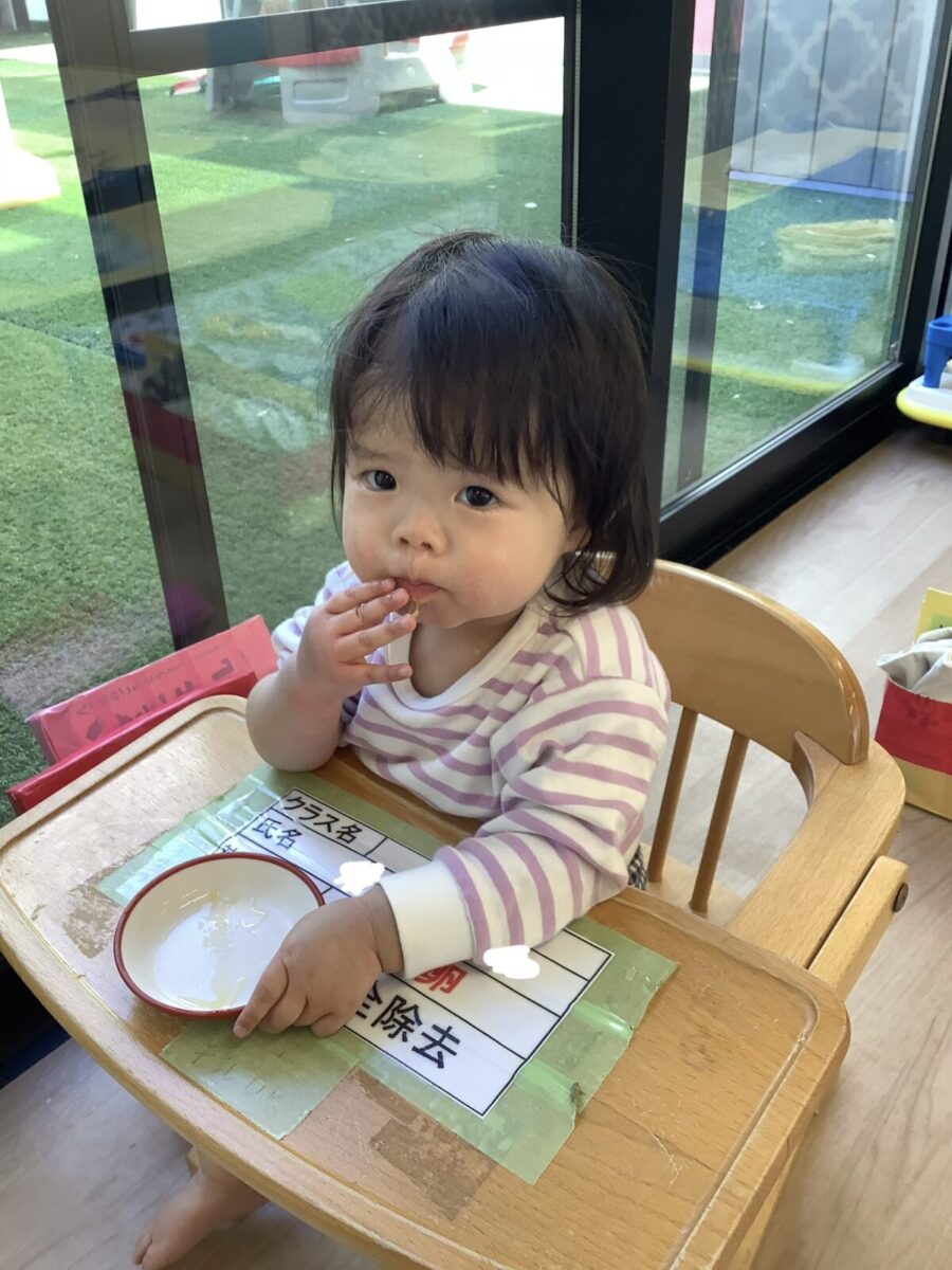 0歳児組での投稿も最後となりました。今回は室内遊びや食事の様子をお届けします!
