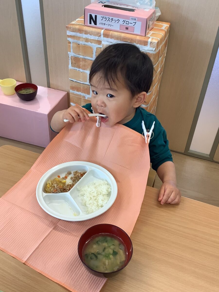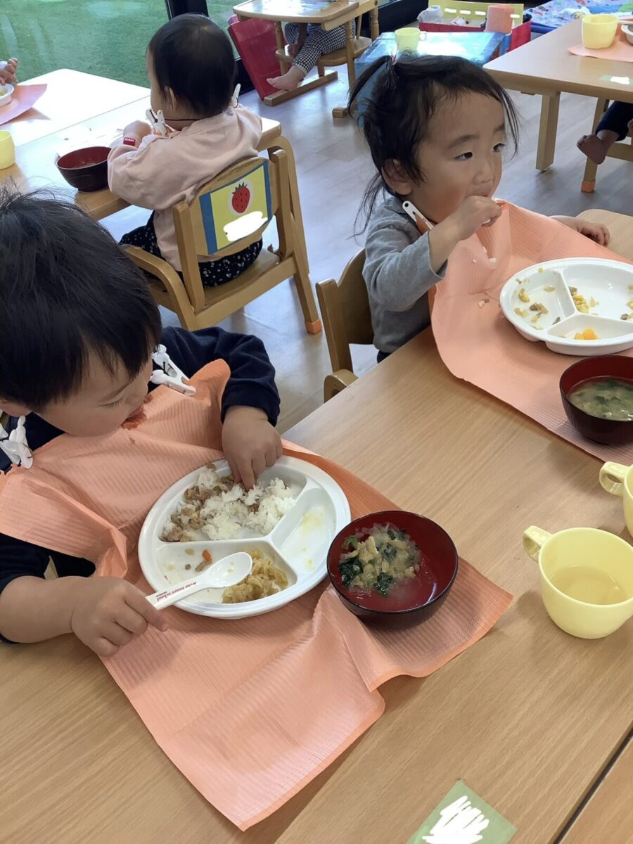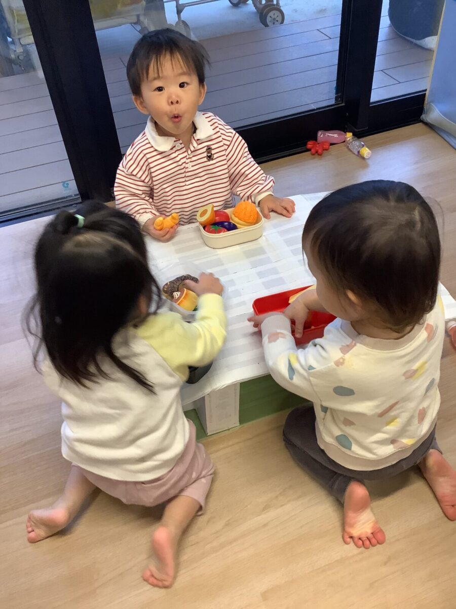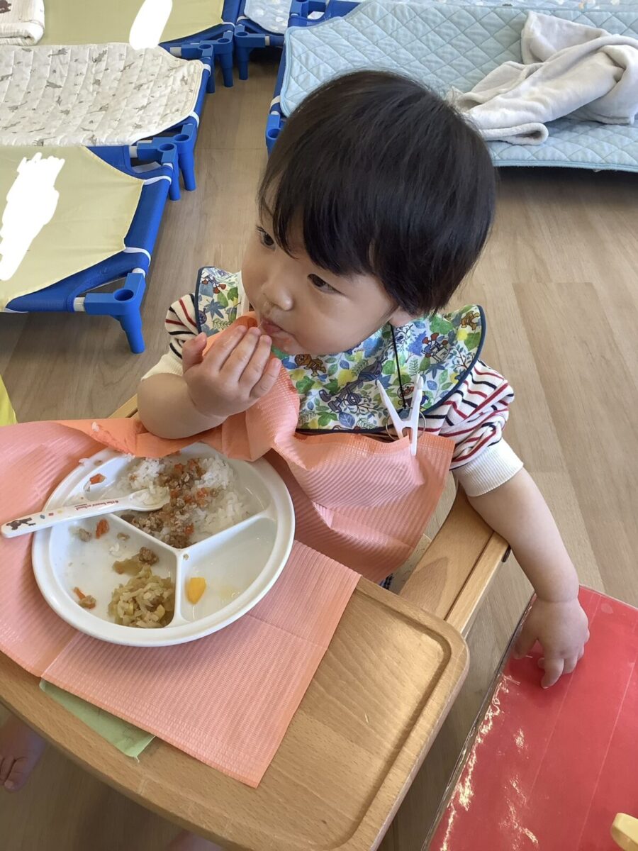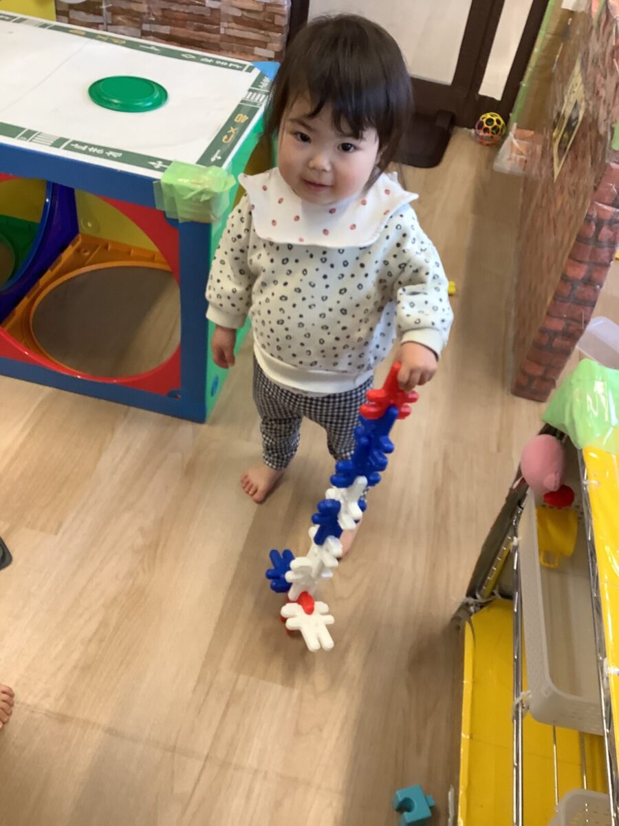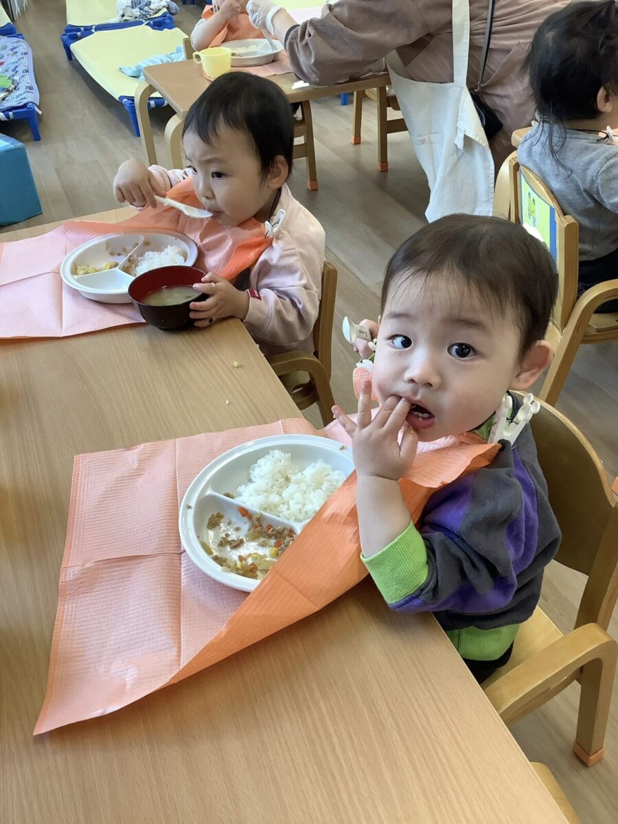 0歳児組での投稿も最後となりました。今回は室内遊びや食事の様子をお届けします!
