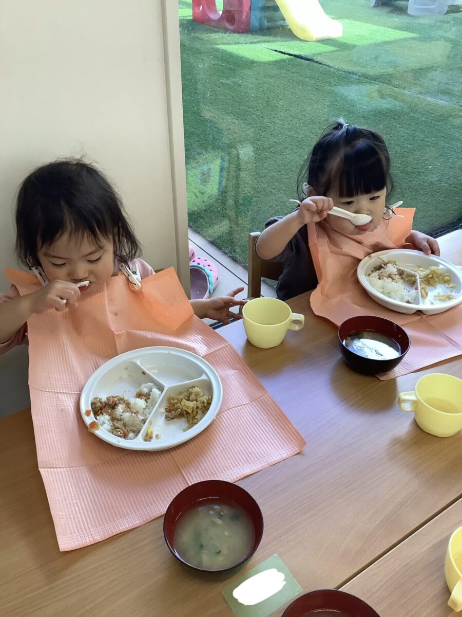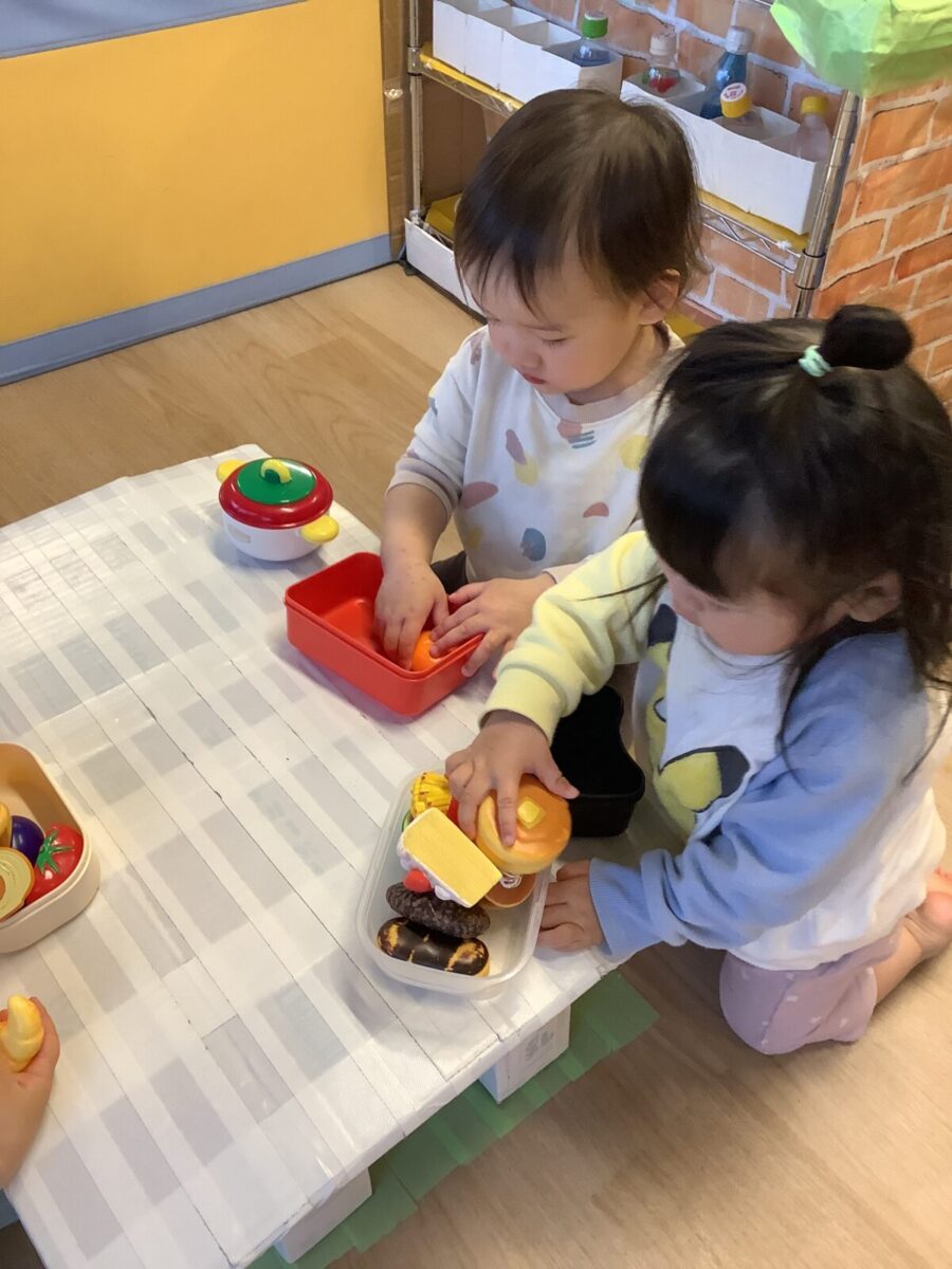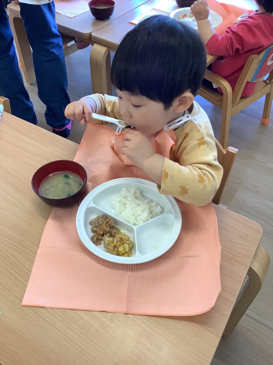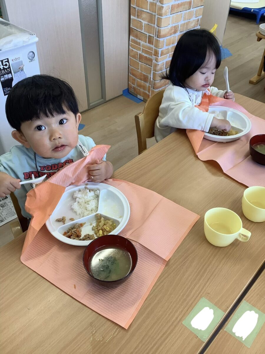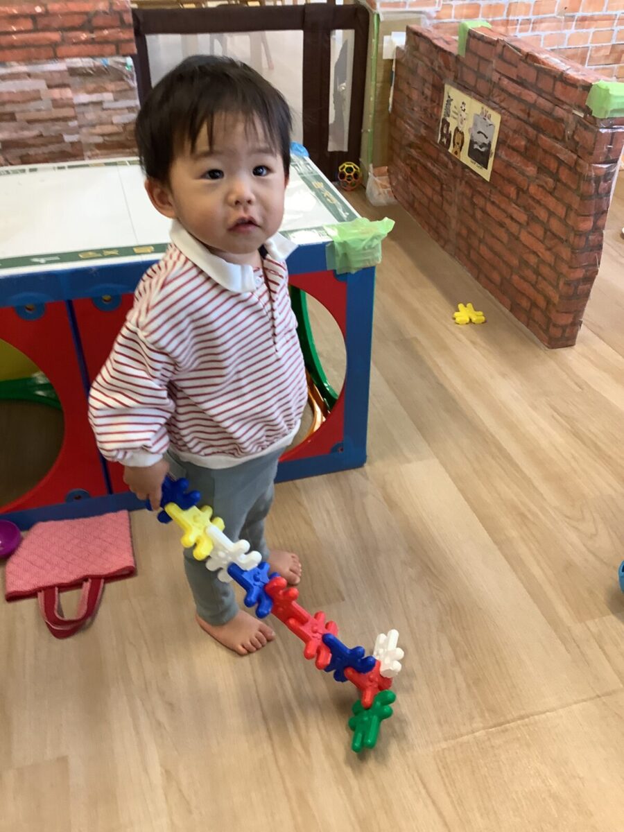 0歳児組での投稿も最後となりました。今回は室内遊びや食事の様子をお届けします!
