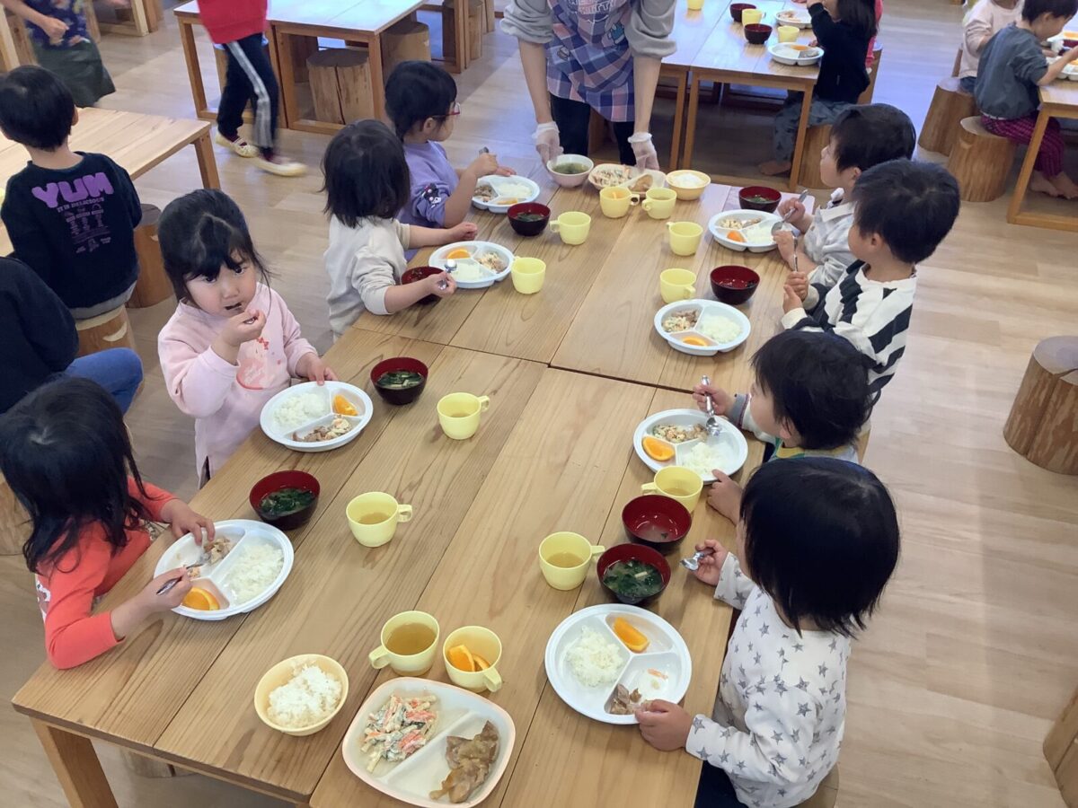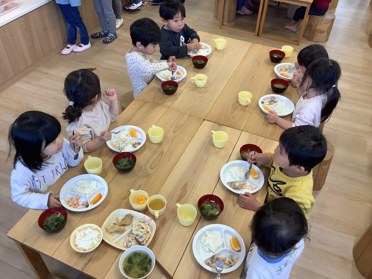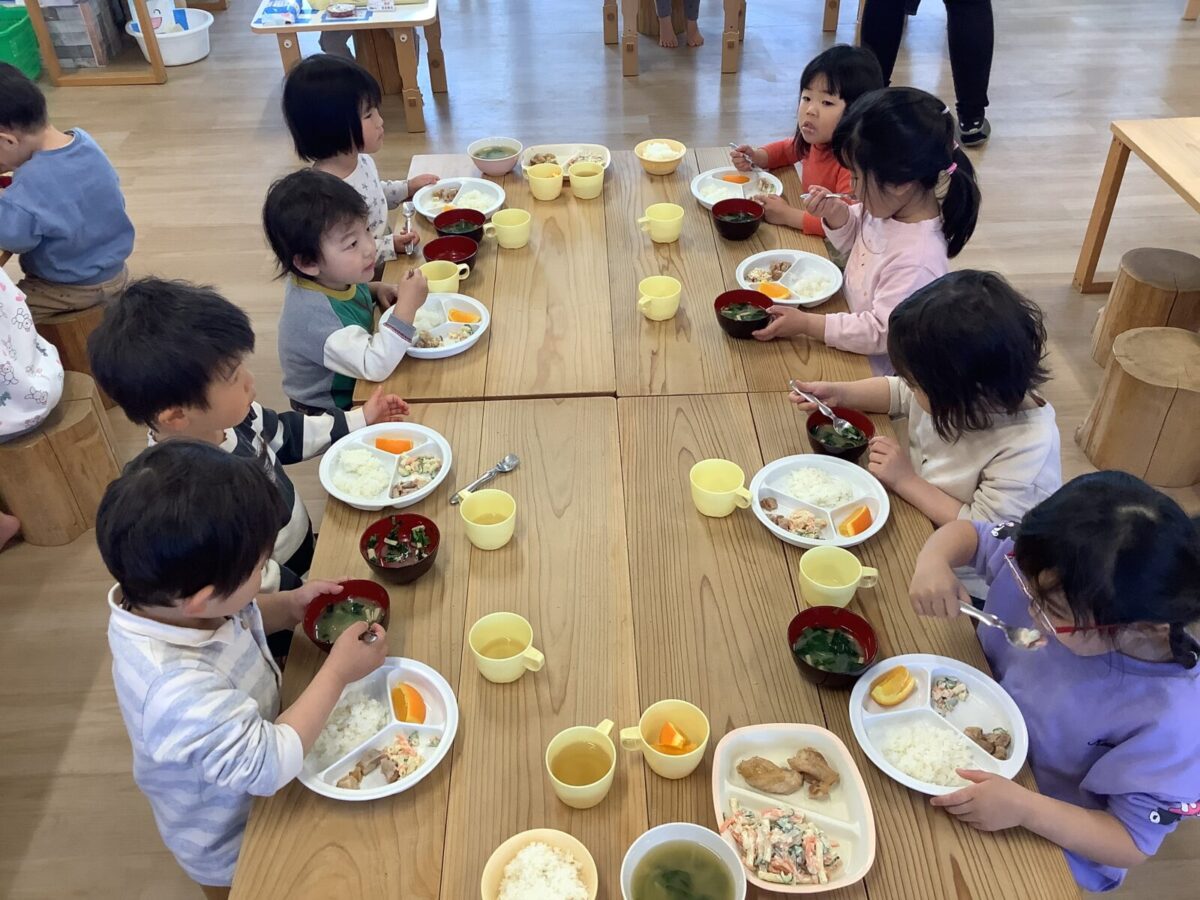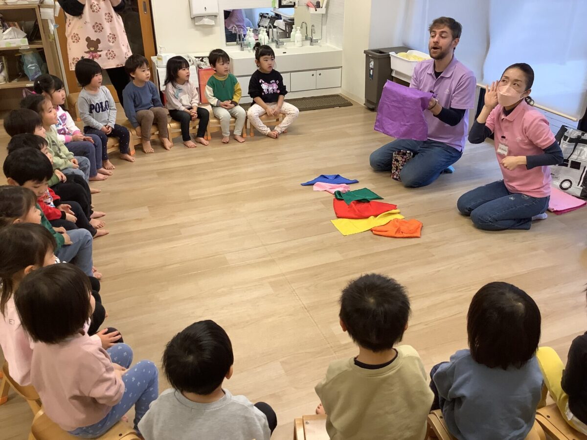 めろん組になってから行う「英語遊び」「ランチルームでの給食」を体験しました!