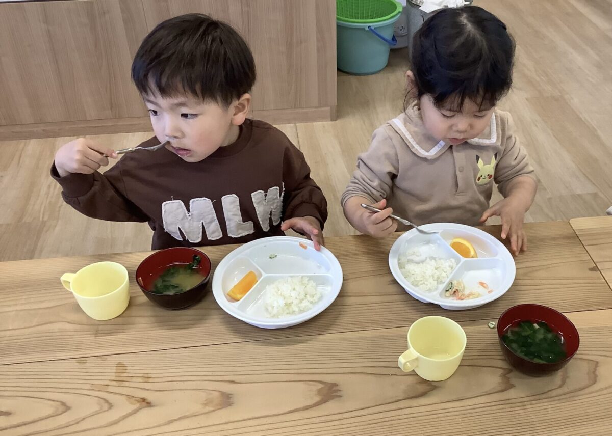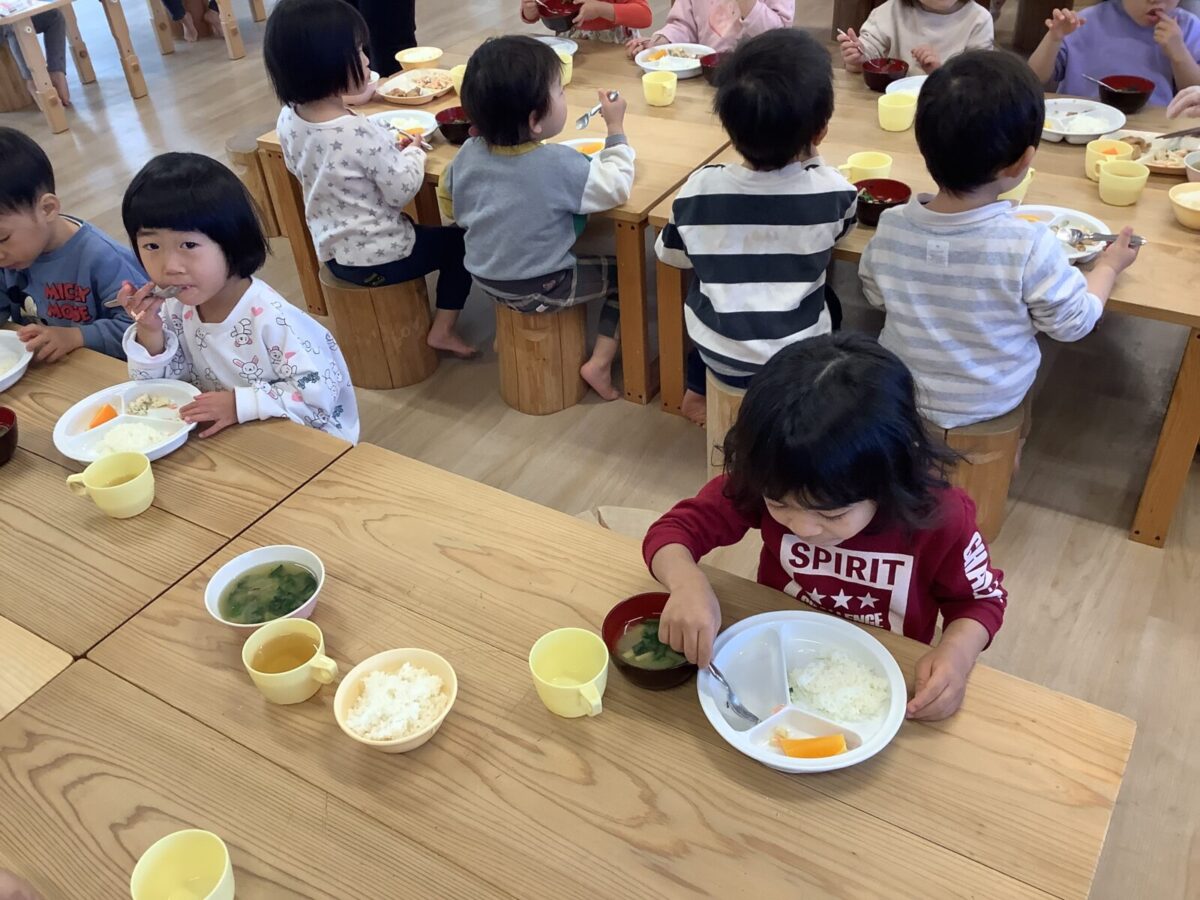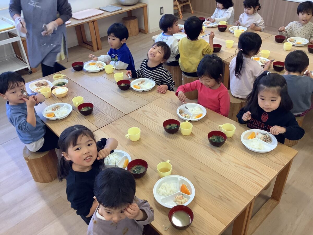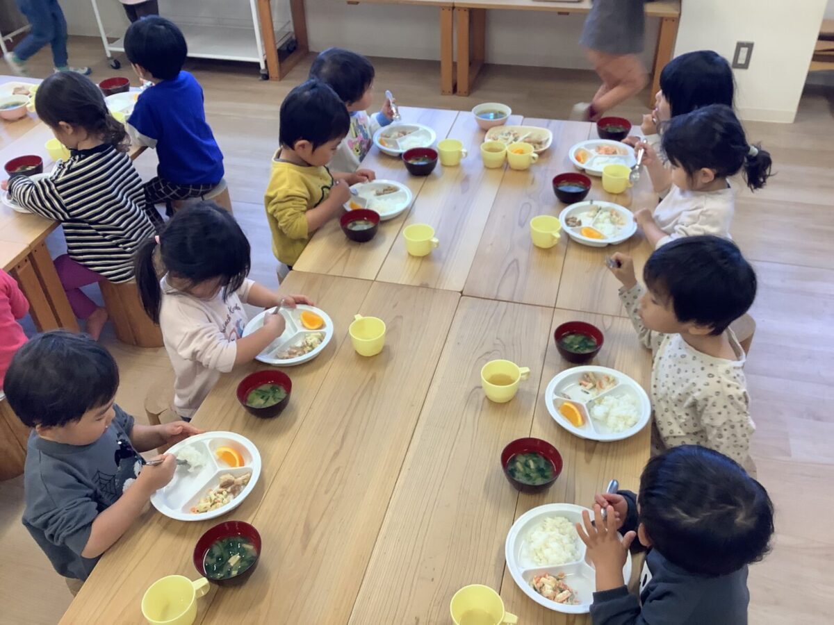 めろん組になってから行う「英語遊び」「ランチルームでの給食」を体験しました!