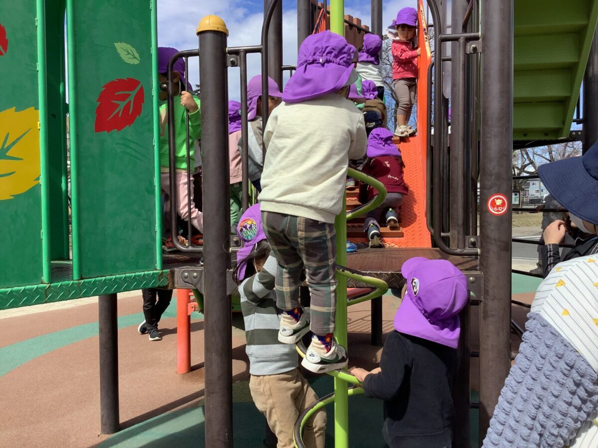 公園に着くといつもと違う遊具に笑顔が溢れていました!沢山身体を動かして元気に遊んで楽しみました!