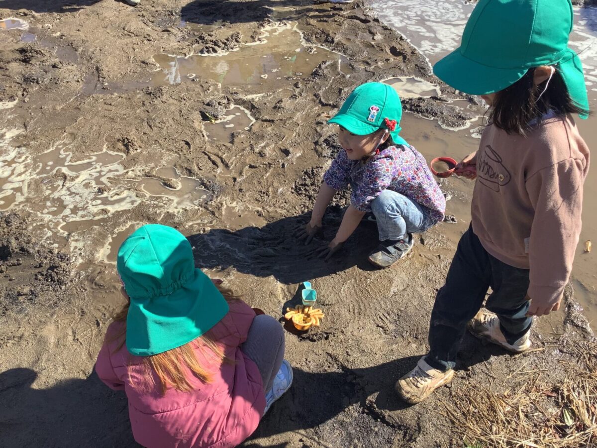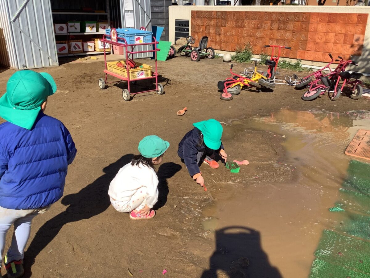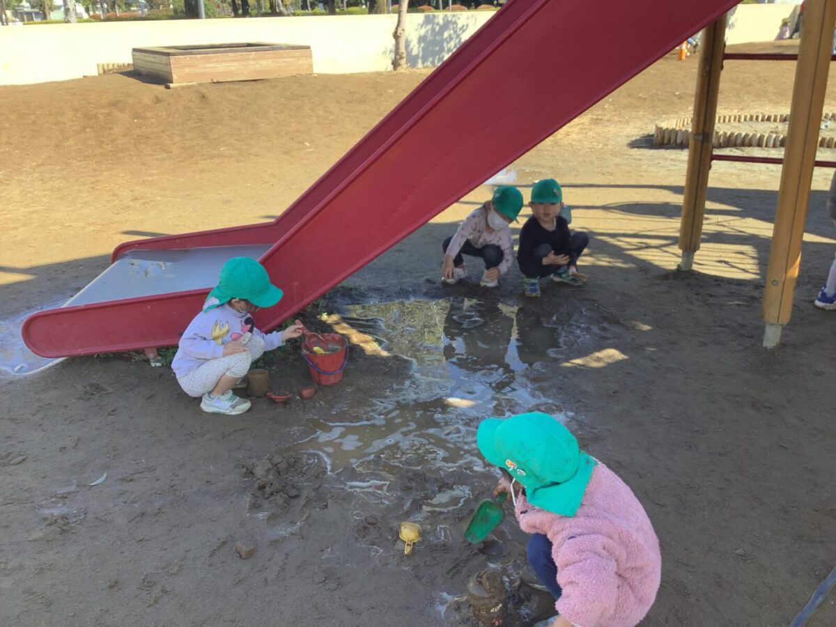 雨の降った次の日は汚れる事も気にせず、泥遊びを楽しんでいる子も多くいました!だるまさんが転んだ。をしたり、製作を作ったりと色々と出来る事も増えてきましたね!
