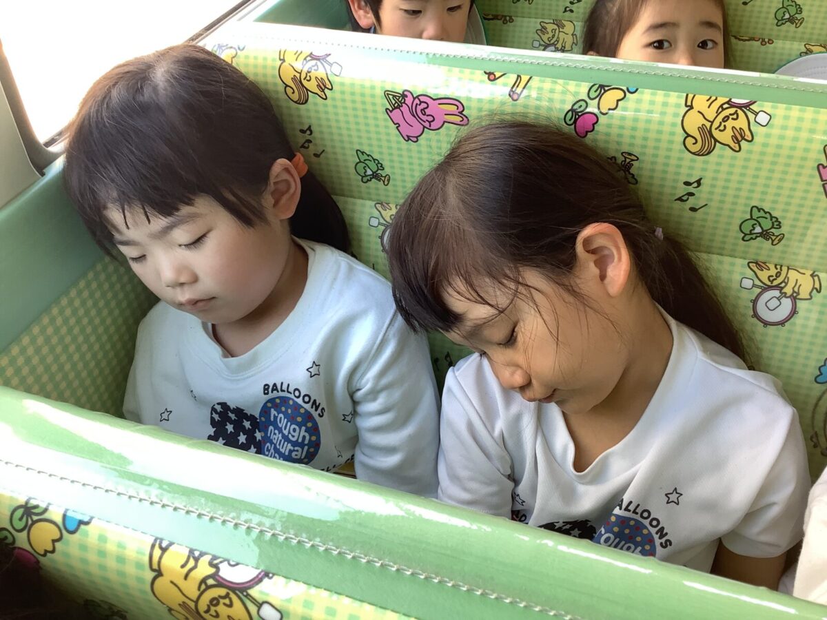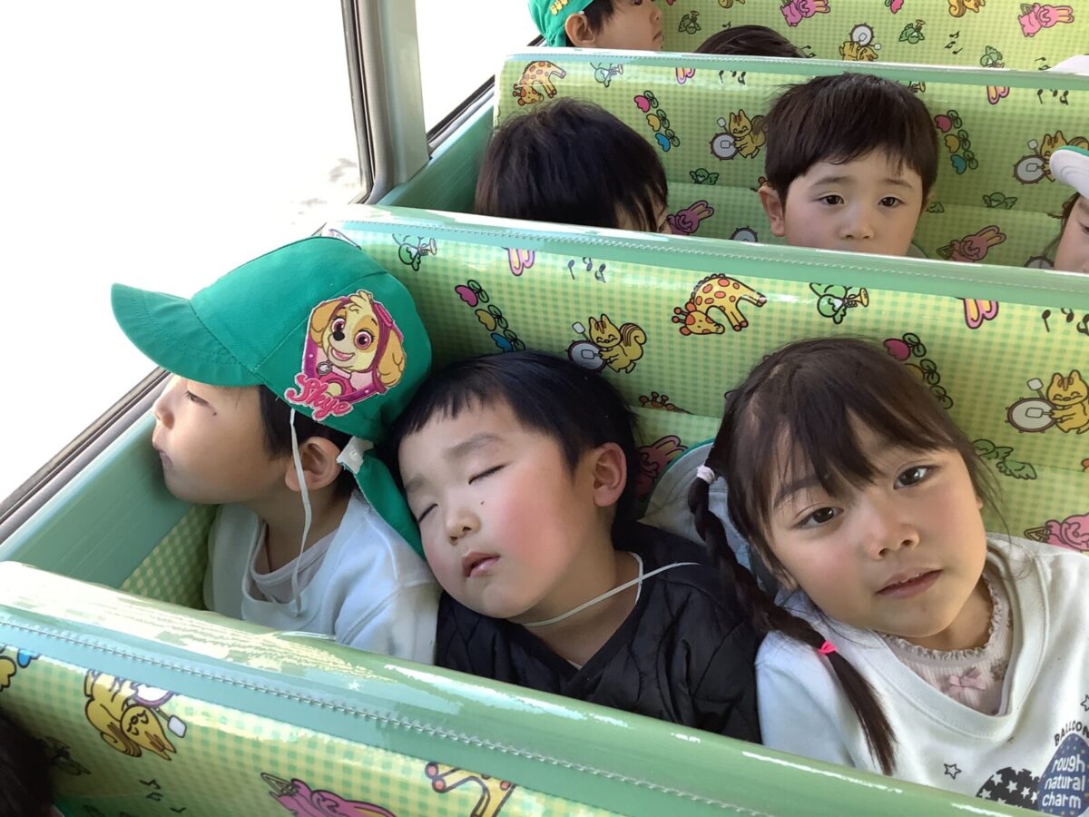 天気も良く遠足日和でしたね!ウキウキなめろん組さん!行きのバスでは楽しそうな声が沢山聞こえていました。公園に到着すると、各々やりたい遊びの場所に行き、楽しんでいました。笑顔いっぱいの子ども達でしたよ!帰りのバスでは行きのバスとはガラリと変わり静かな空間でした!なかには寝ている子も☆可愛いですね♪