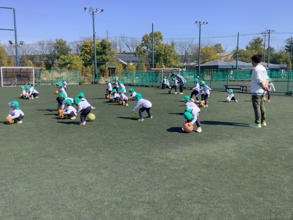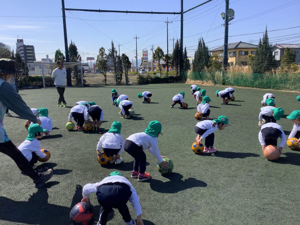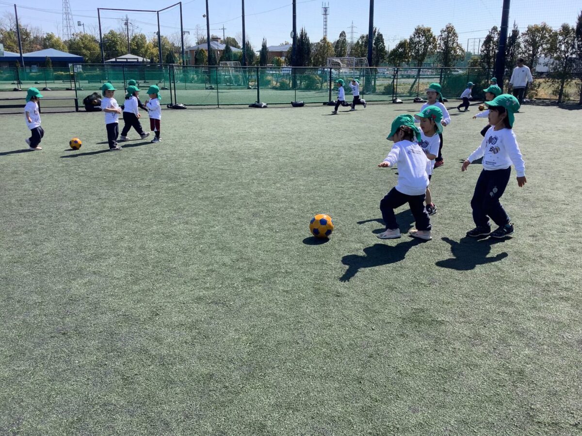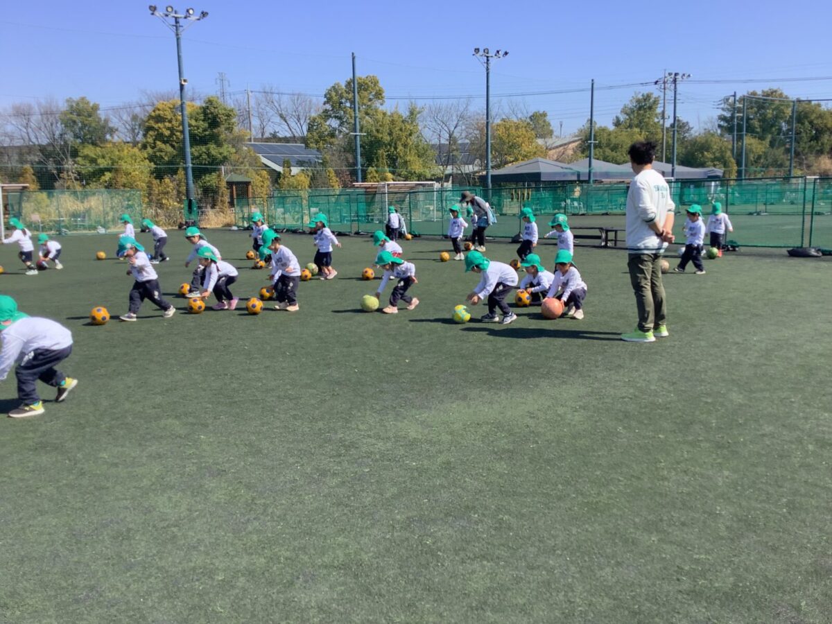 初めてのサッカー教室。どんな事をするのか楽しみにしていた子、少し不安になっていた子と居ましたが、始まるとみんなノリノリで楽しんでやっていました!