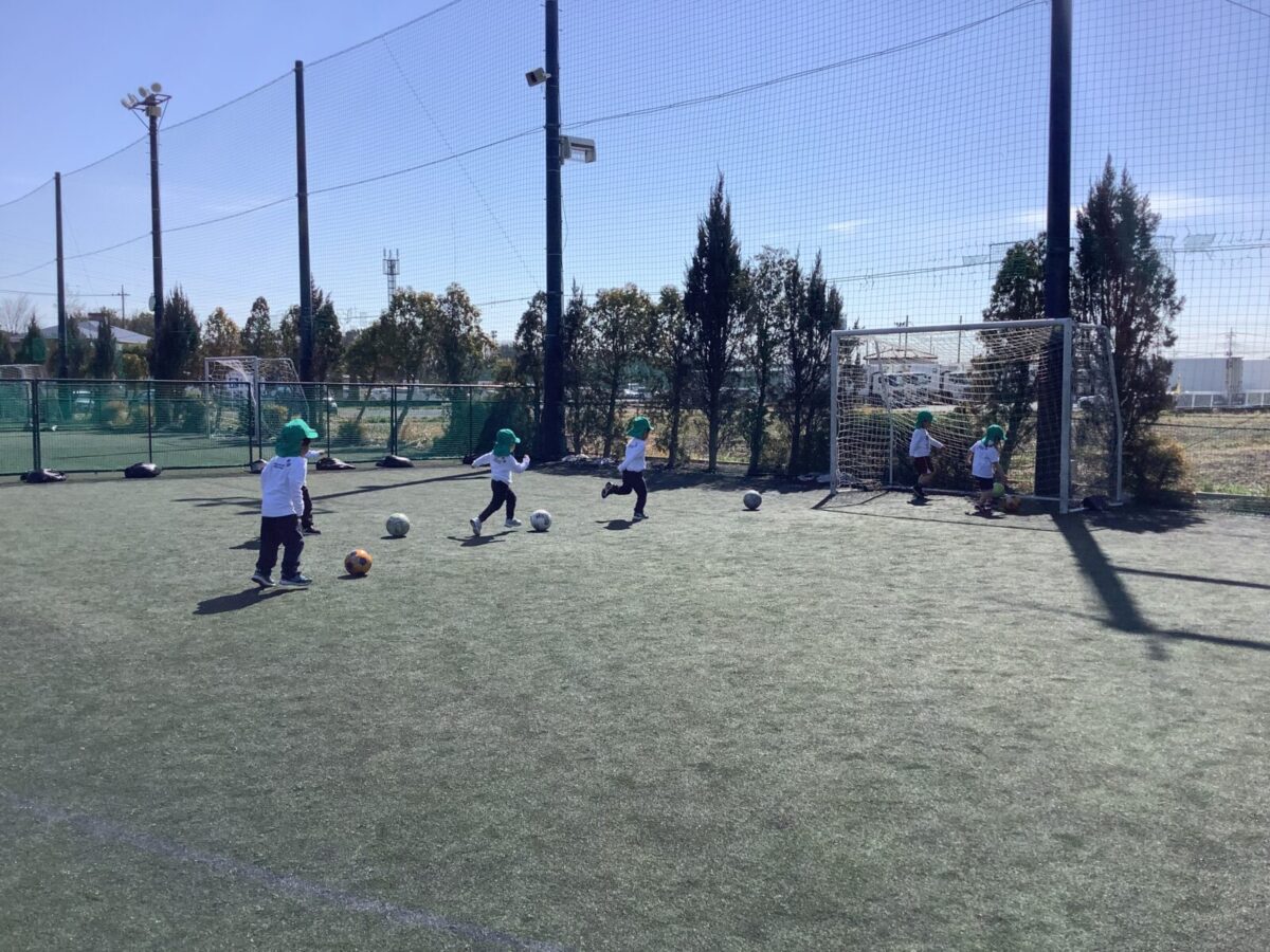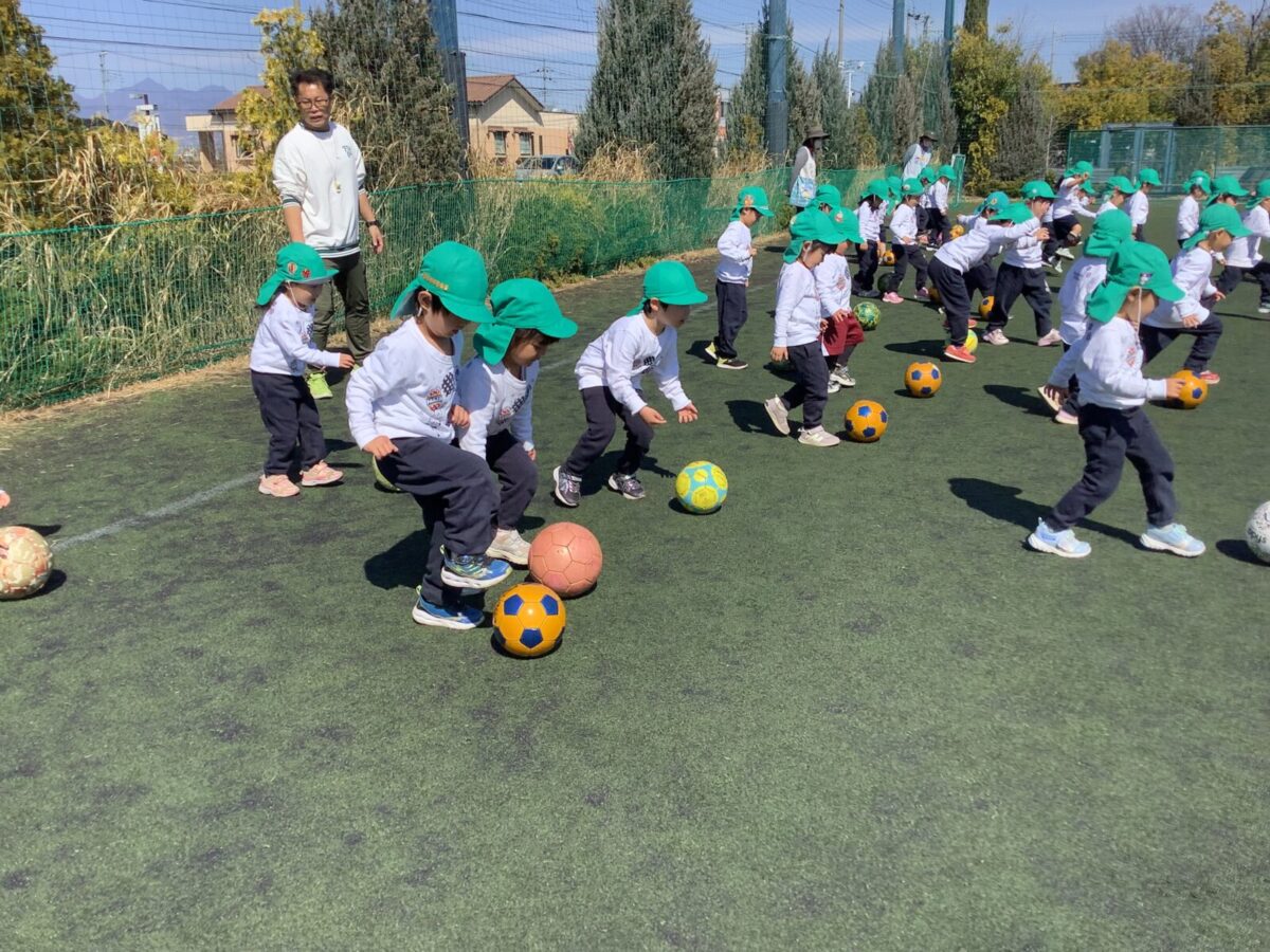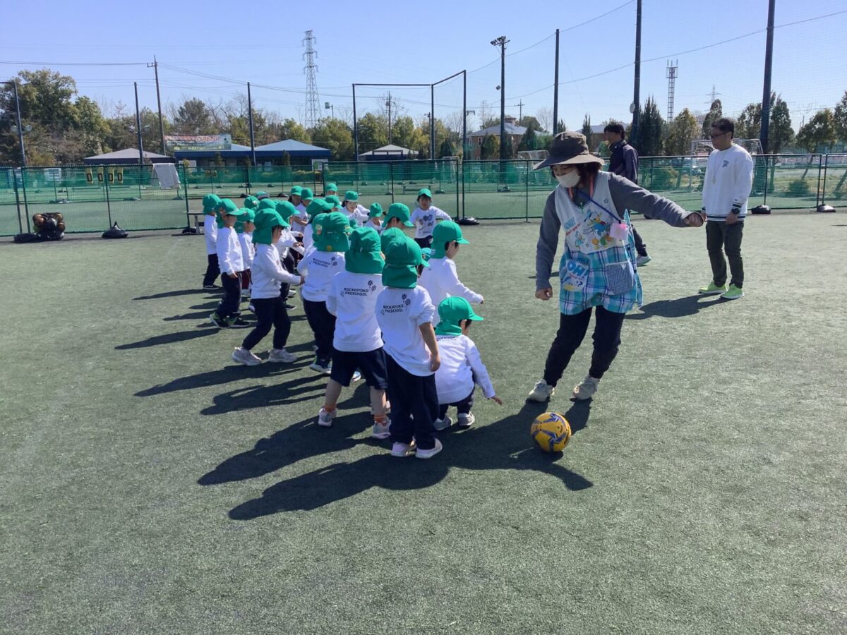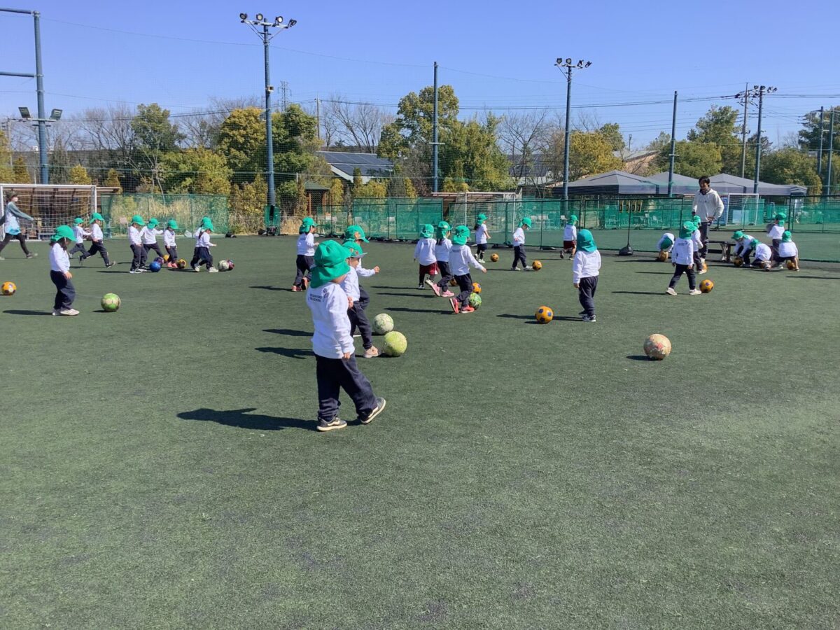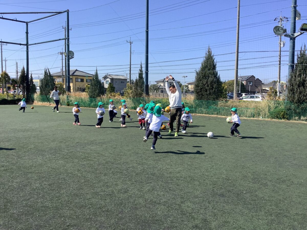 初めてのサッカー教室。どんな事をするのか楽しみにしていた子、少し不安になっていた子と居ましたが、始まるとみんなノリノリで楽しんでやっていました!