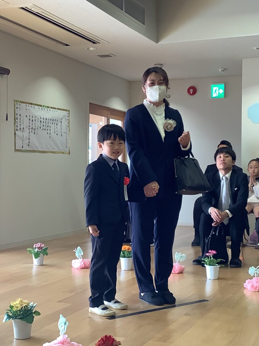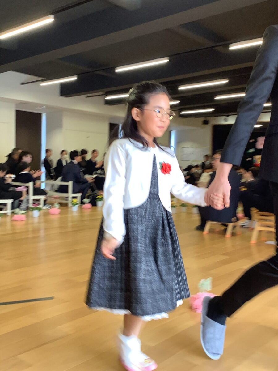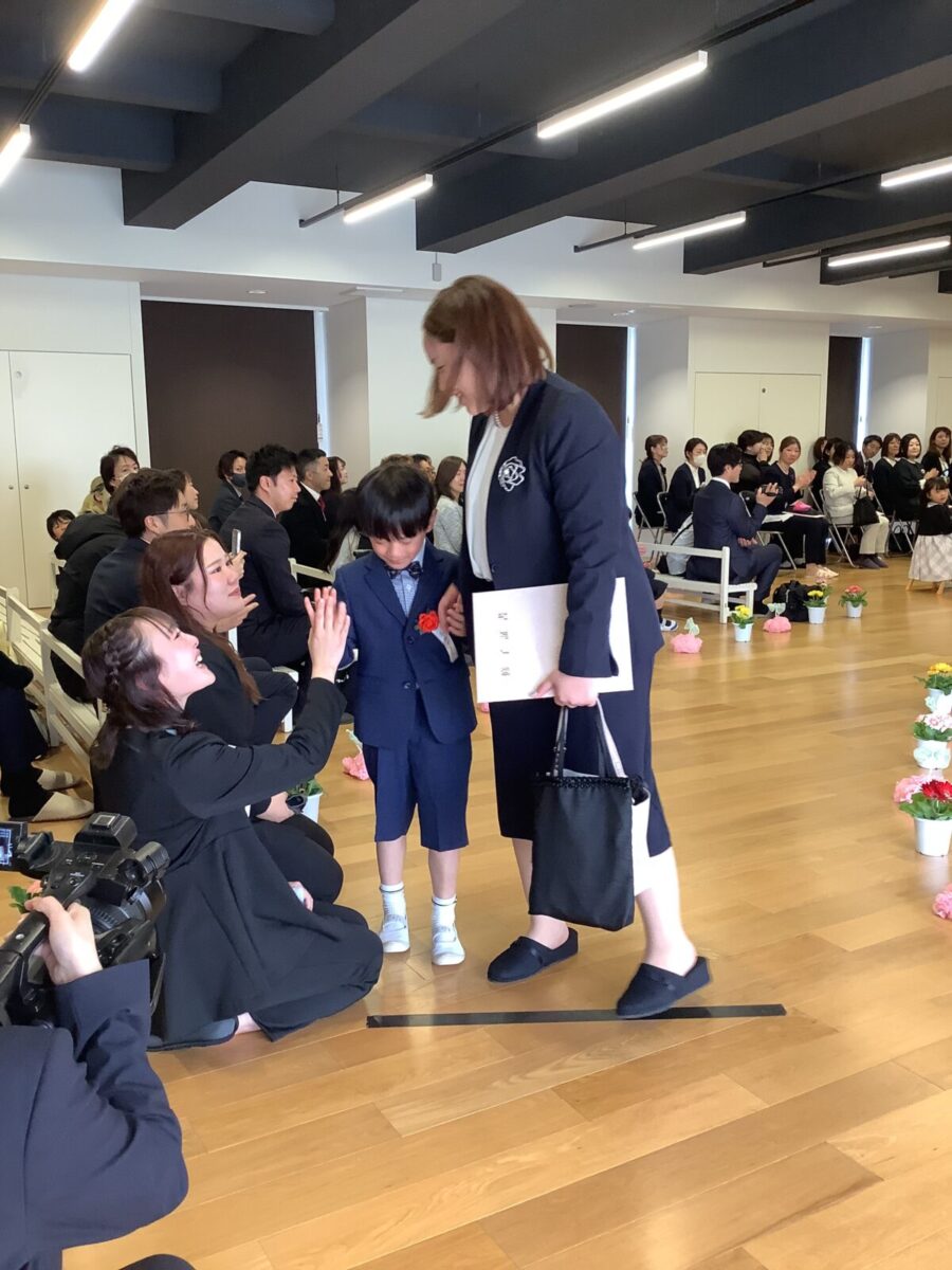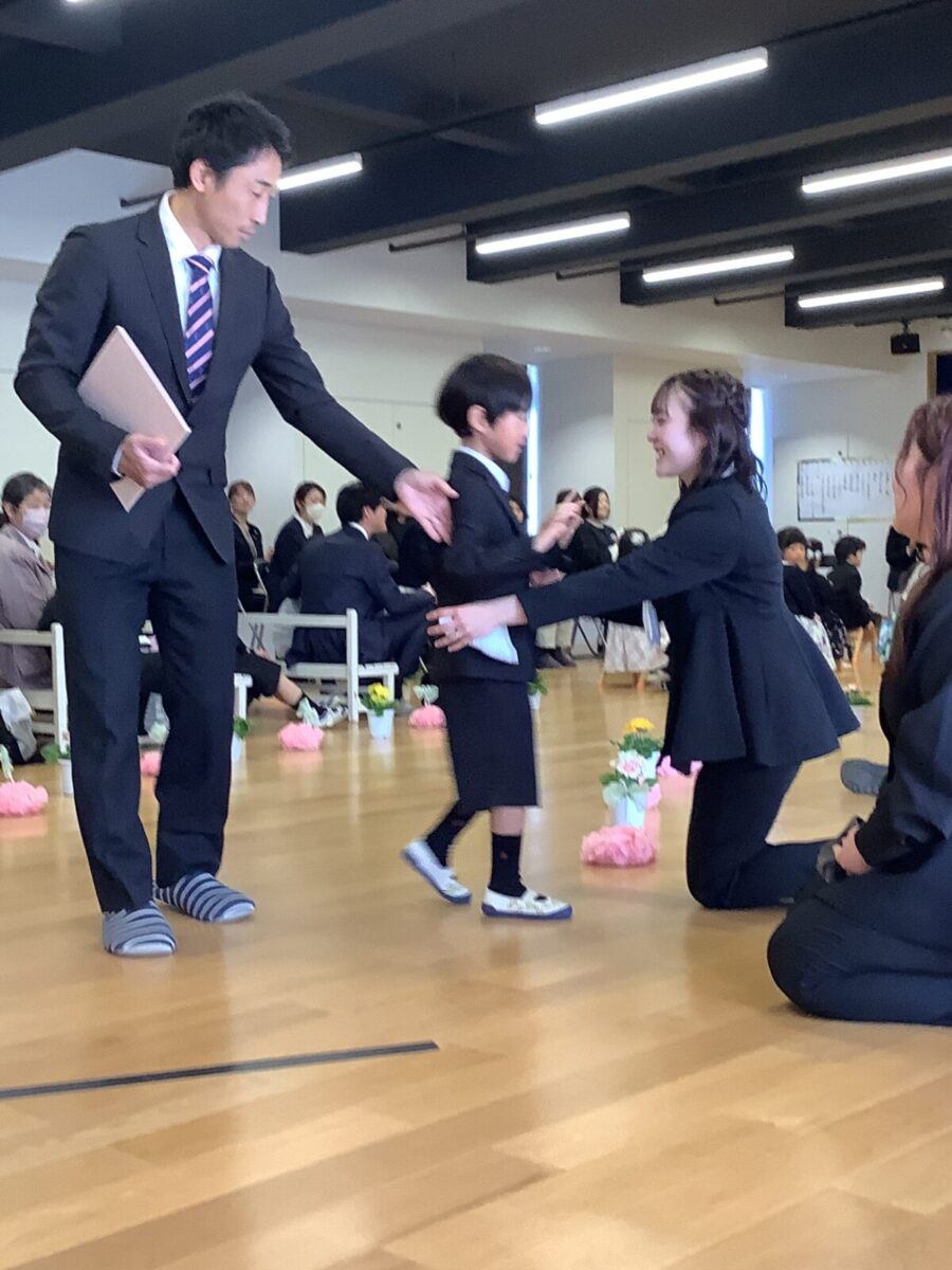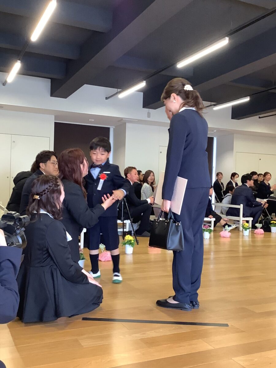 担任の先生からお名前を呼ばれて入場。大きな声で「はい!」と言って一礼する姿は、とてもかっこよかったです!