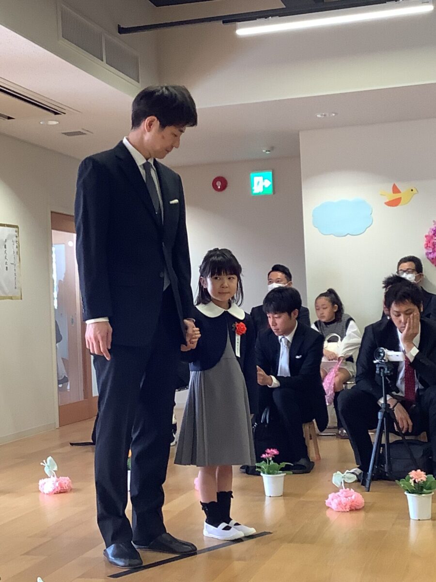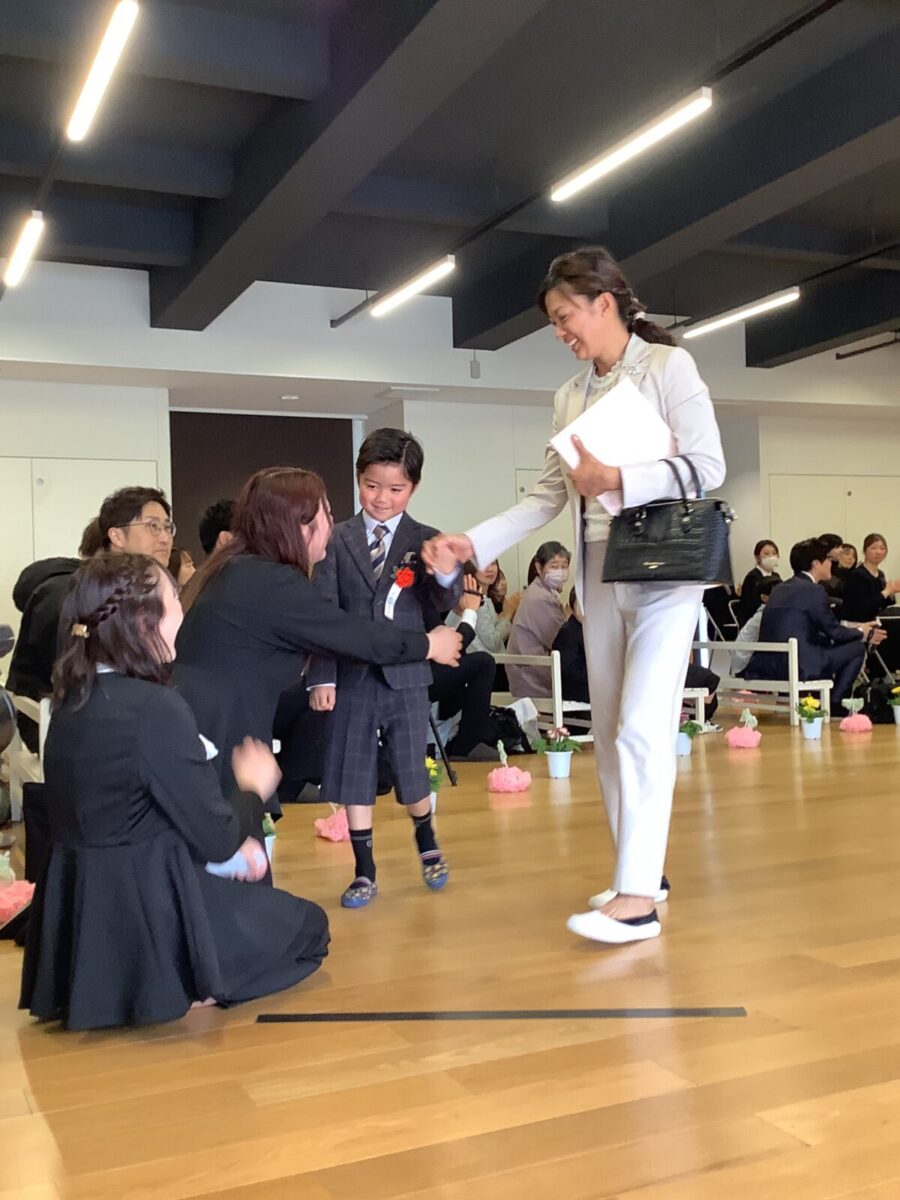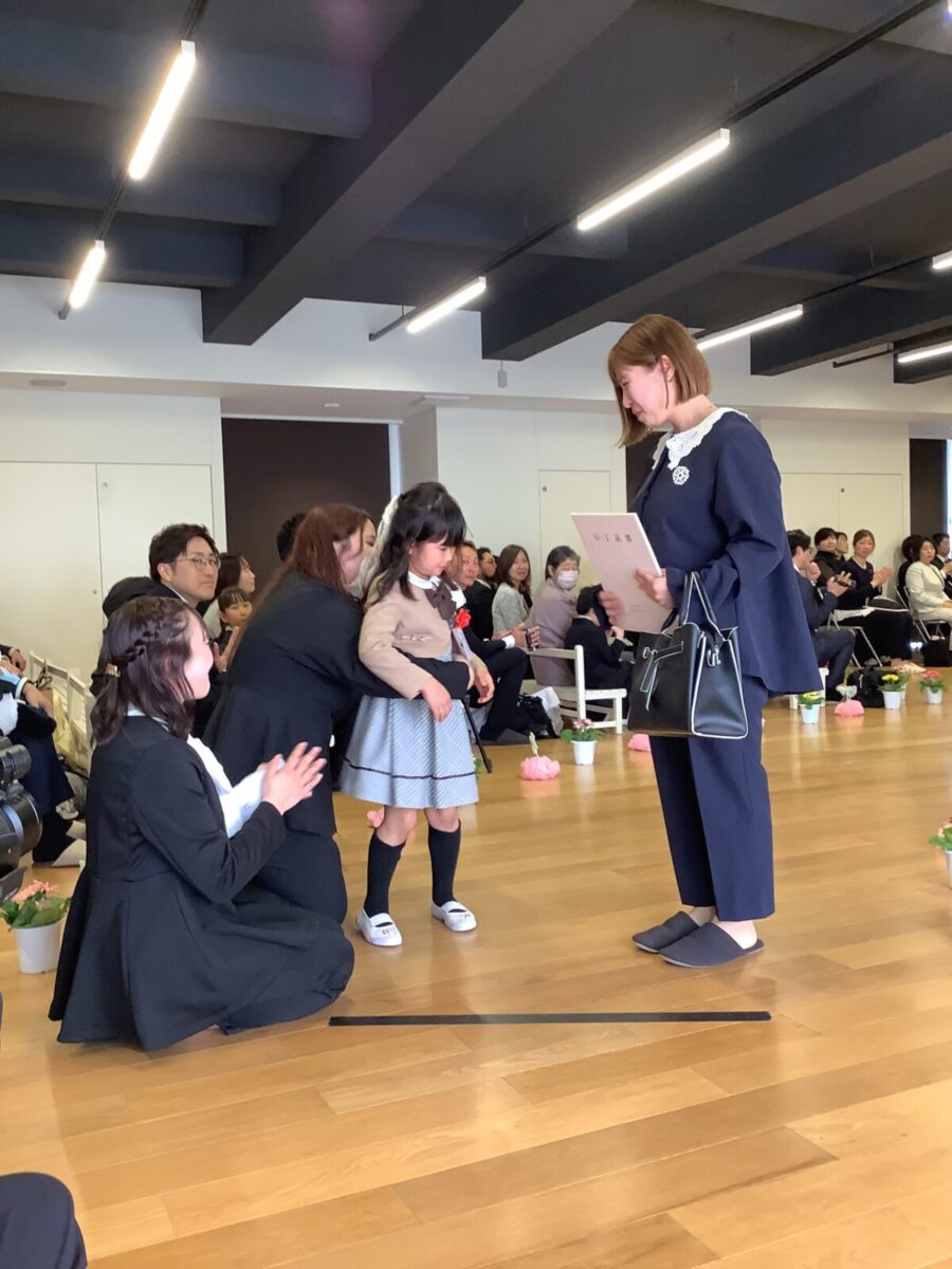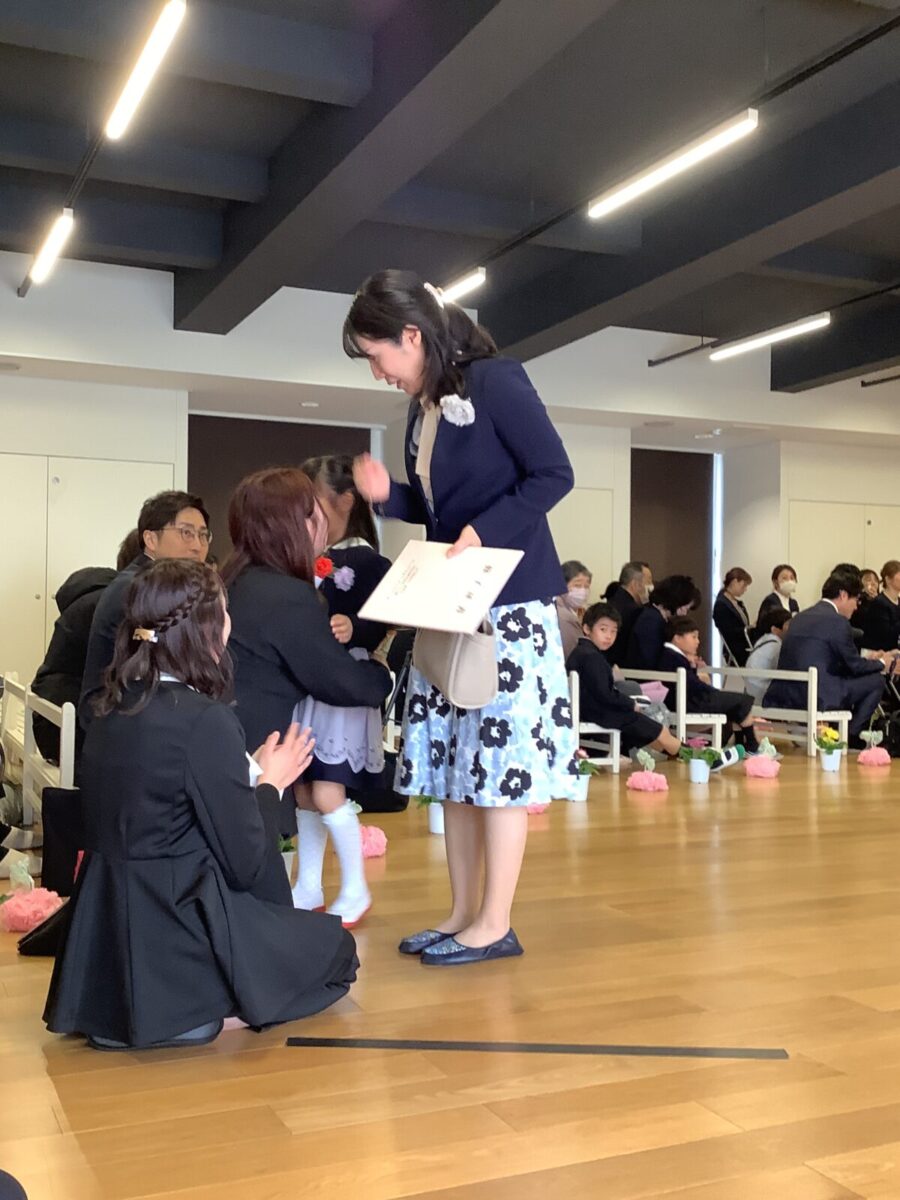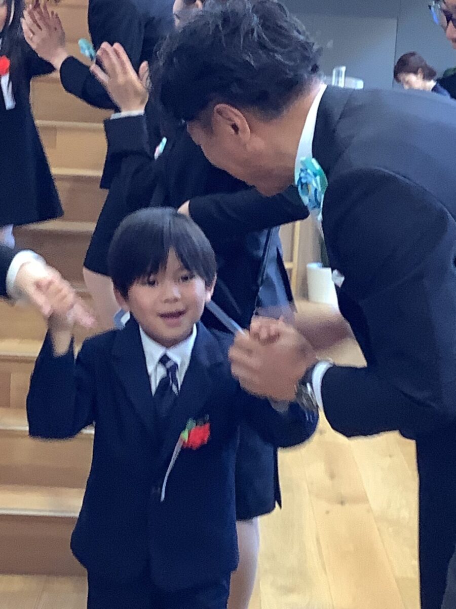 担任の先生からお名前を呼ばれて入場。大きな声で「はい!」と言って一礼する姿は、とてもかっこよかったです!