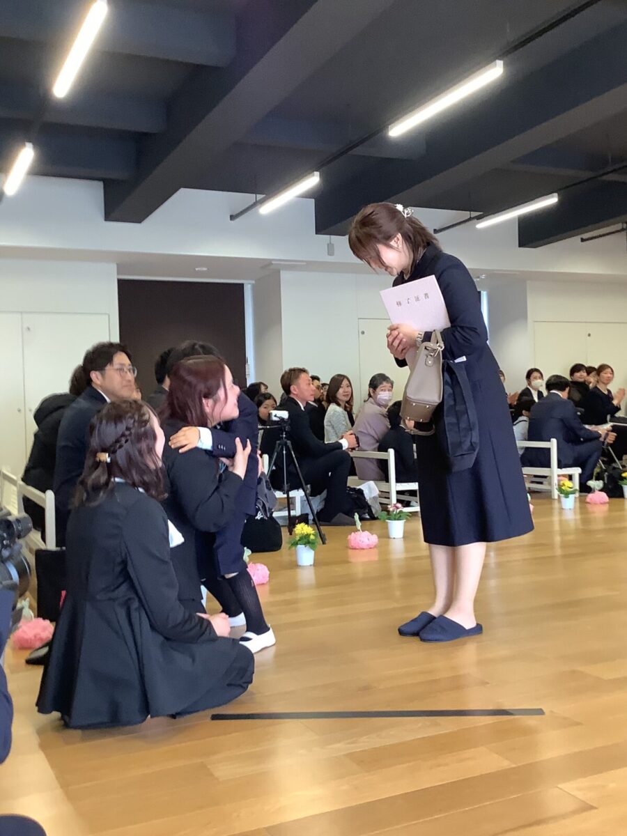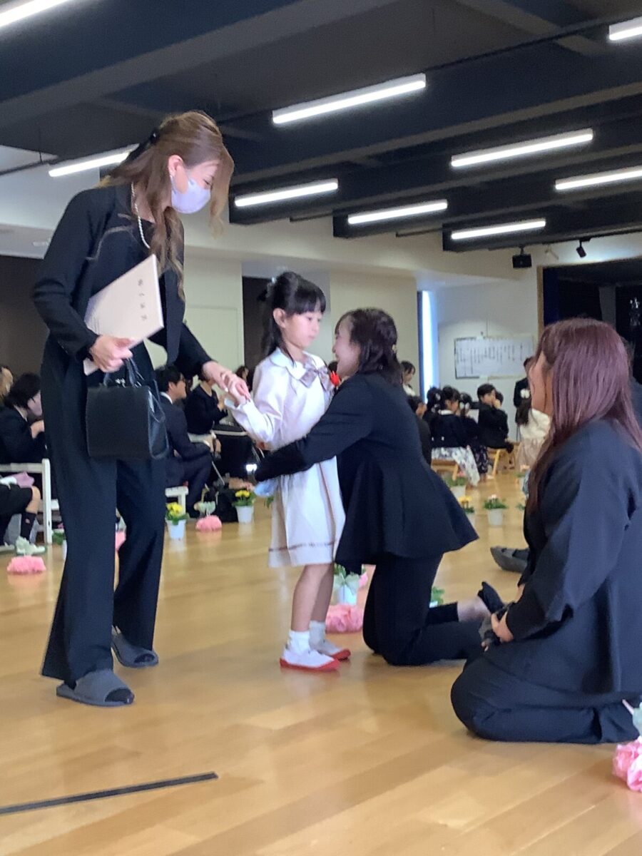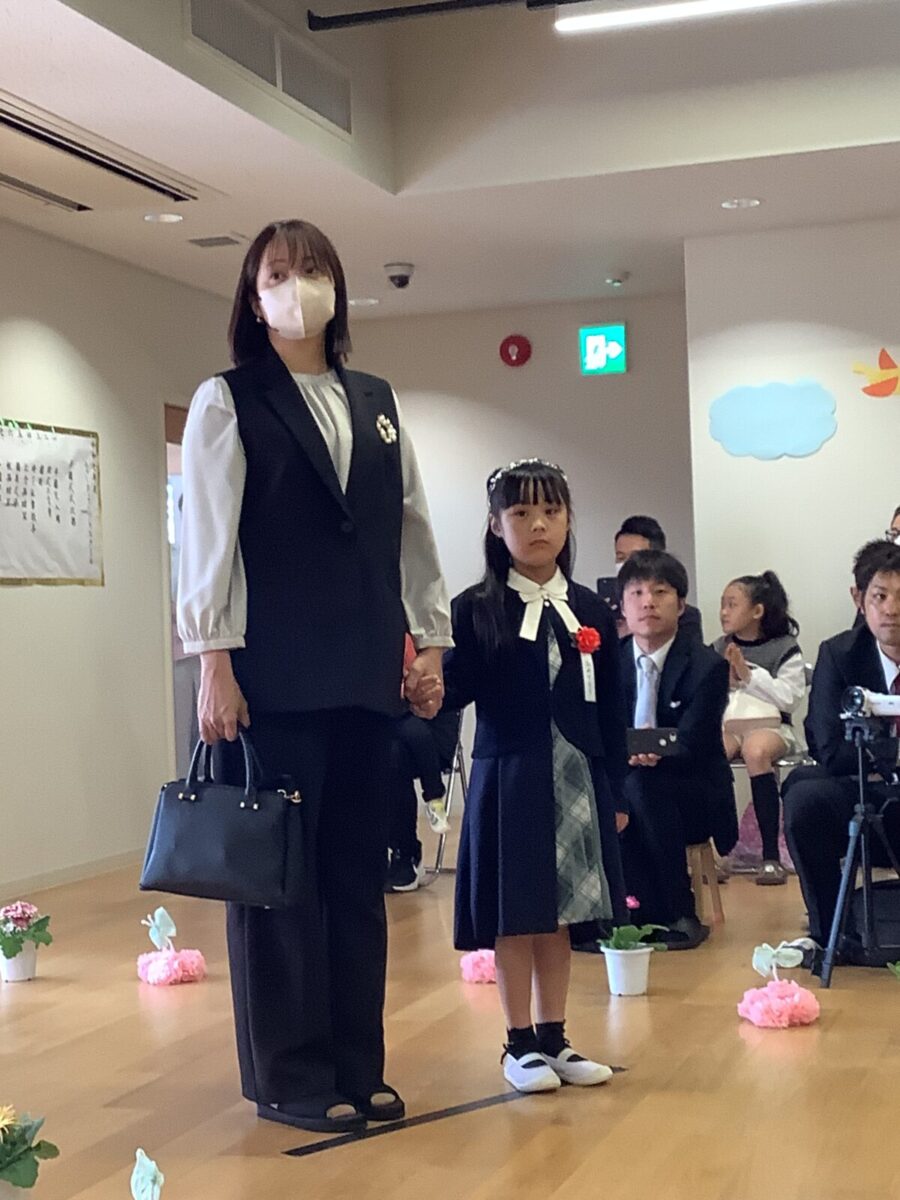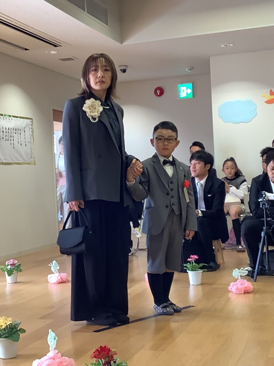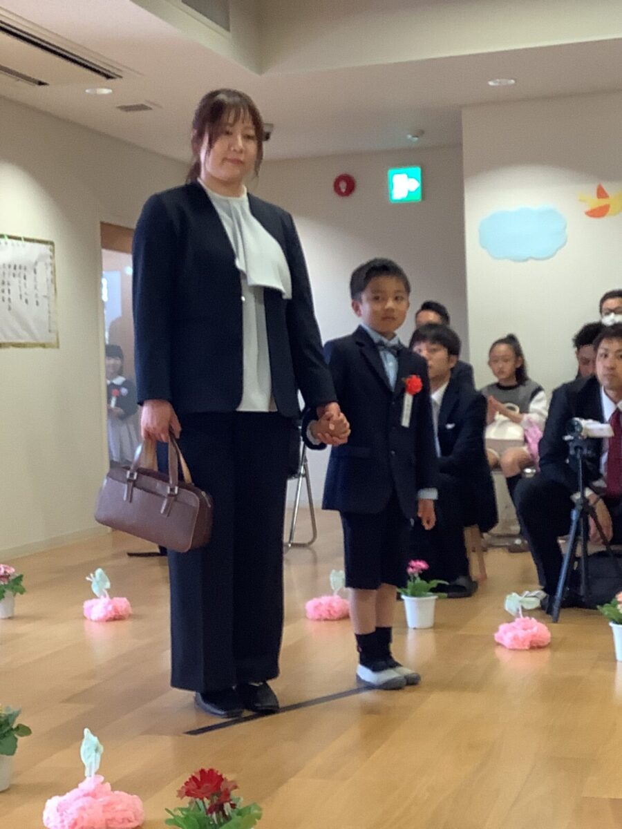 担任の先生からお名前を呼ばれて入場。大きな声で「はい!」と言って一礼する姿は、とてもかっこよかったです!