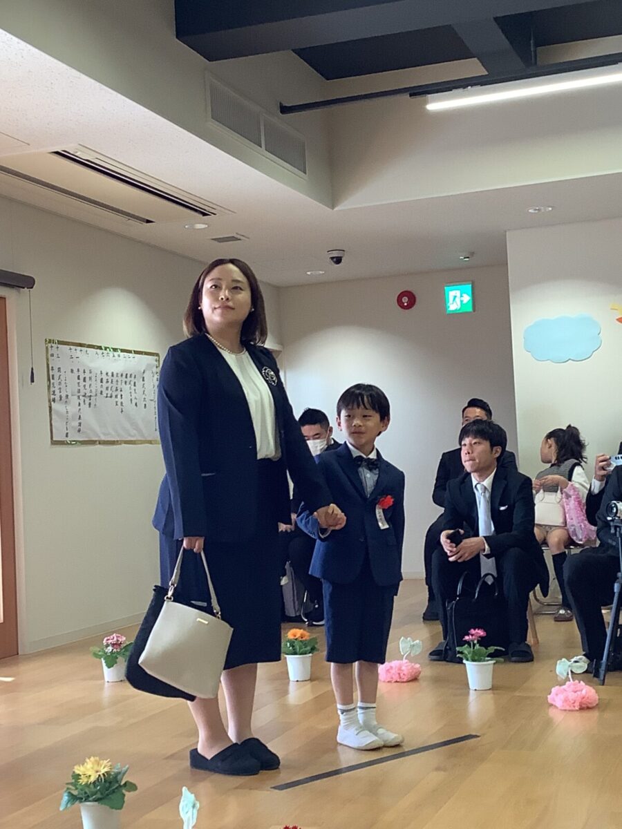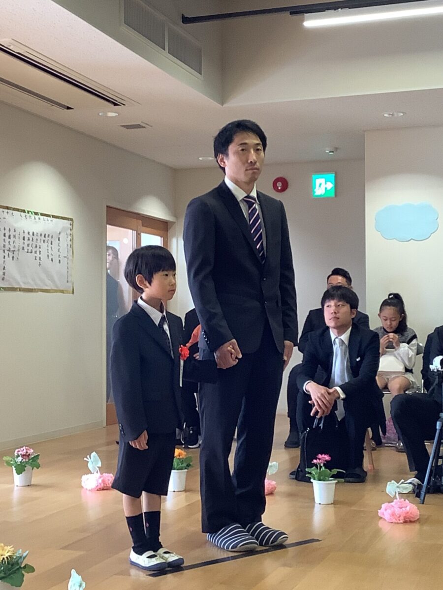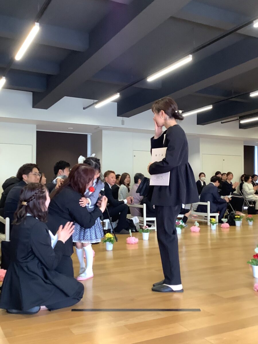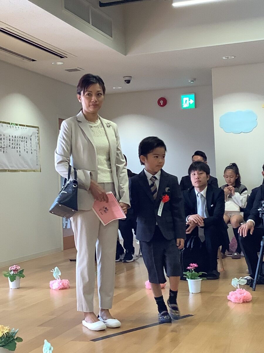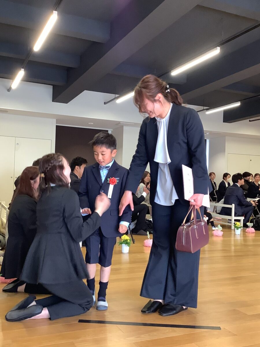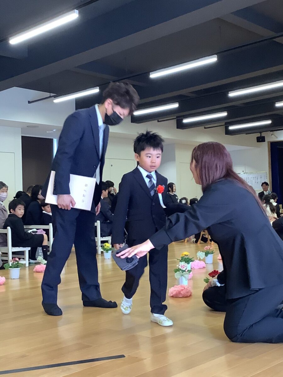 担任の先生からお名前を呼ばれて入場。大きな声で「はい!」と言って一礼する姿は、とてもかっこよかったです!