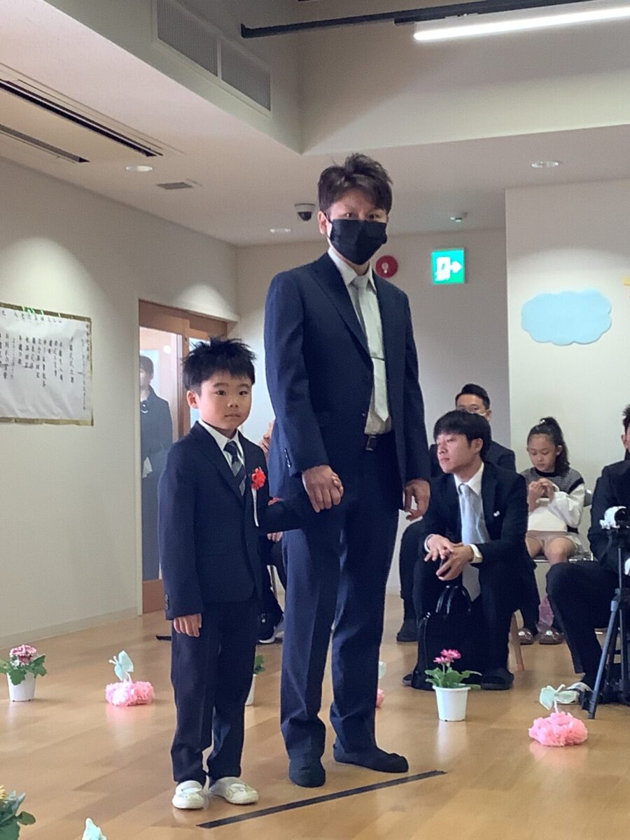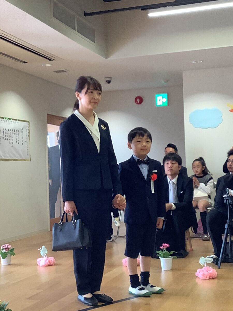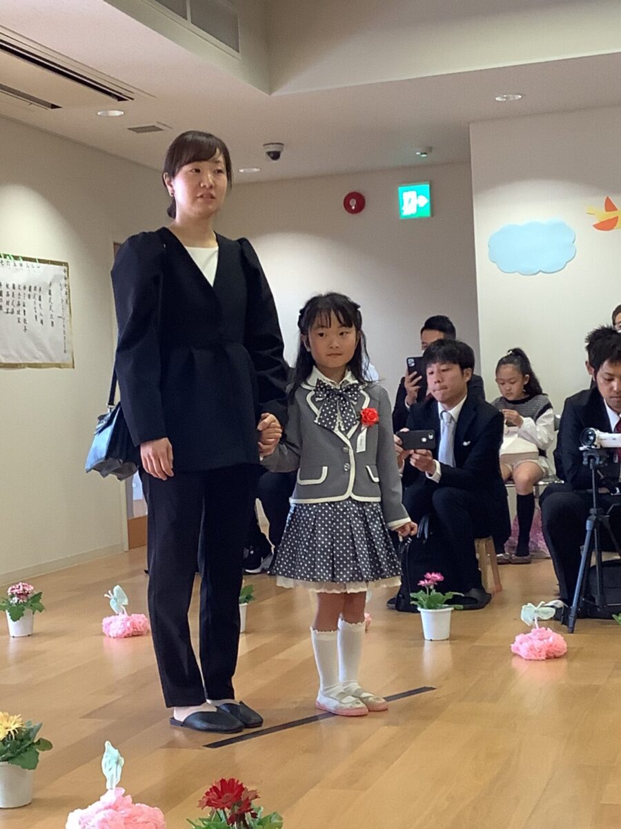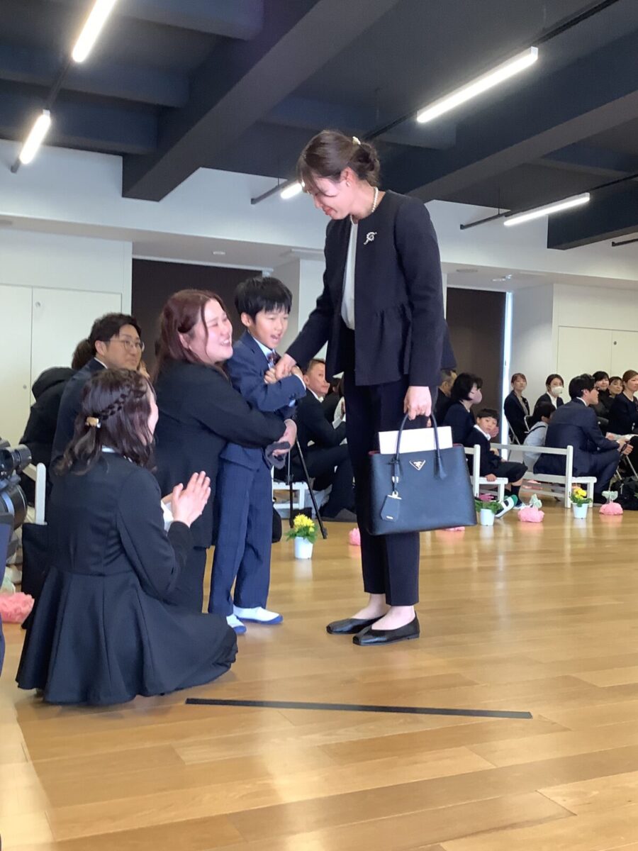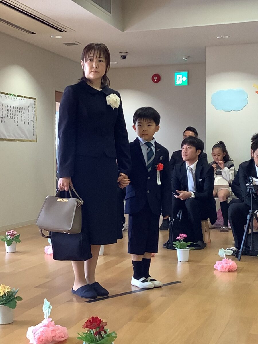 担任の先生からお名前を呼ばれて入場。大きな声で「はい!」と言って一礼する姿は、とてもかっこよかったです!