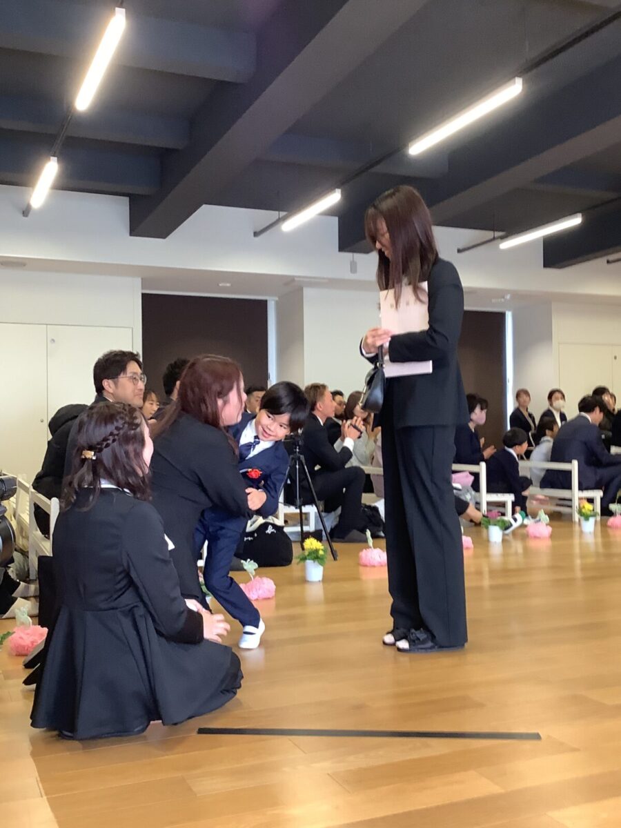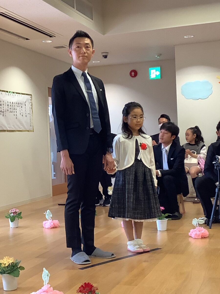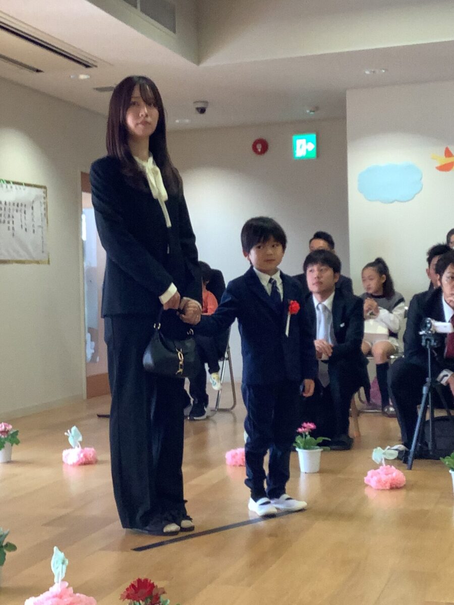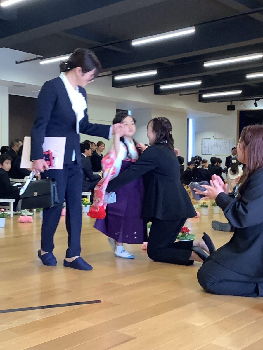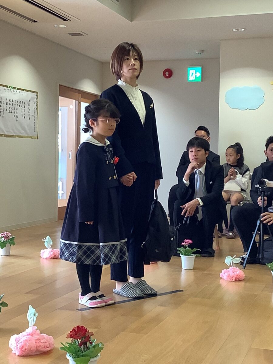 担任の先生からお名前を呼ばれて入場。大きな声で「はい!」と言って一礼する姿は、とてもかっこよかったです!