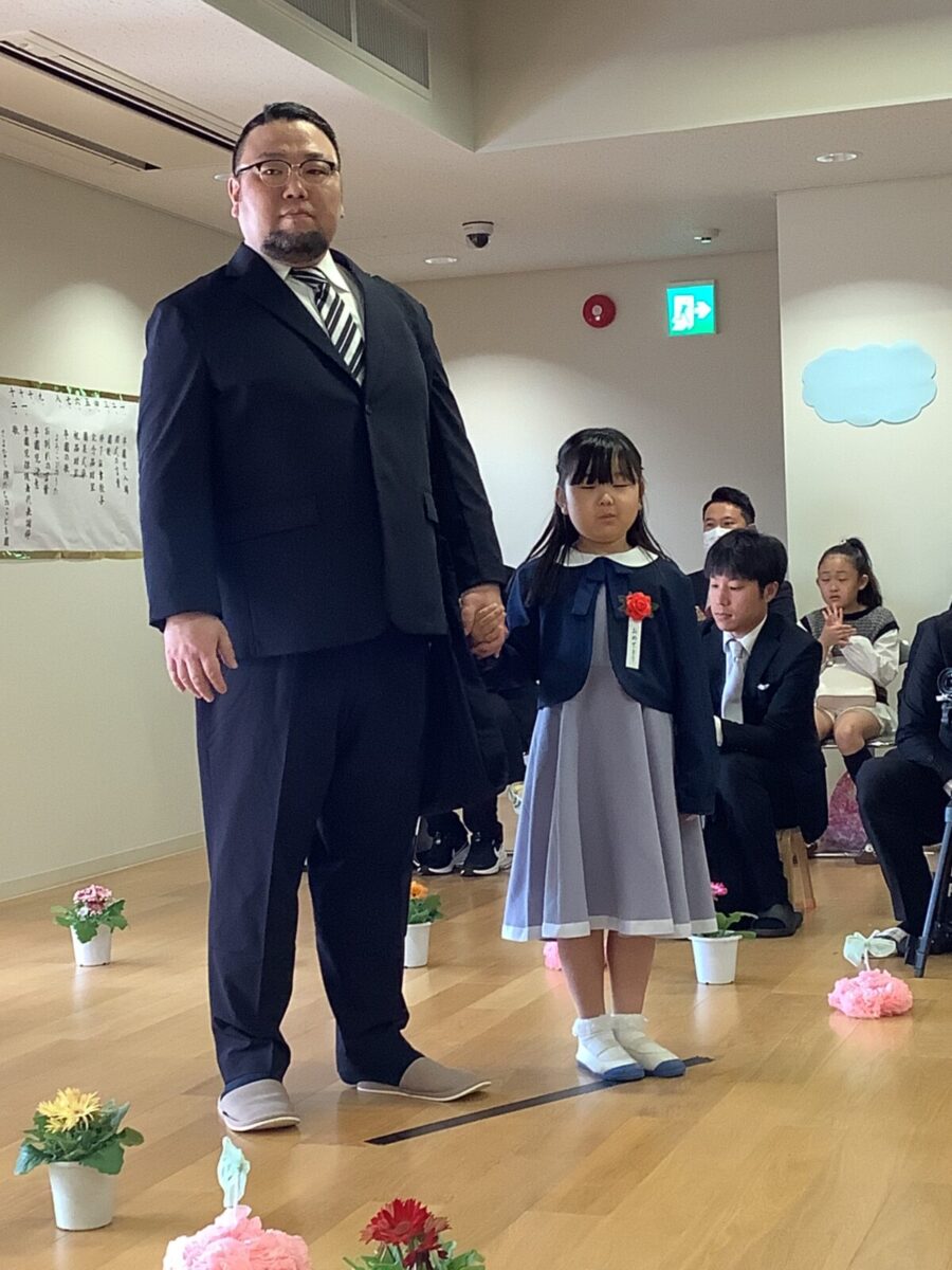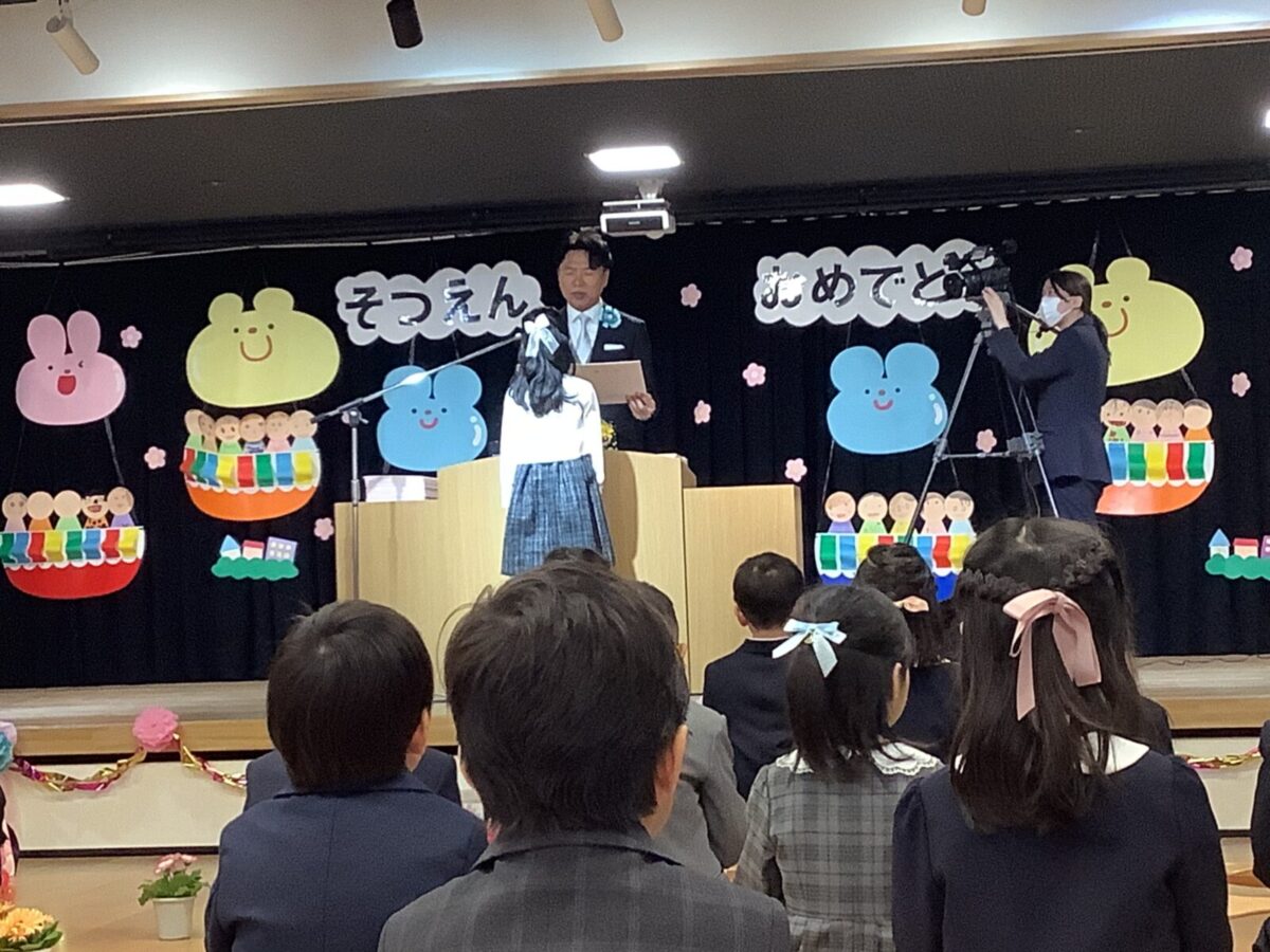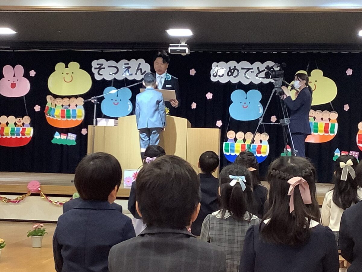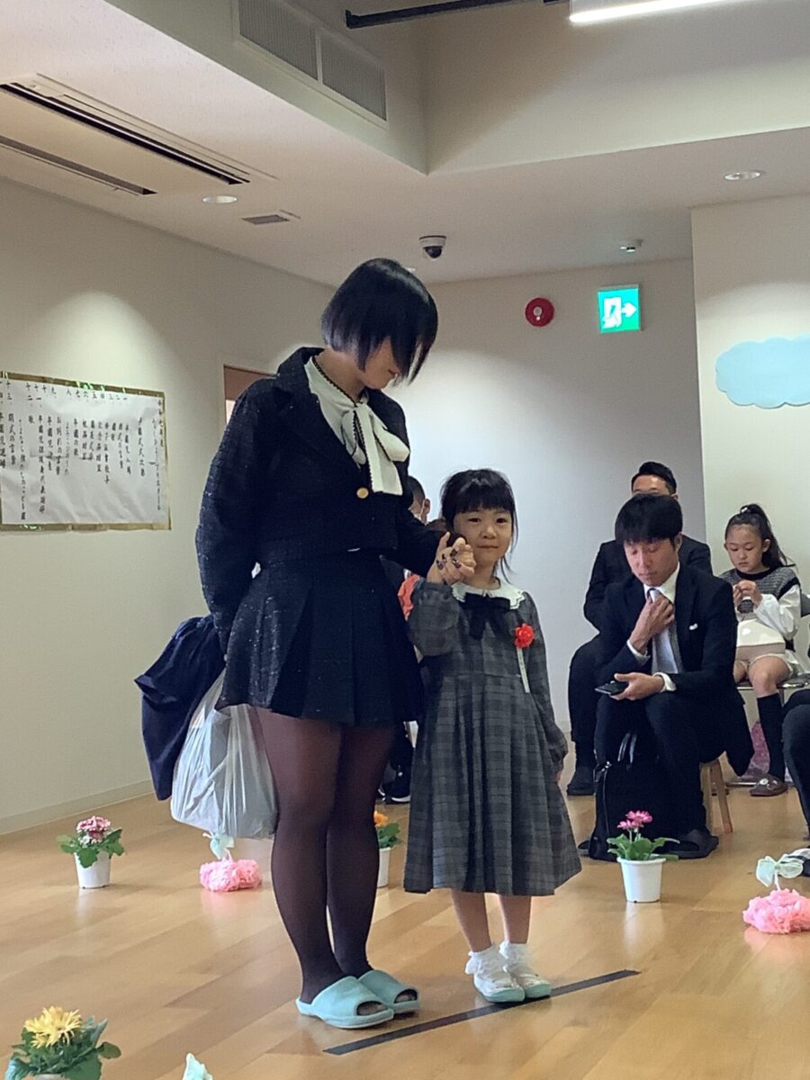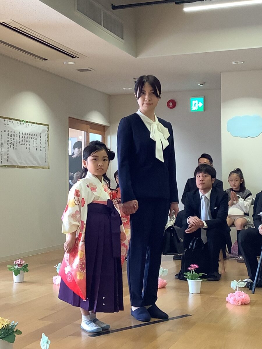担任の先生からお名前を呼ばれて入場。大きな声で「はい!」と言って一礼する姿は、とてもかっこよかったです!