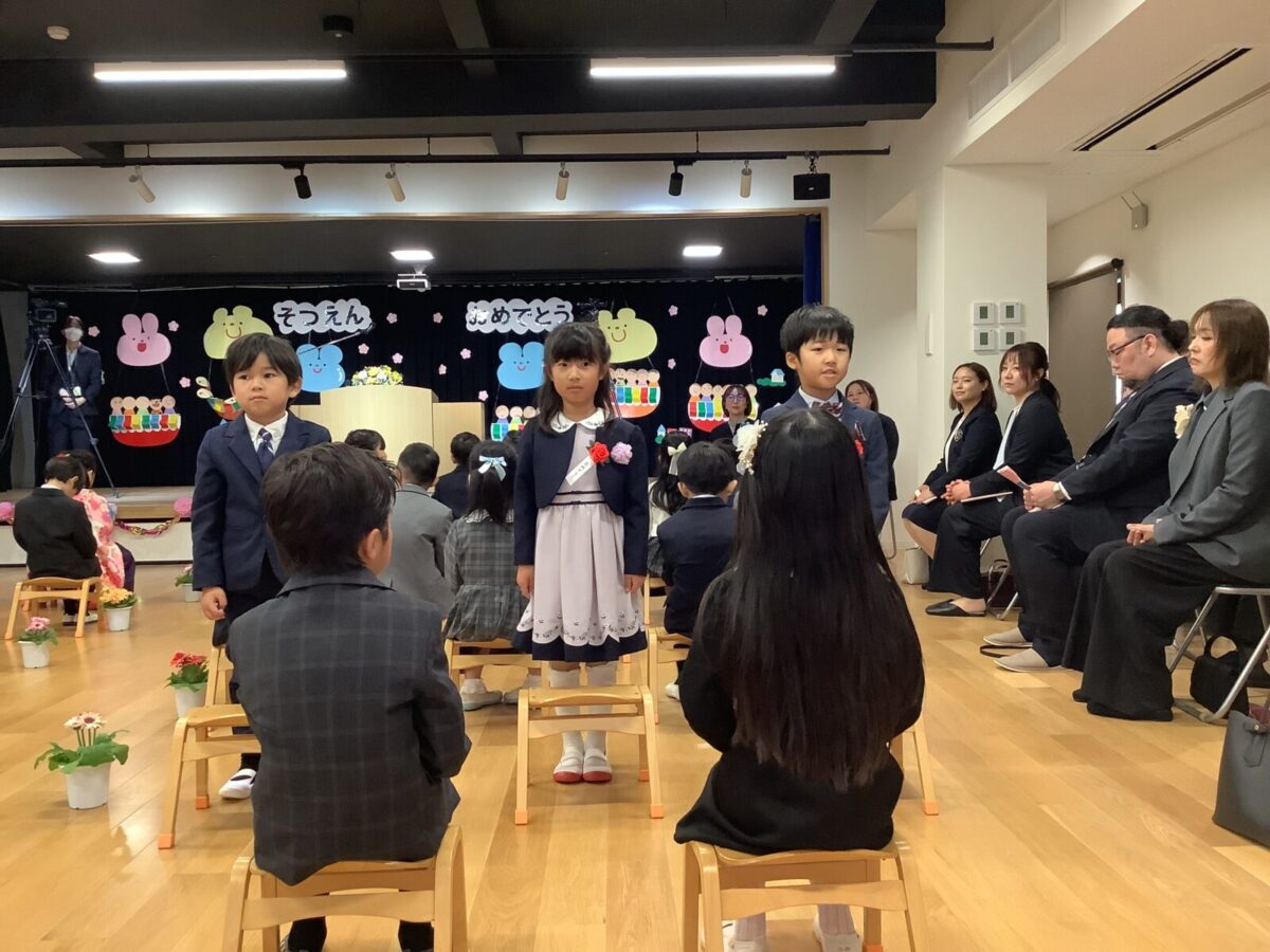 証書をもらう立派な姿にとても感動しました。園歌とお別れの言葉、卒園の歌など、どの場面でもしっかりと取り組む姿に成長を感じました!