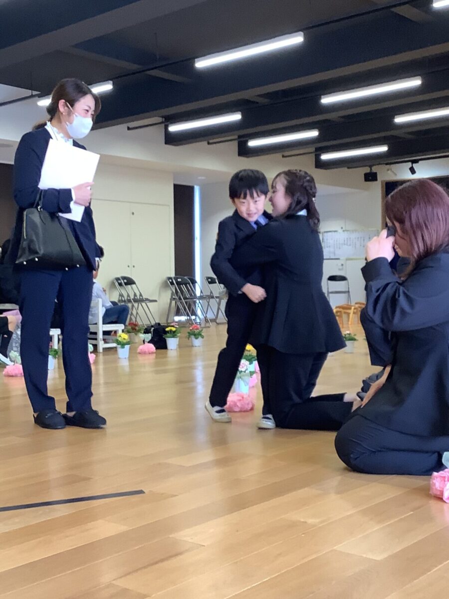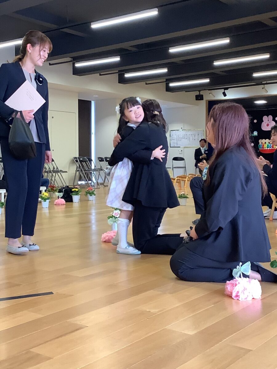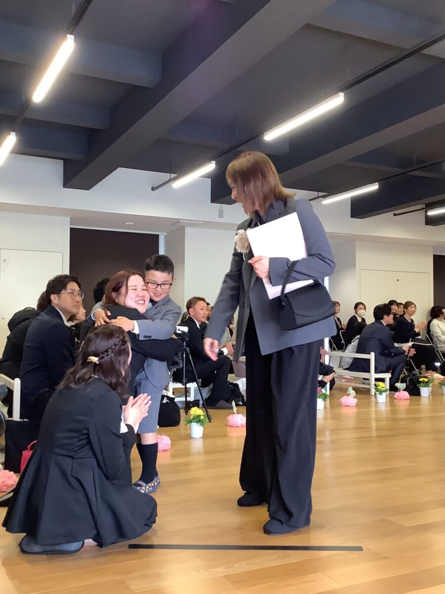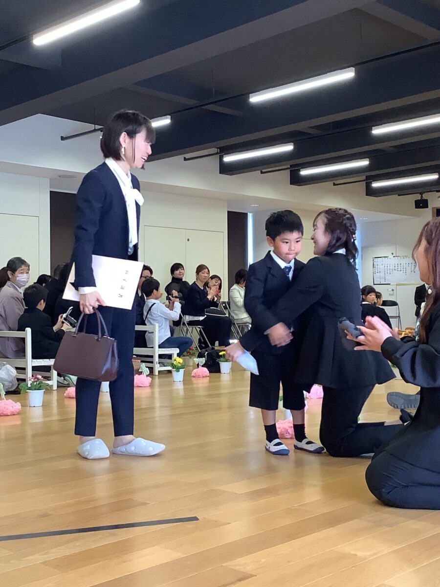 退場。最後に担任の先生とのお別れのハグです。涙する子どもたちの姿に思わずもらい泣き・・・。