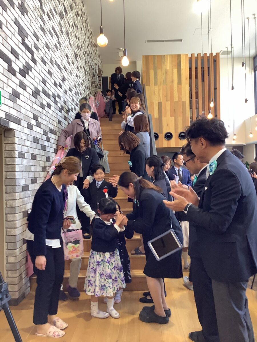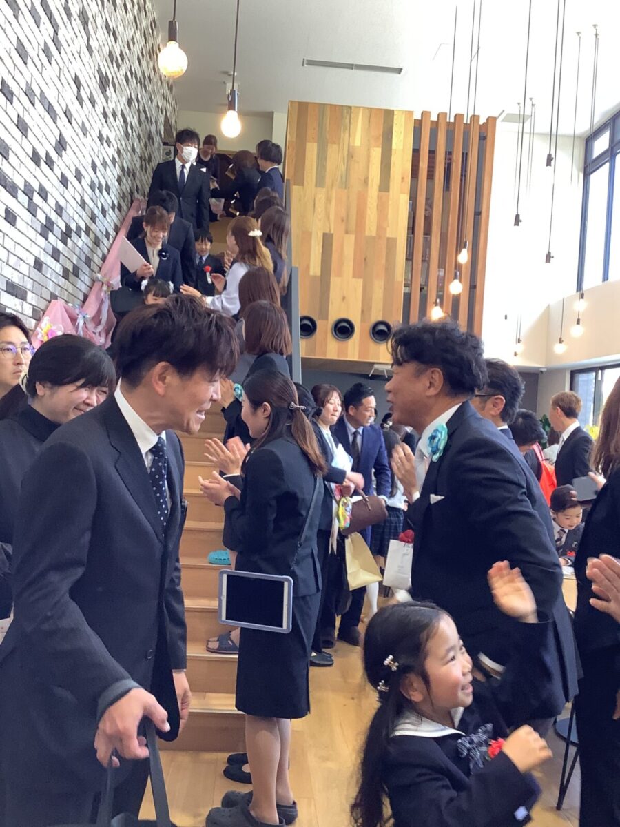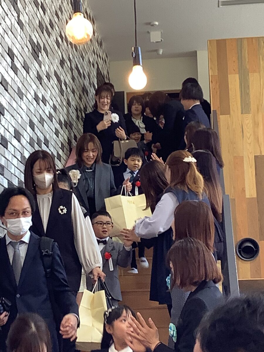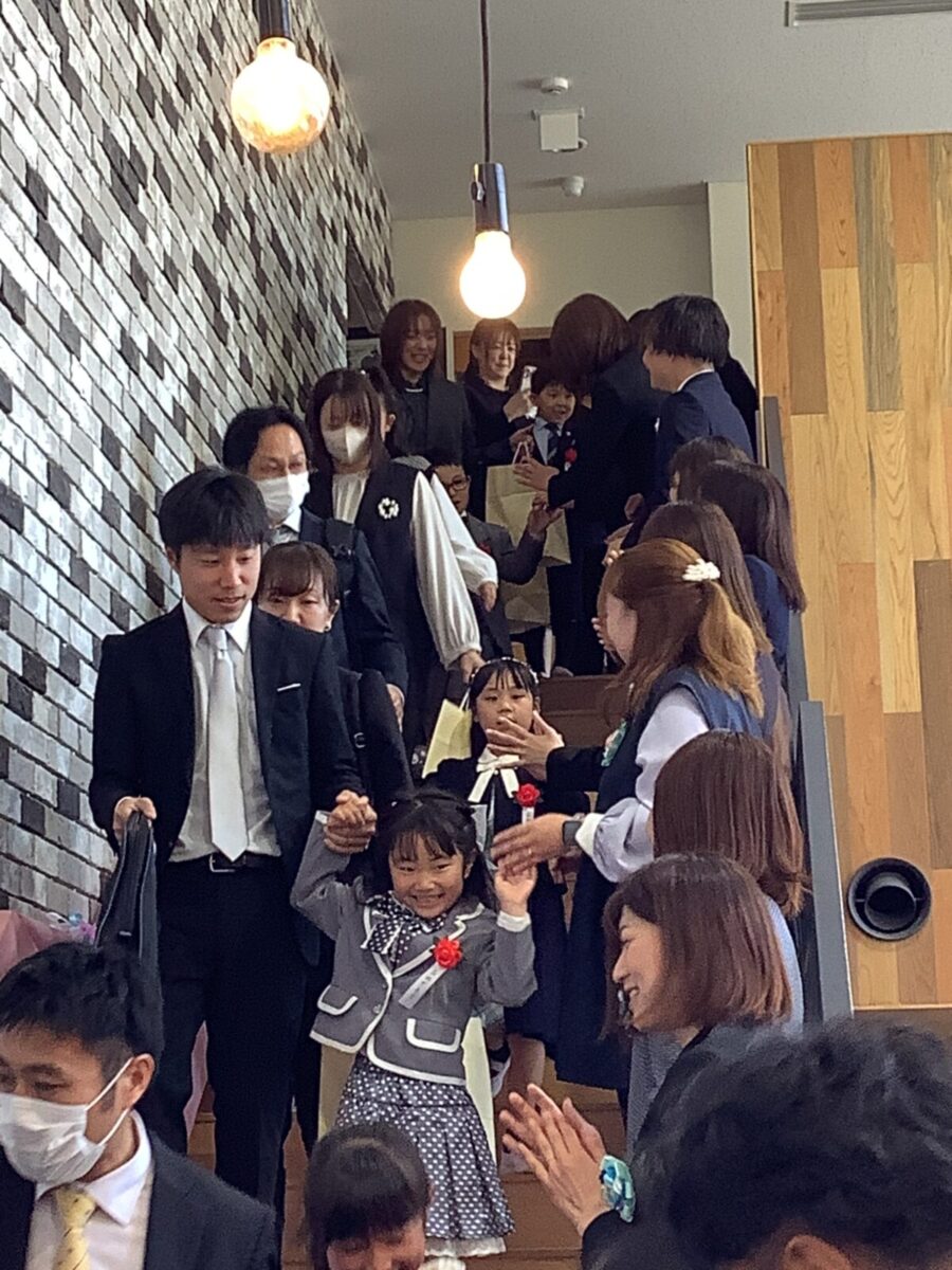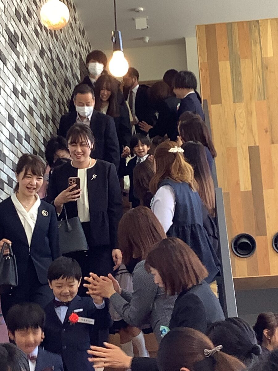 退場。最後に担任の先生とのお別れのハグです。涙する子どもたちの姿に思わずもらい泣き・・・。