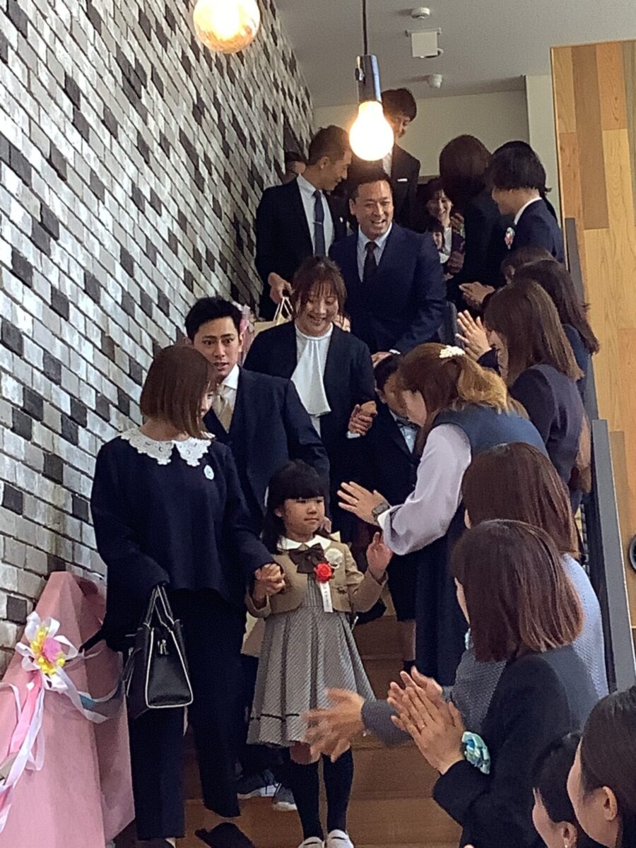 職員の花道を通って送り出します!